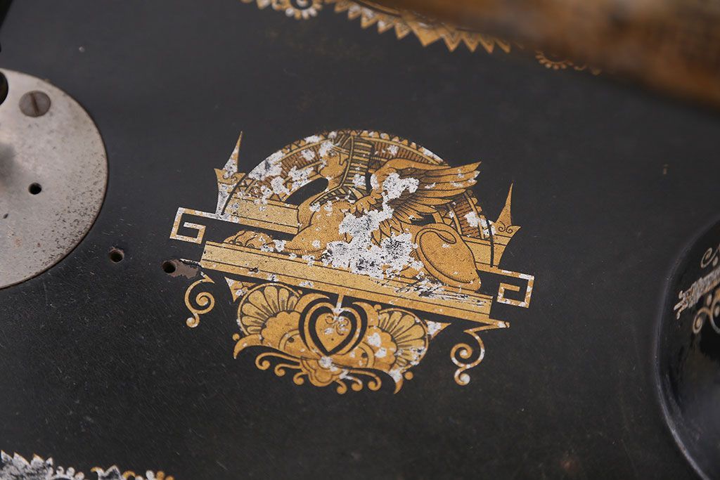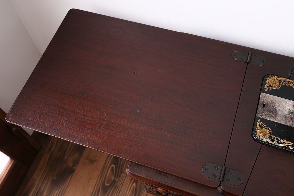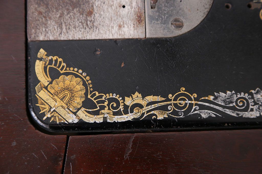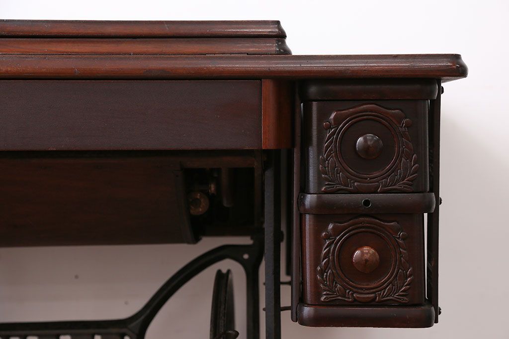 引き出しのデザインやミシン本体のデザインも凝っていて、優雅な一品です。