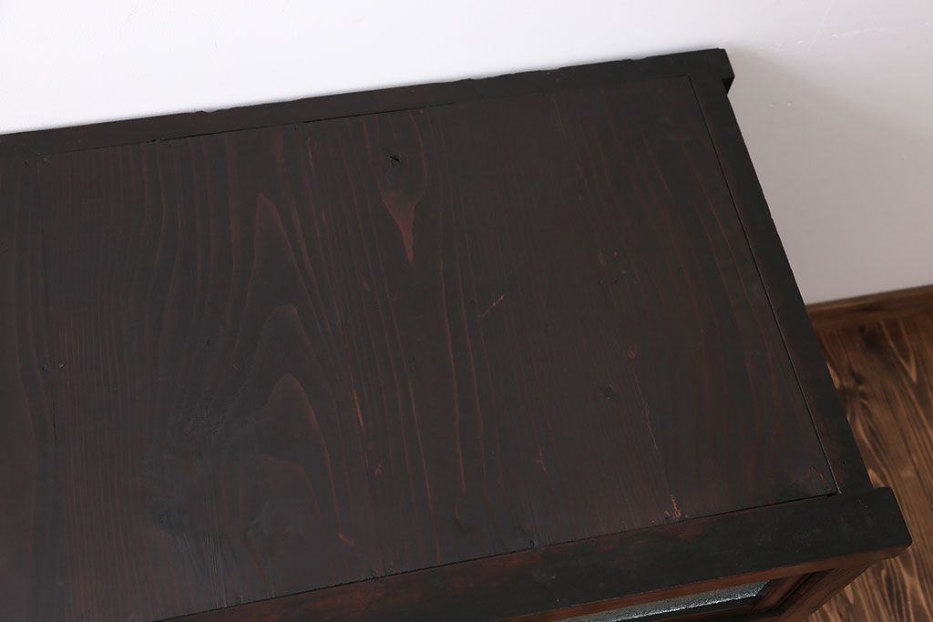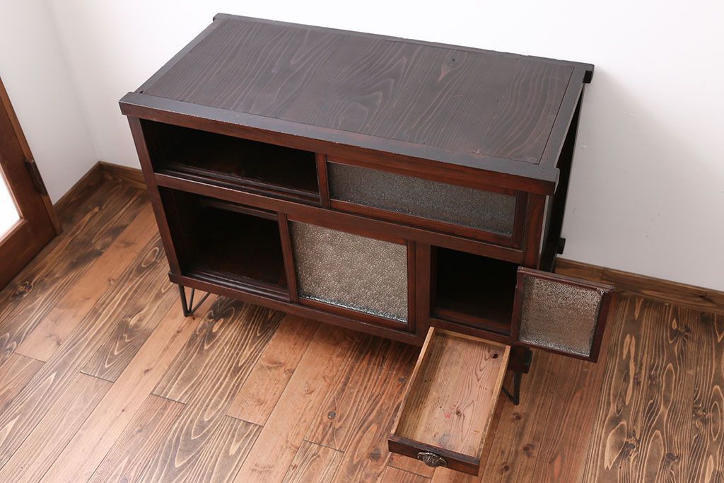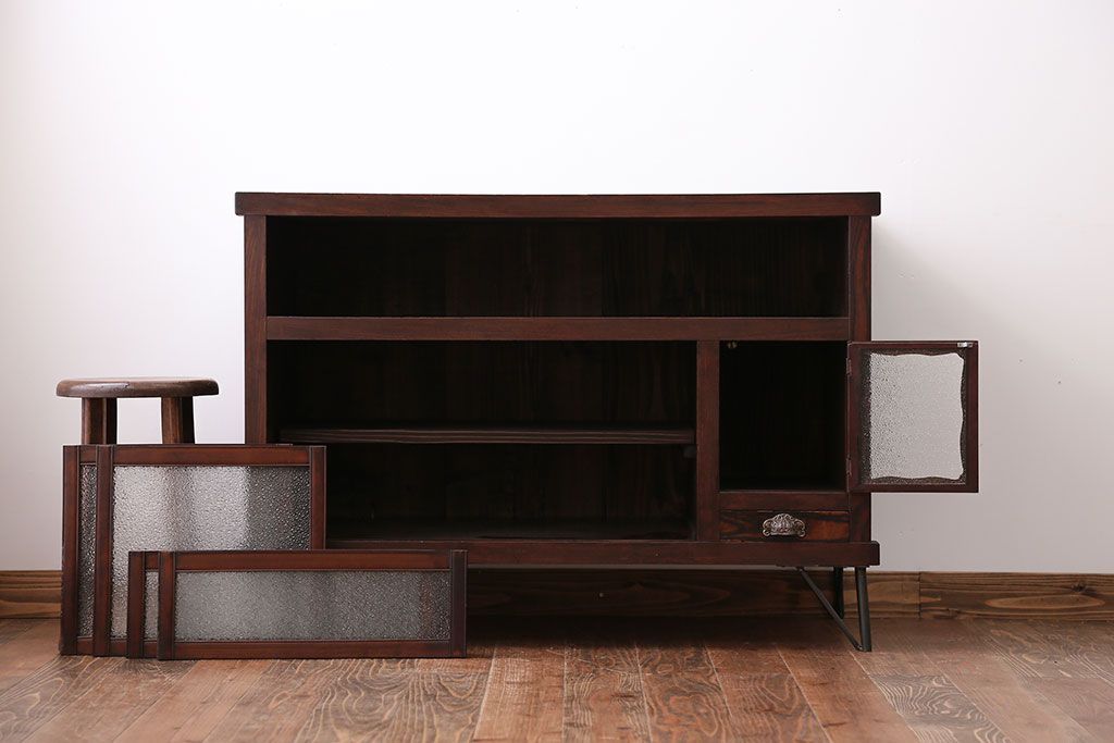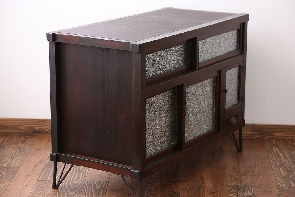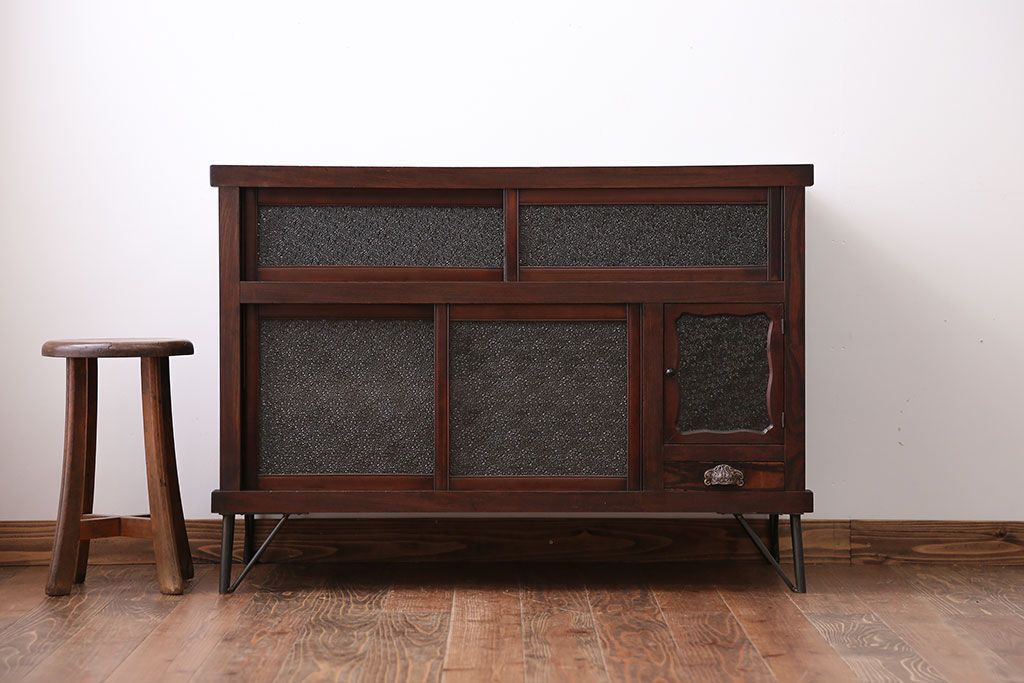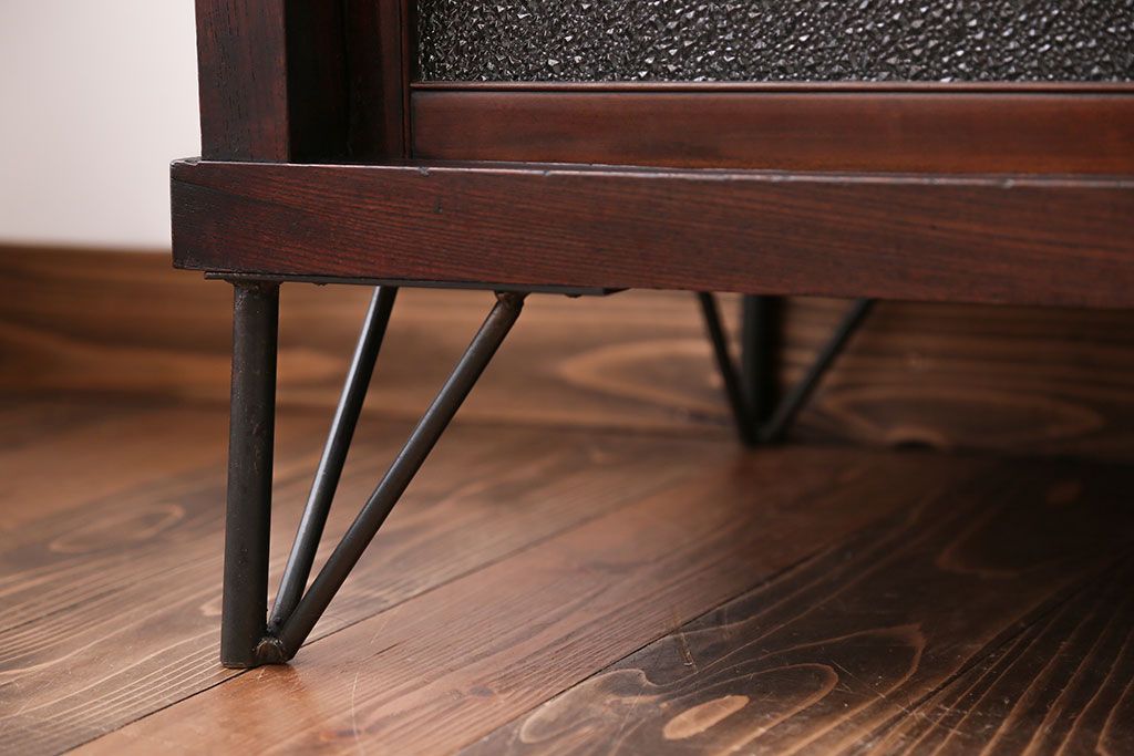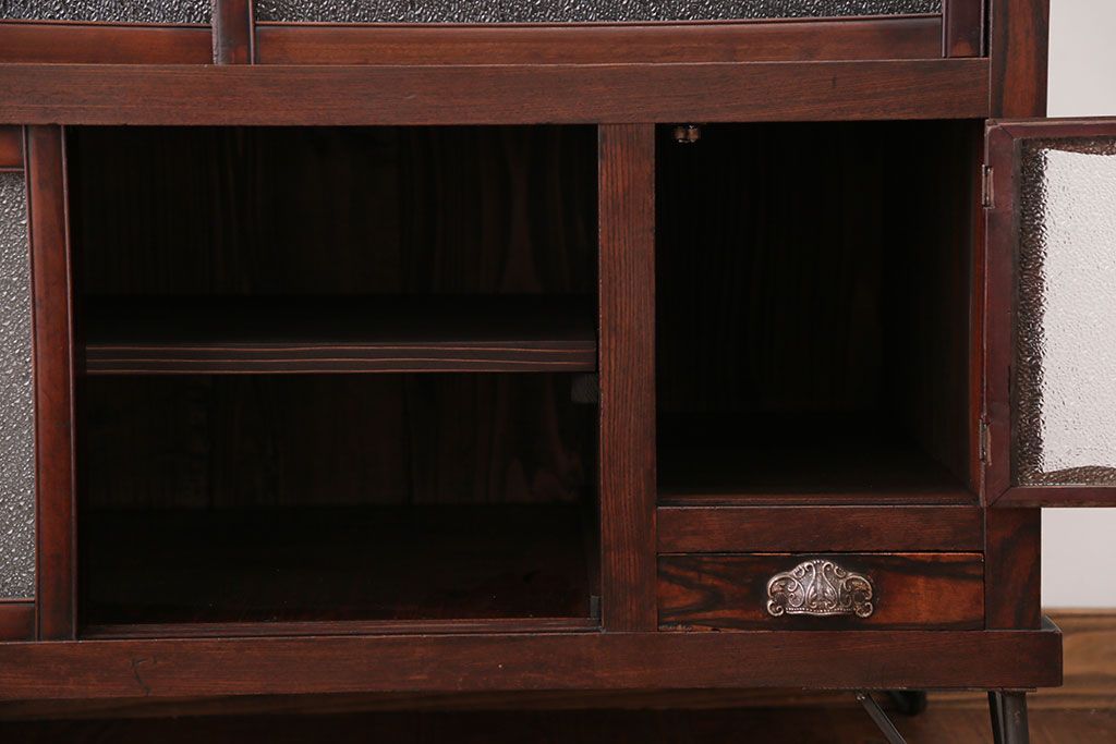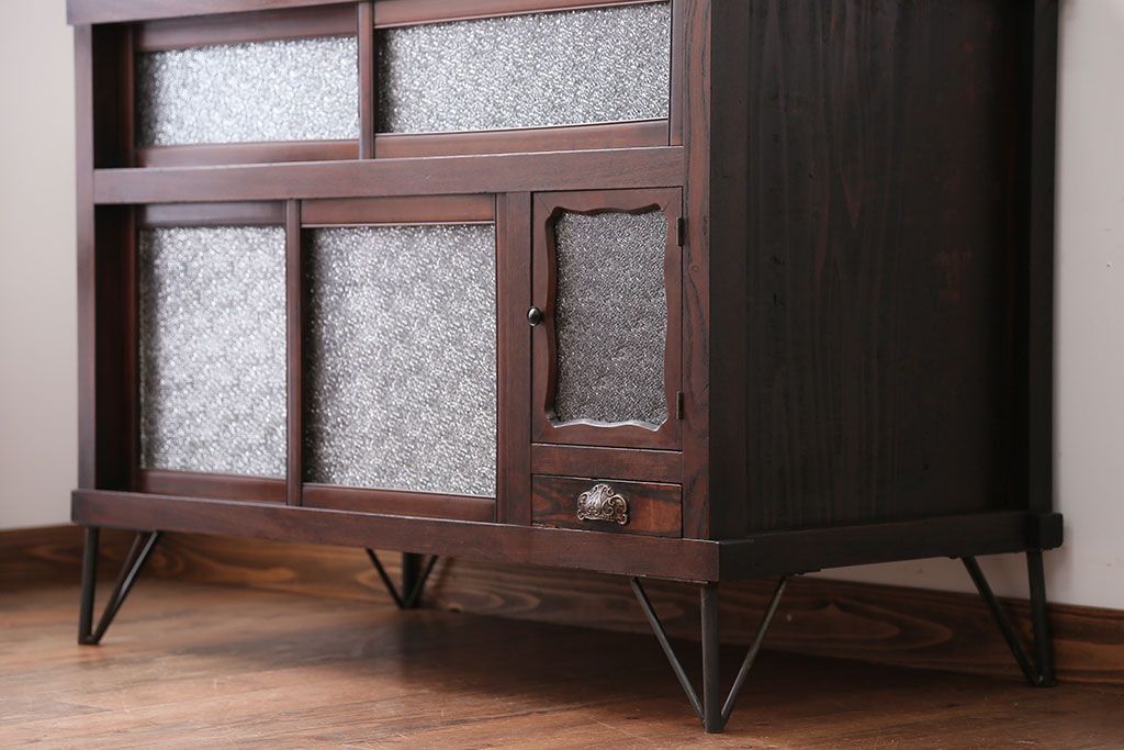 人気の鉄脚付きのダイヤガラス戸棚です。