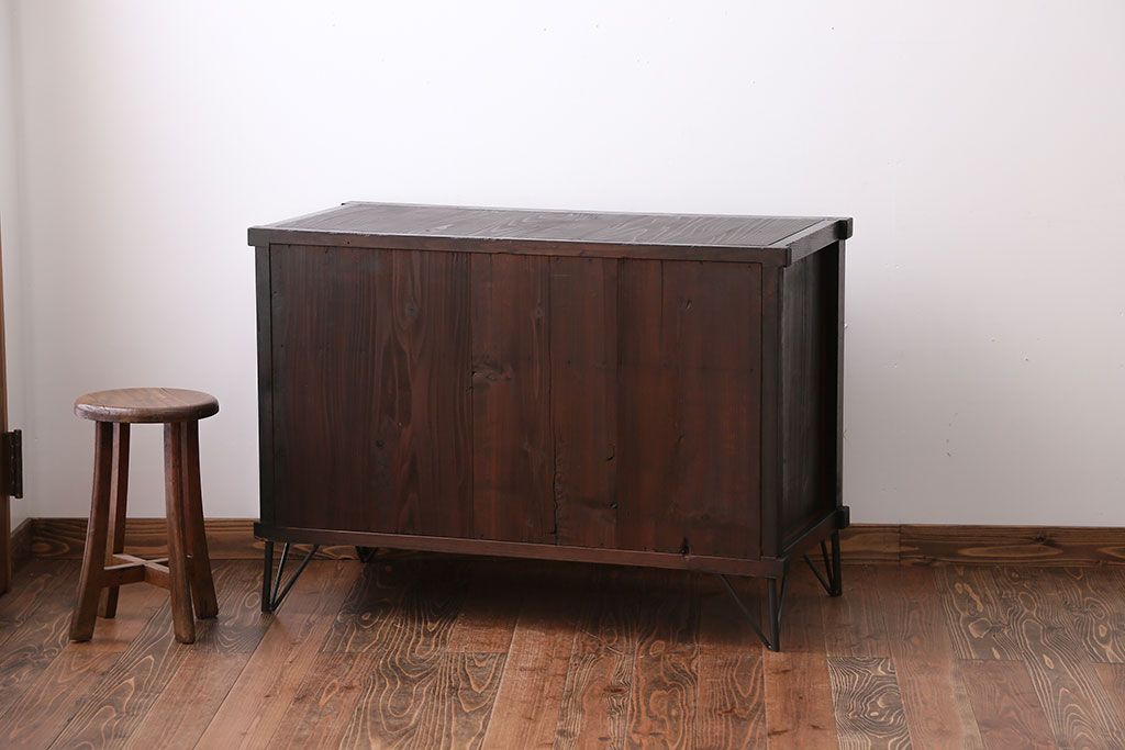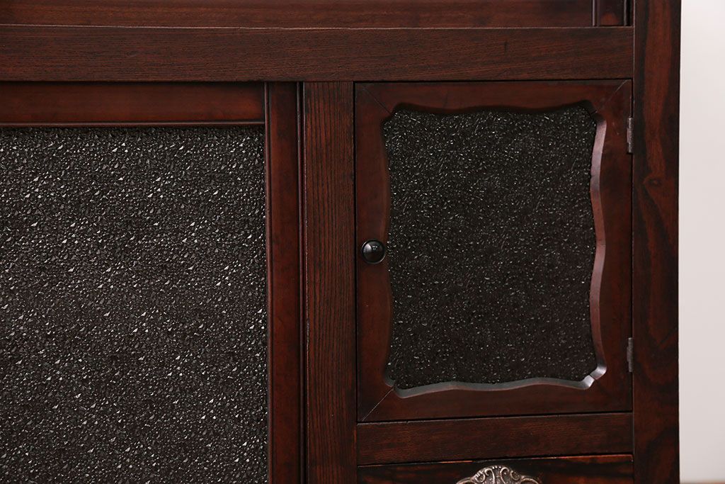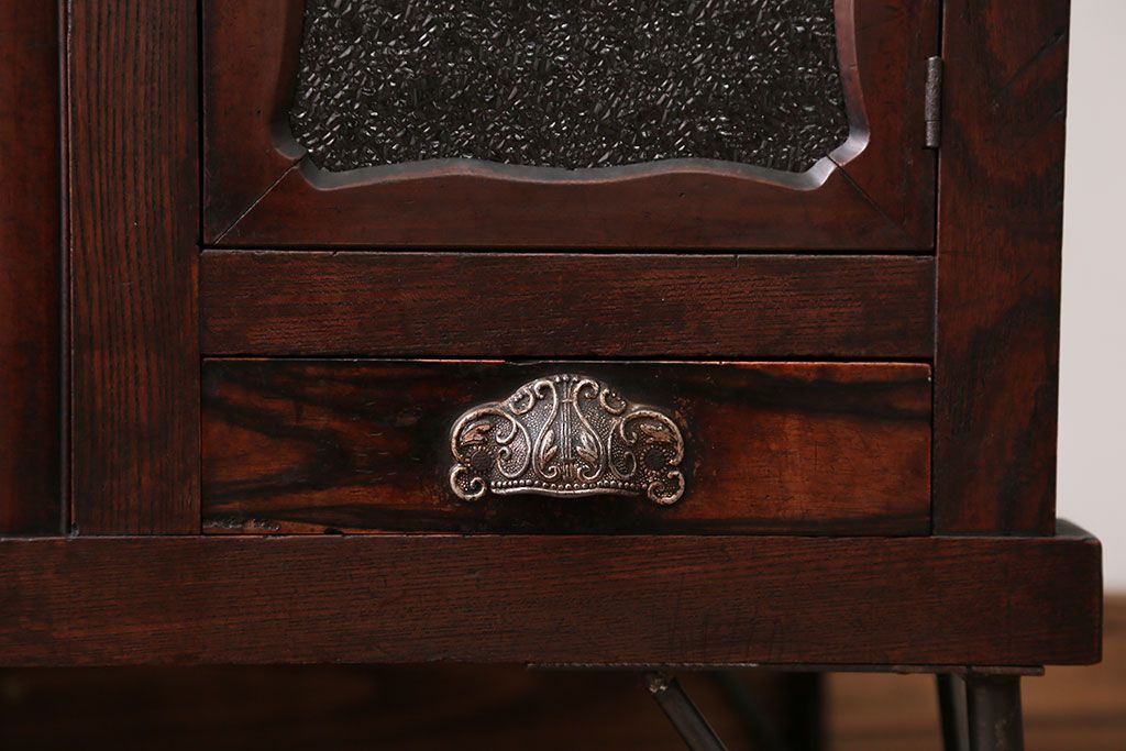 アンティーク家具 欅材!鉄脚付きダイヤガラス戸棚