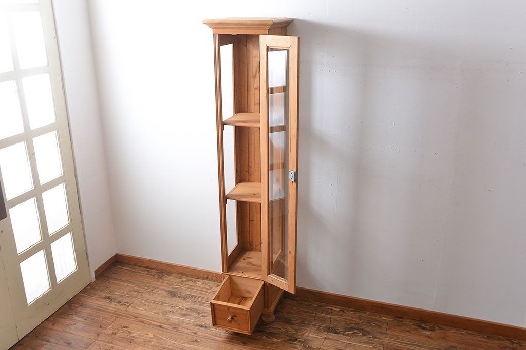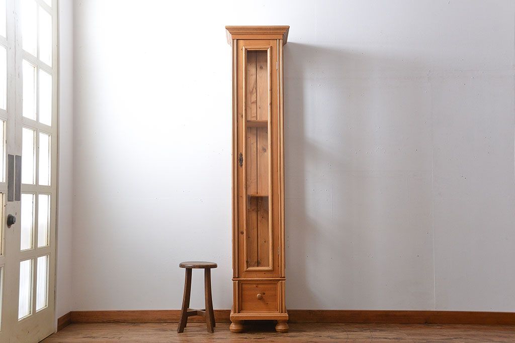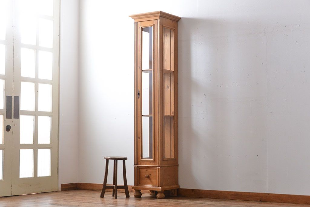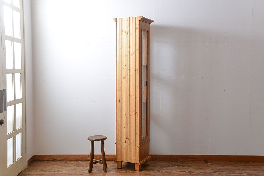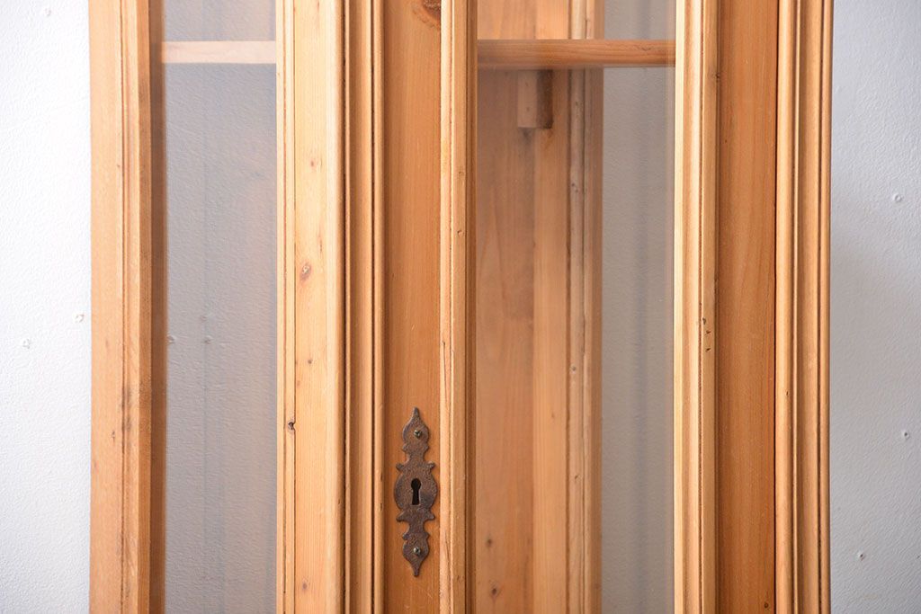 ヴィンテージ家具 イギリスビンテージ 縦型パイン材ガラスケース