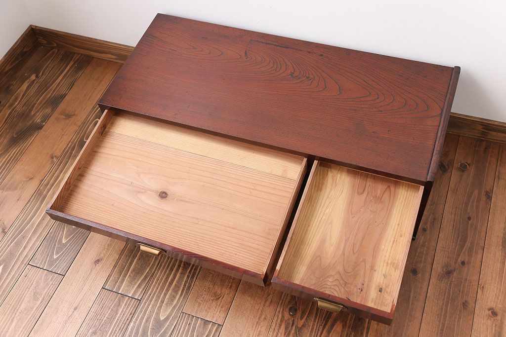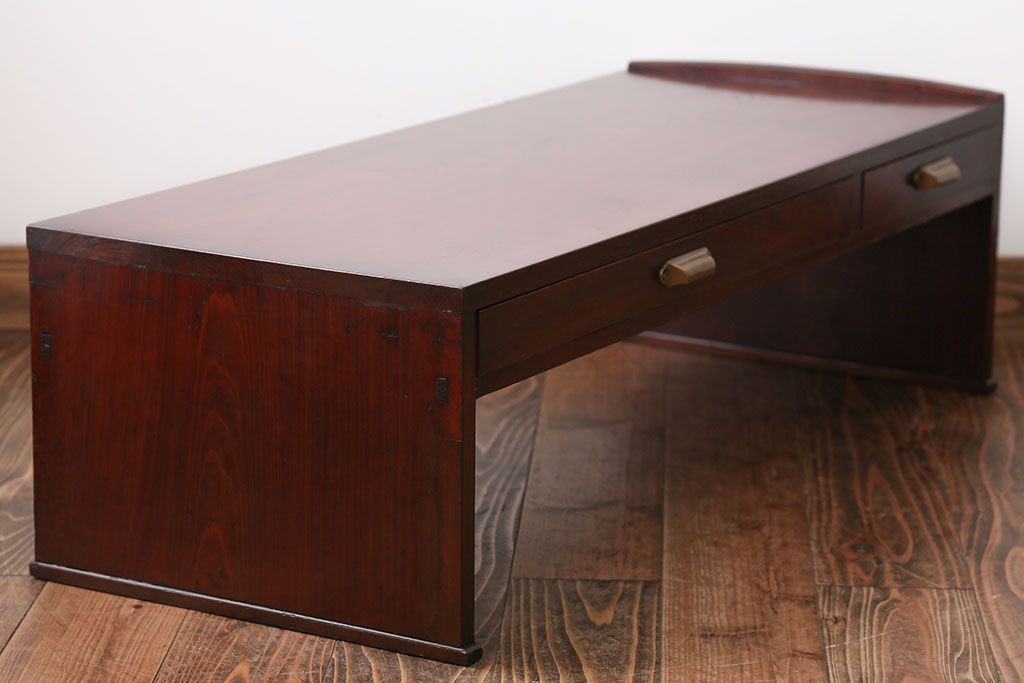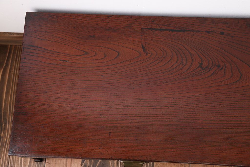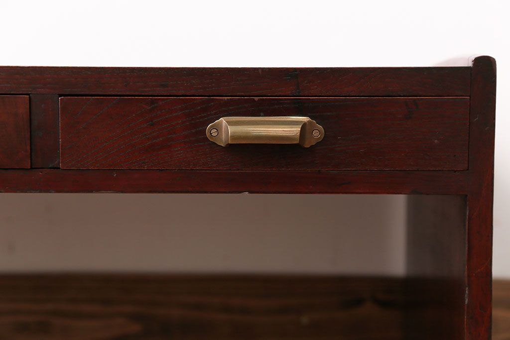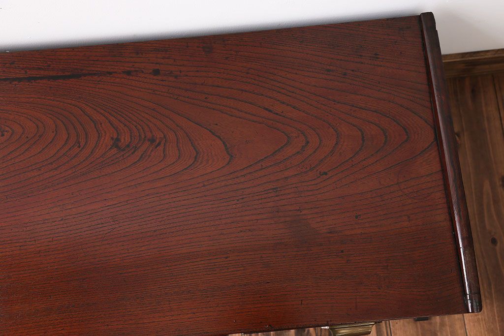 アンティーク家具 天板欅材の2杯引き出し付き文机