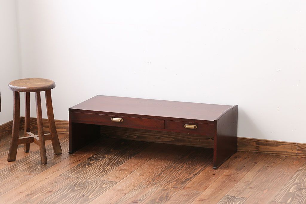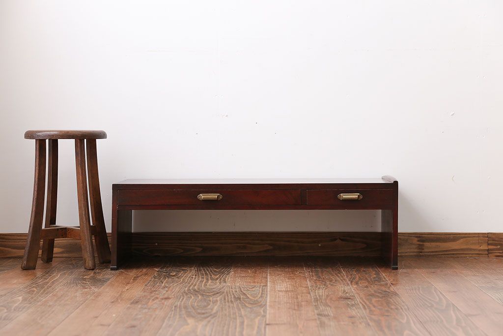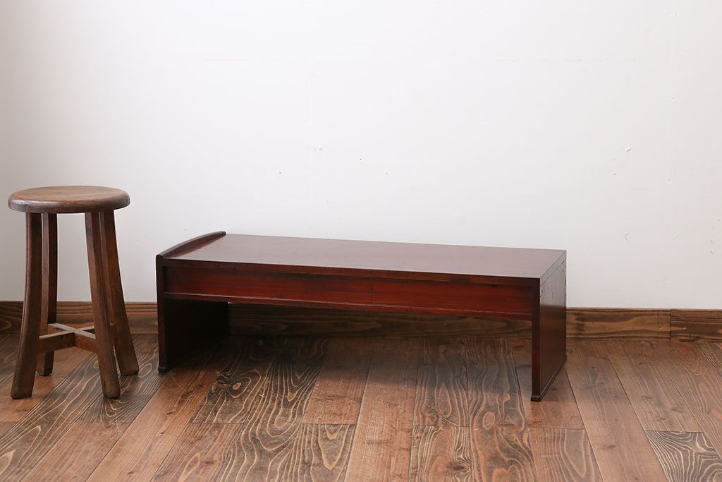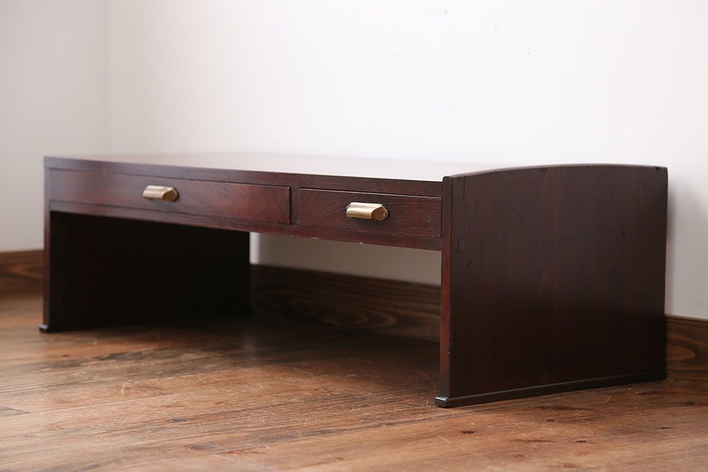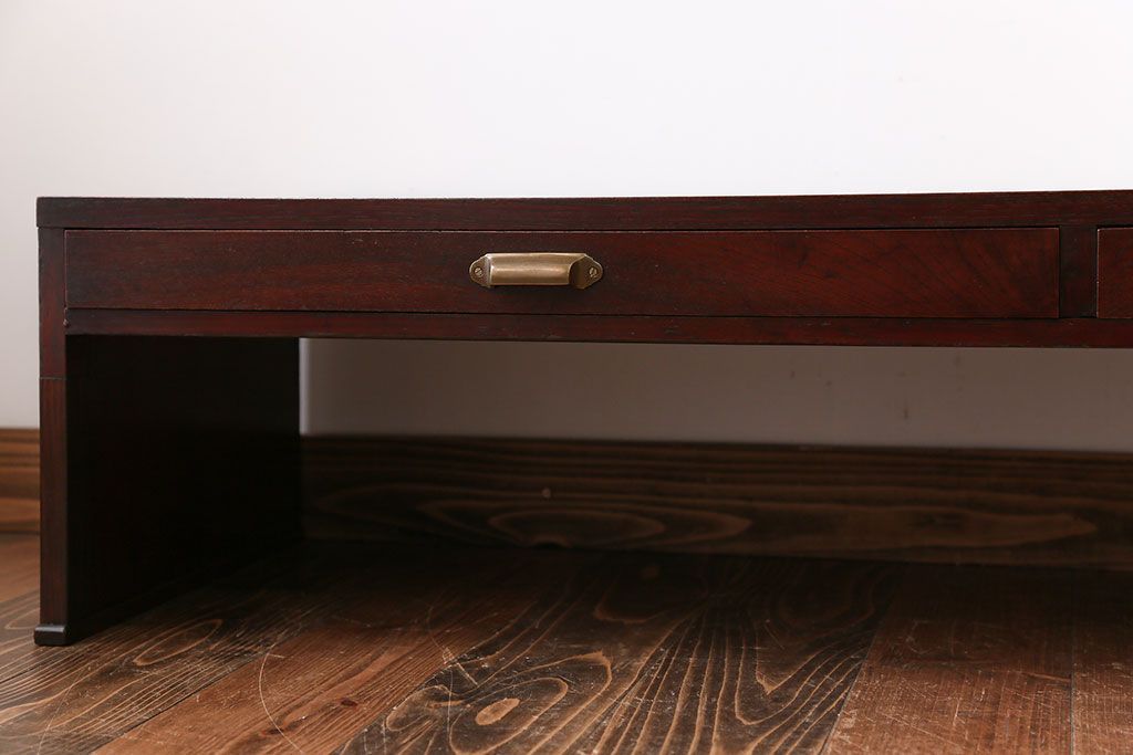 アンティーク家具 天板欅材の2杯引き出し付き文机