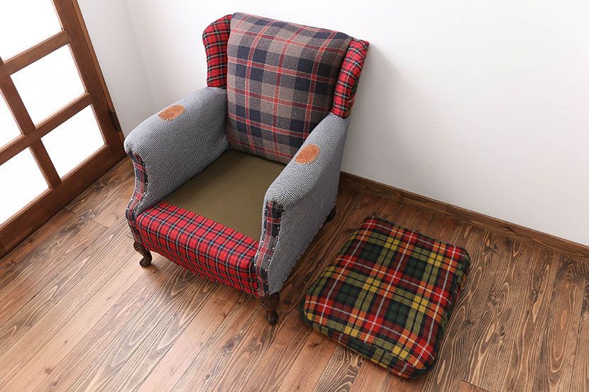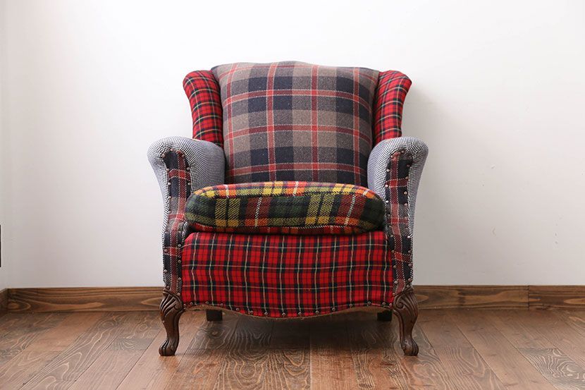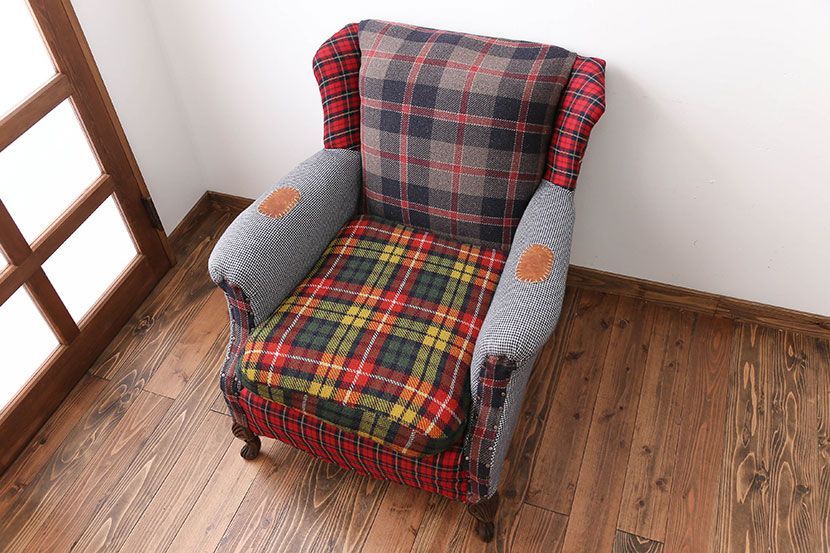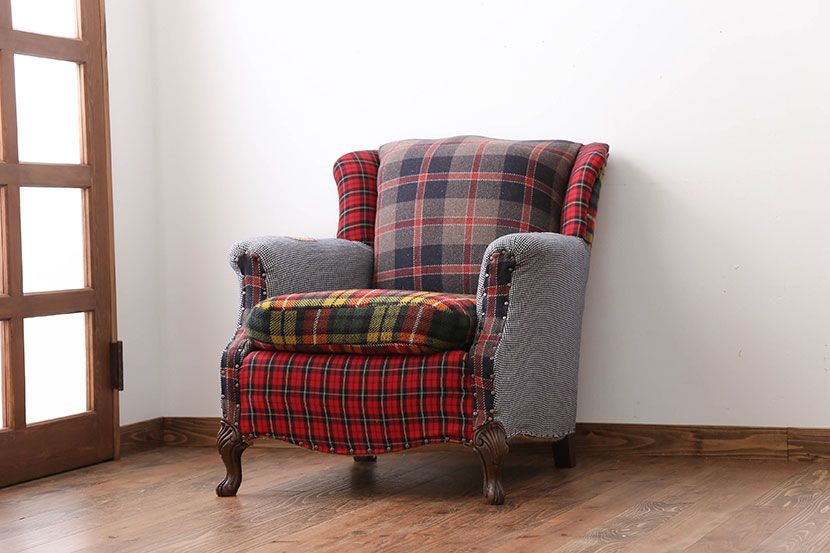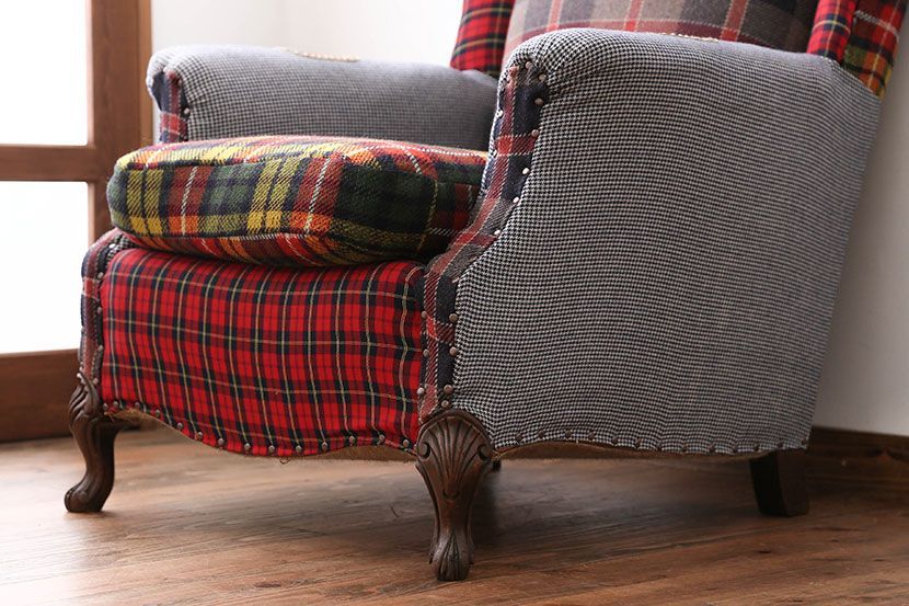 ヴィンテージ家具 イギリスビンテージ パッチワークウィングソファ