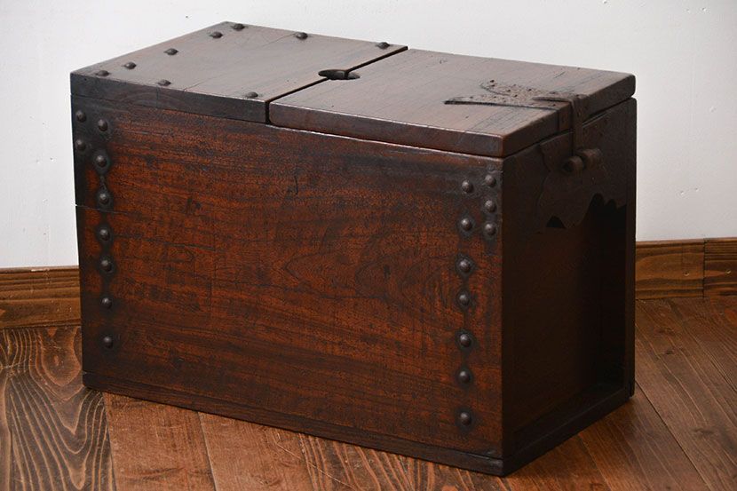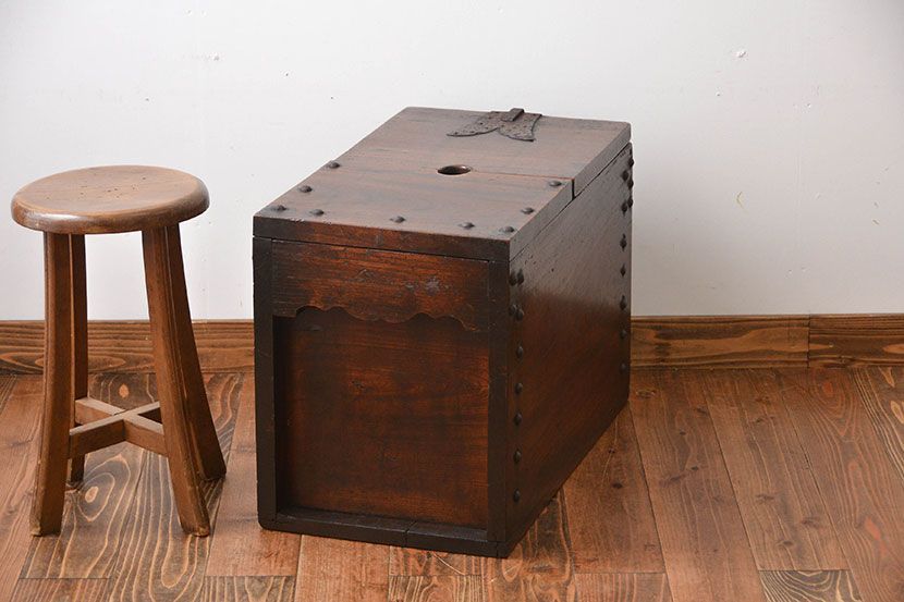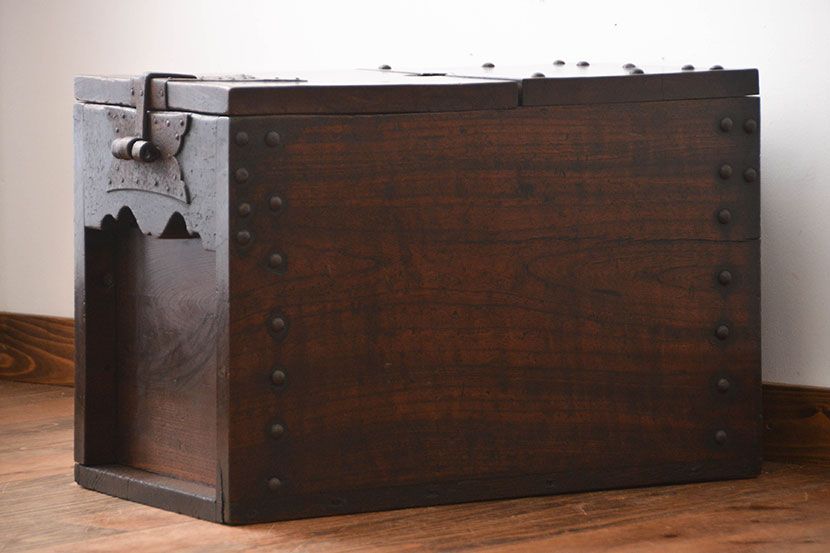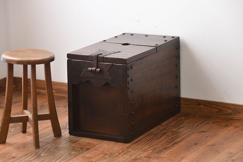 アンティーク雑貨 古民具・骨董 総欅材の大きな銭箱