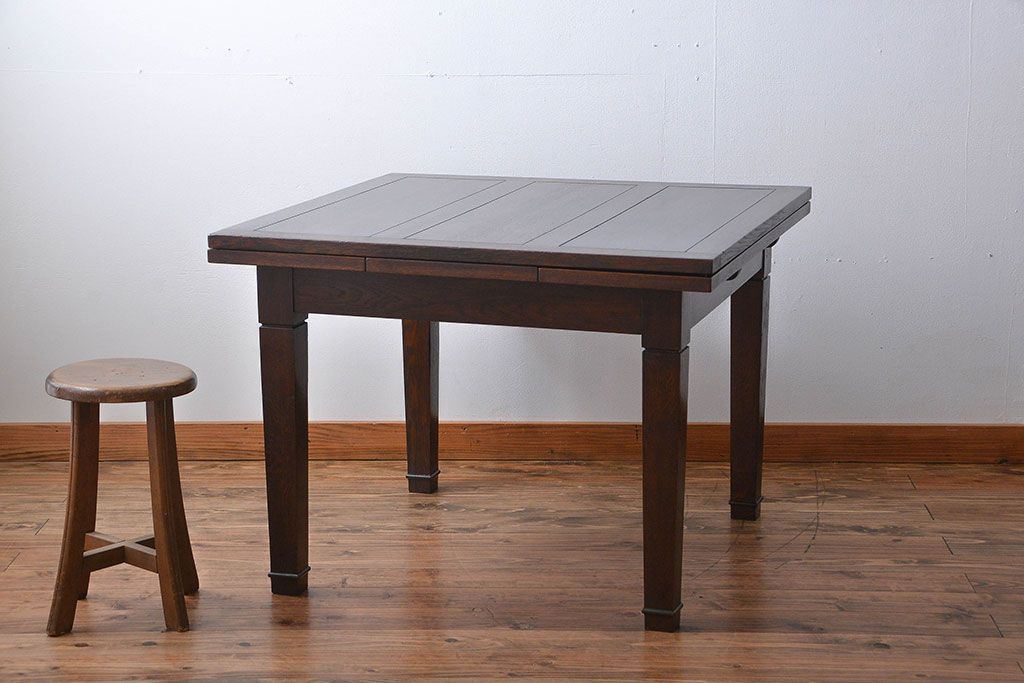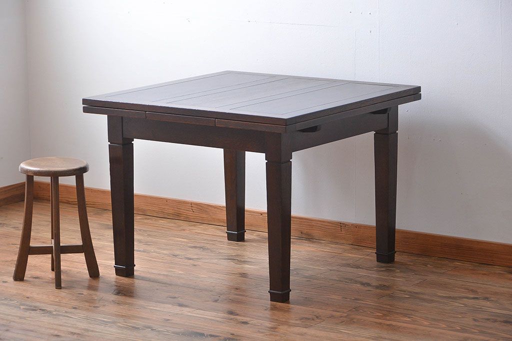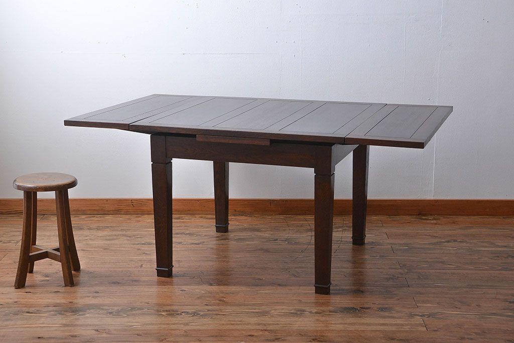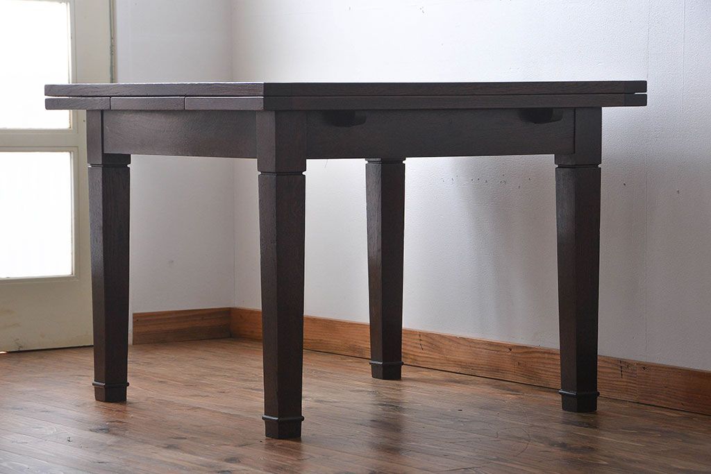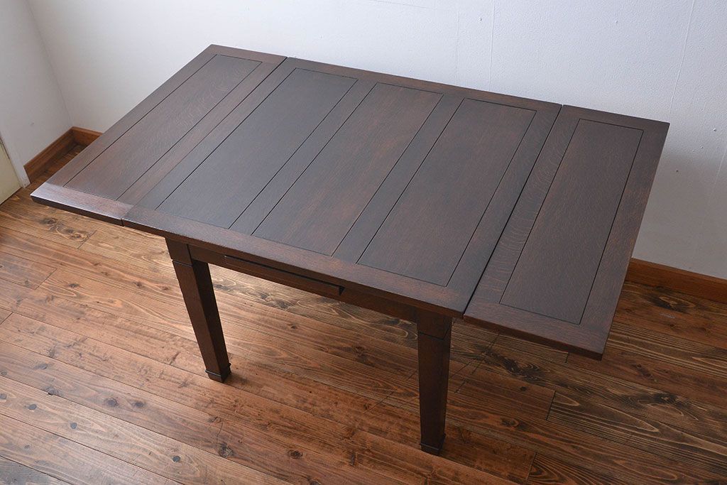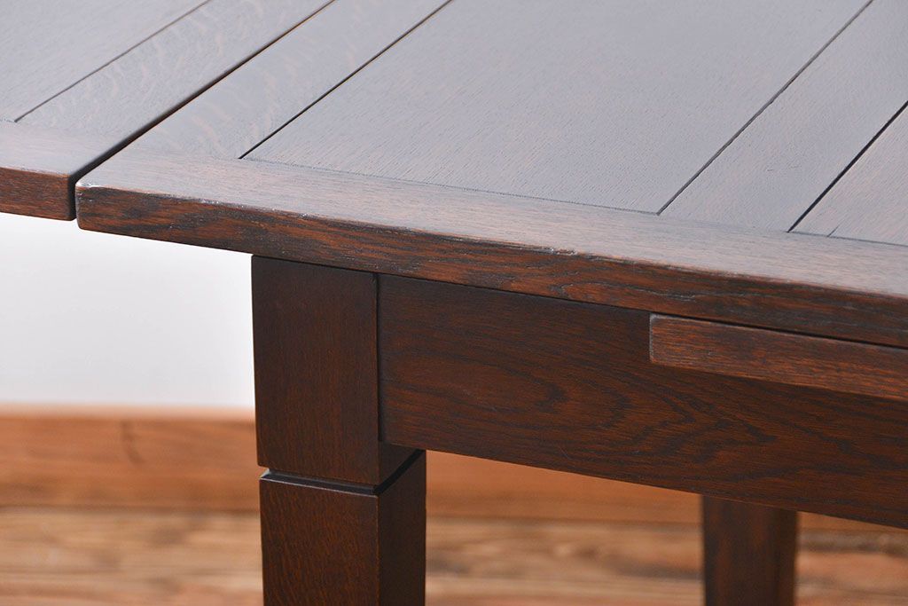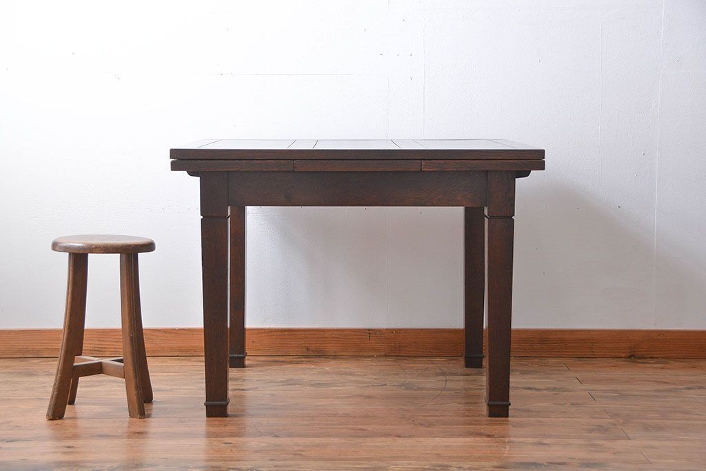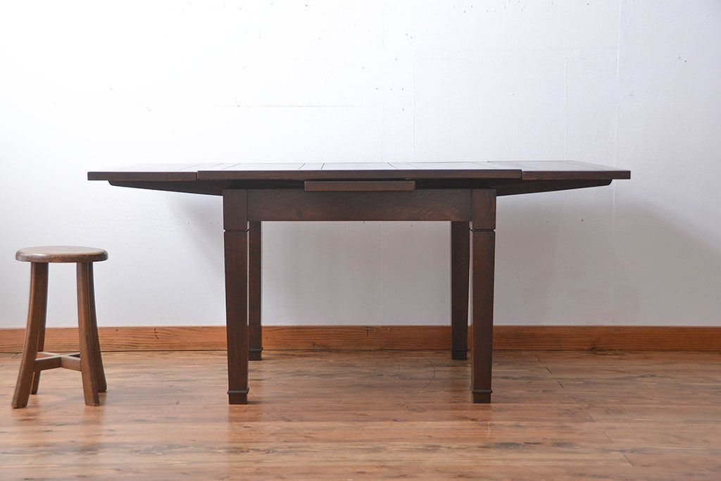 アンティーク家具 イギリスアンティーク オーク材のシンプルなドローリーフテーブル