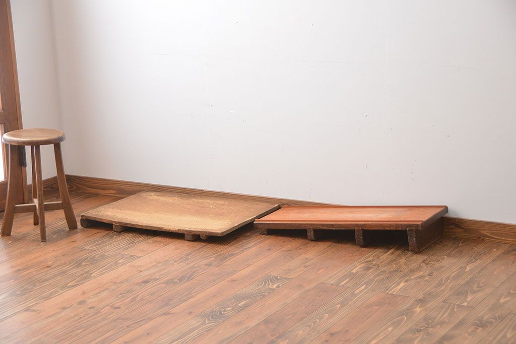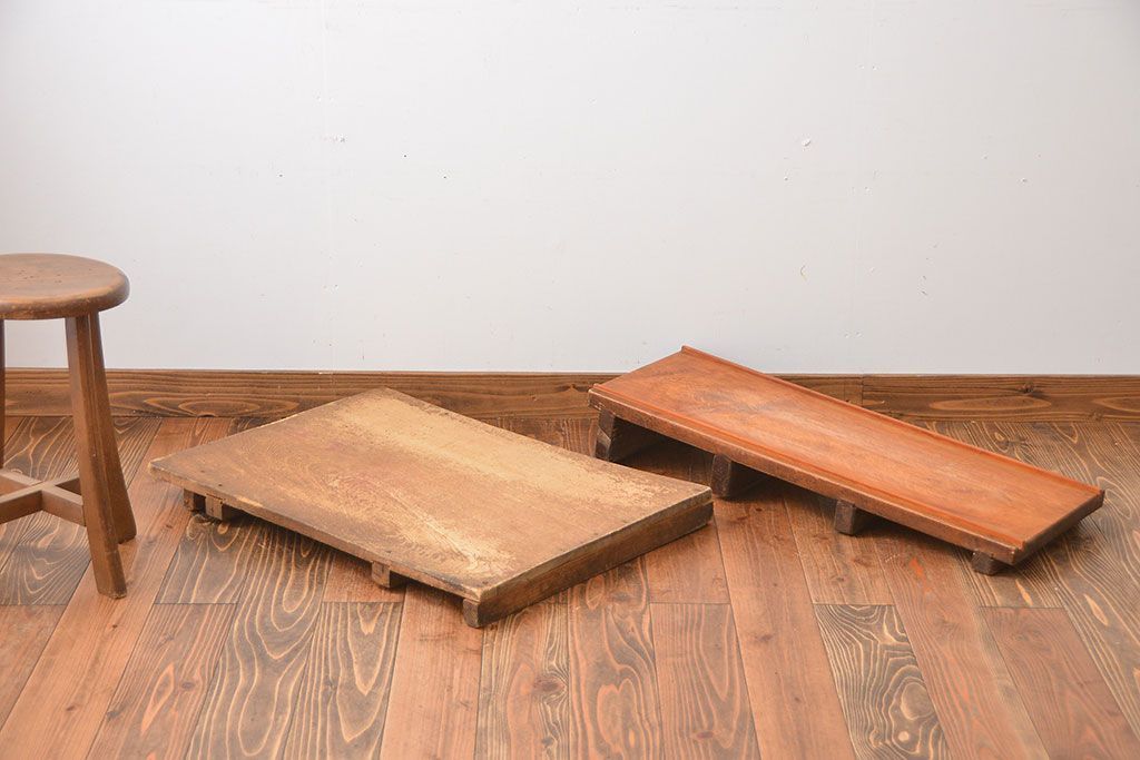 アンティーク雑貨 和製アンティーク シャビーな古い木味の飾り台2枚セット