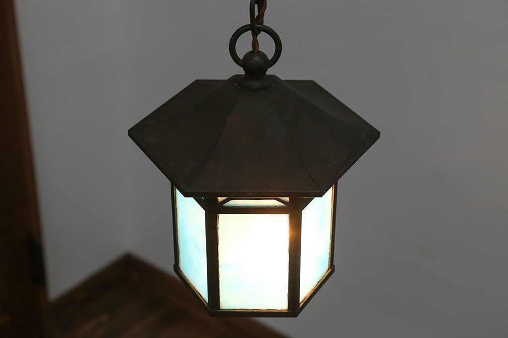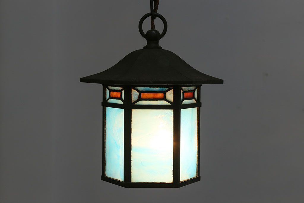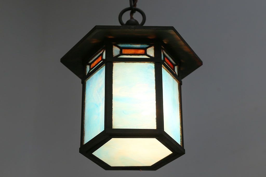 ラフジュ工房> 照明・ランプ> 灯籠・提灯・行灯 > アンティーク雑貨 大正ロマン 希少品!美しいステンドグラスの吊り下げ照明