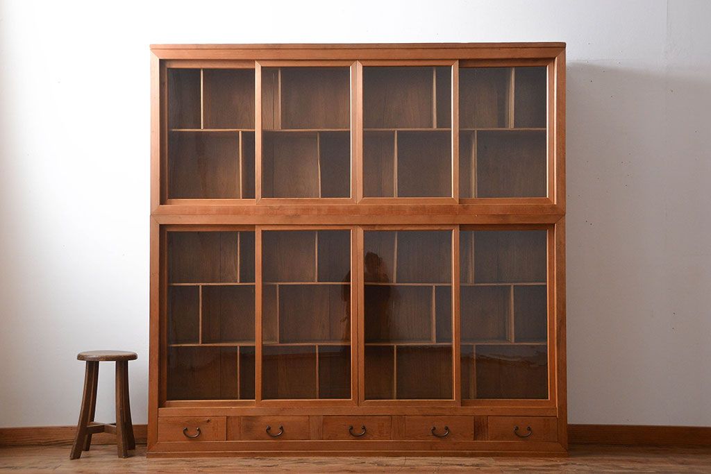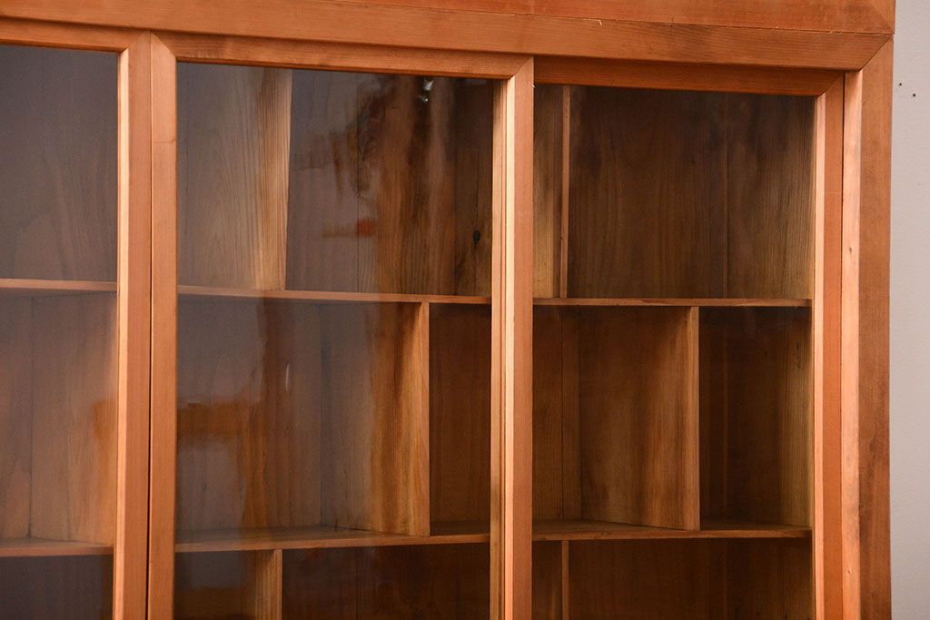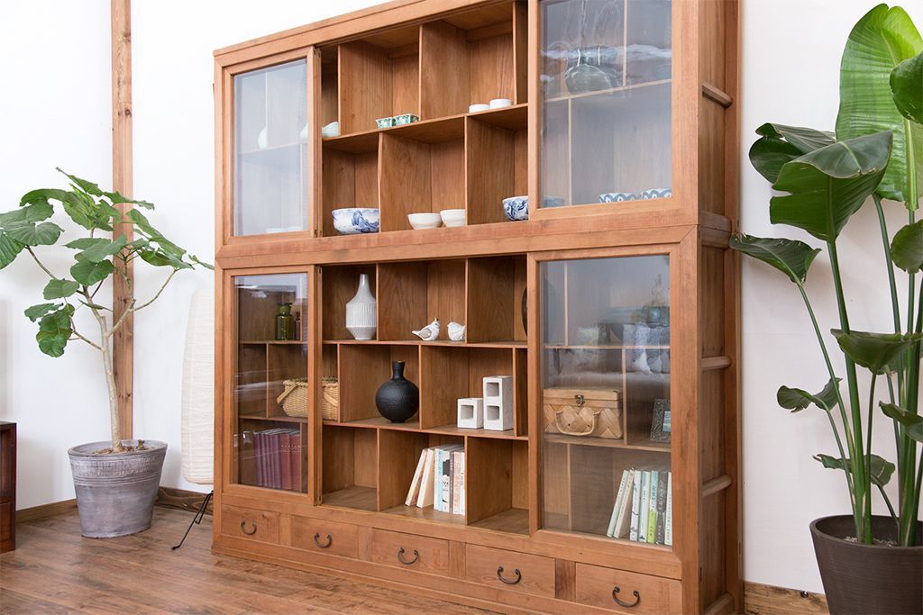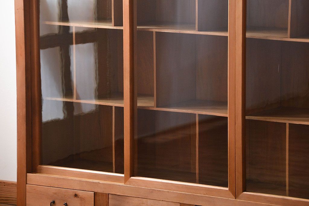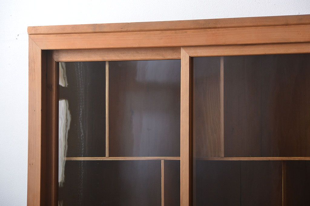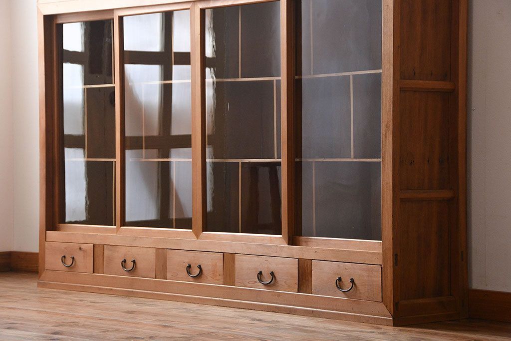 アンティーク家具 収納力抜群!4枚引き戸のナチュラルな薄型収納棚