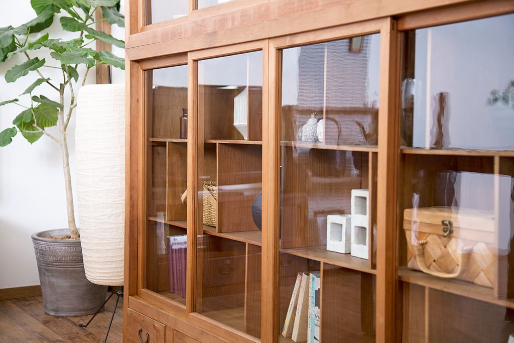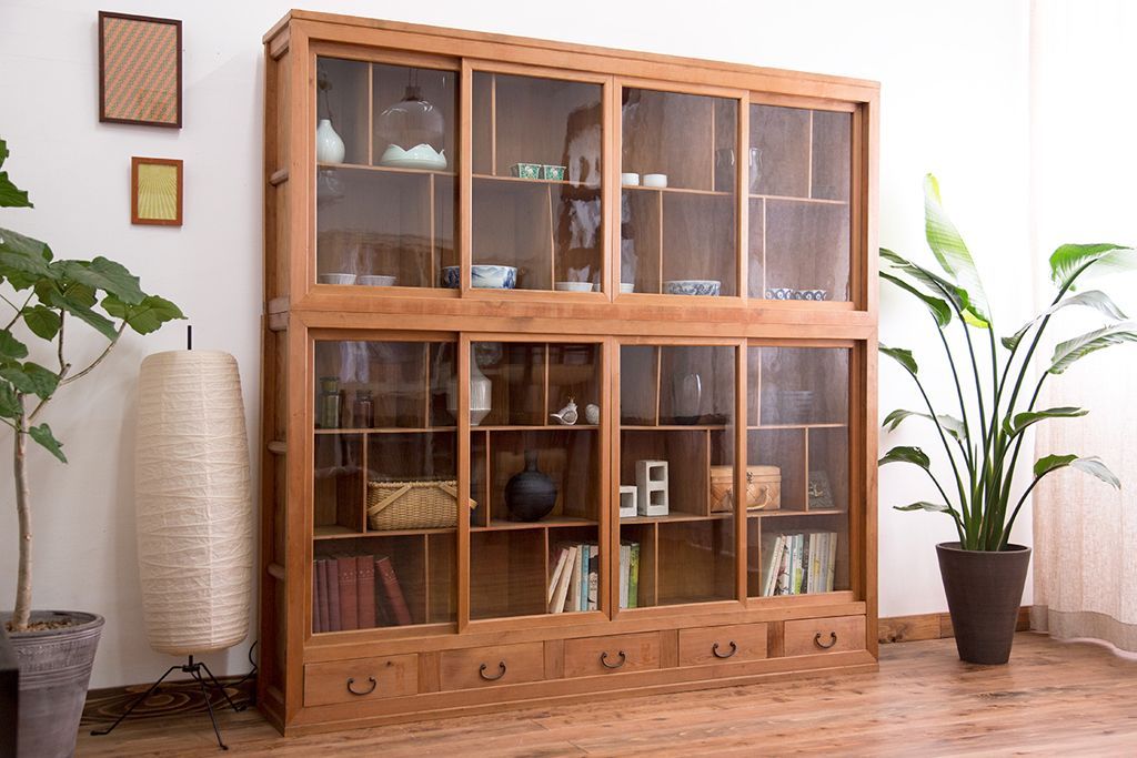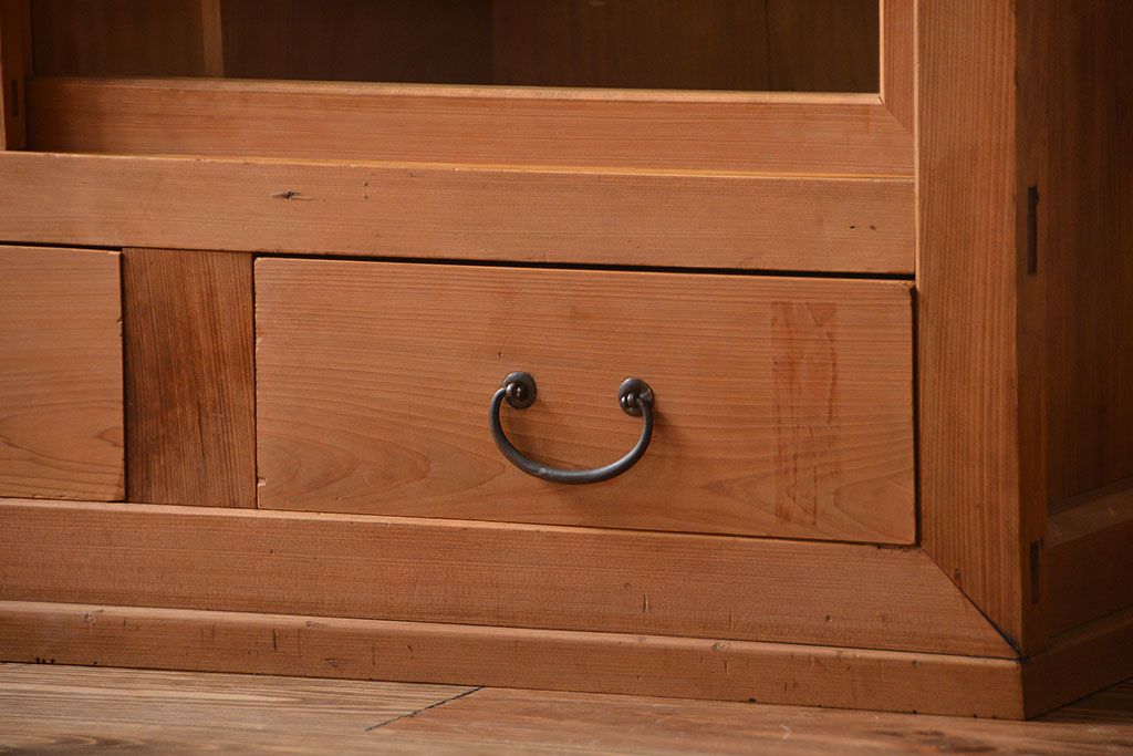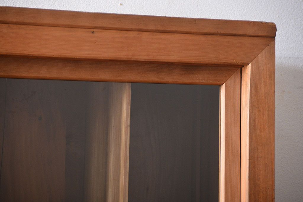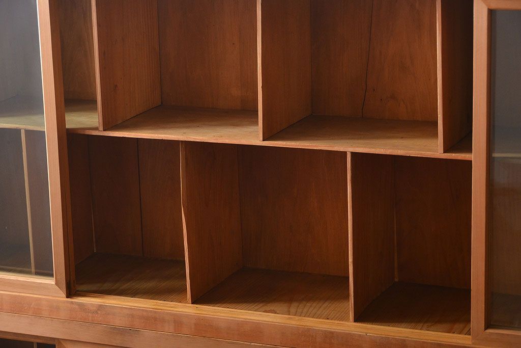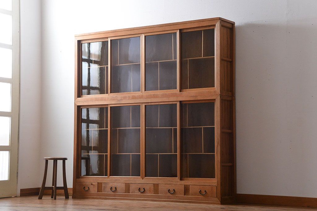 アンティーク家具 収納力抜群!4枚引き戸のナチュラルな薄型収納棚