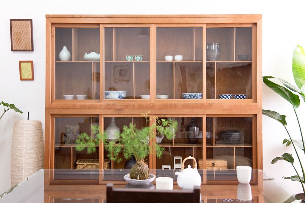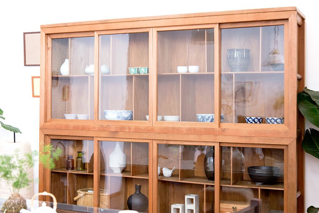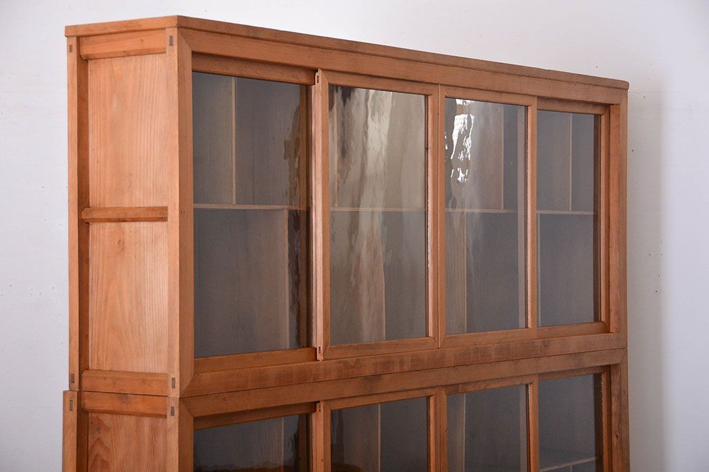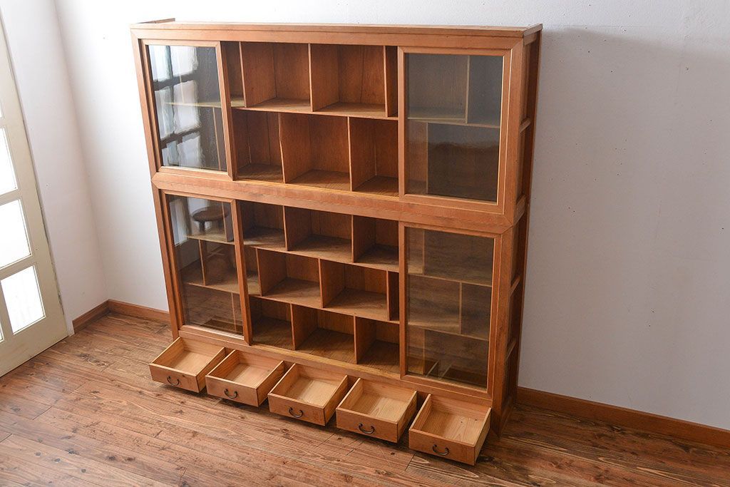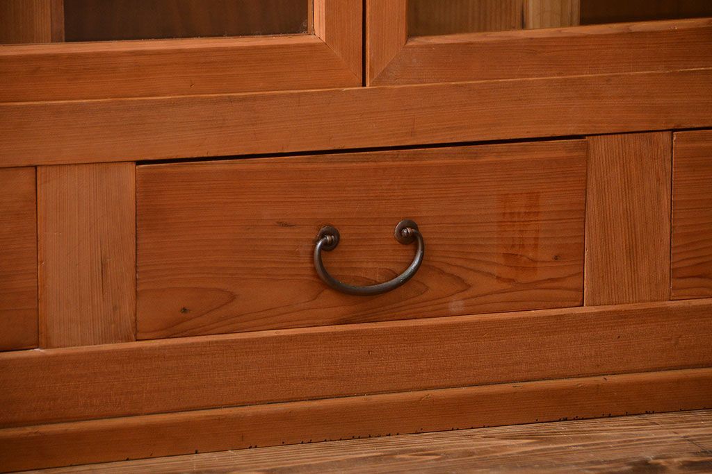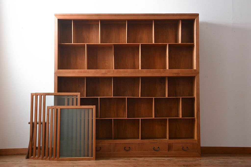 アンティーク家具 収納力抜群!4枚引き戸のナチュラルな薄型収納棚