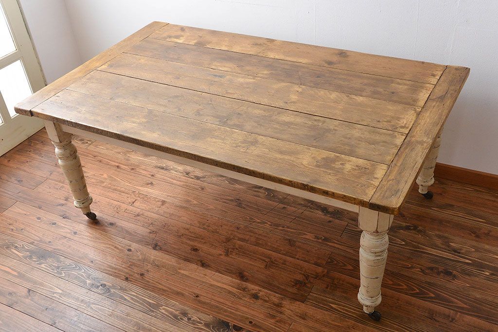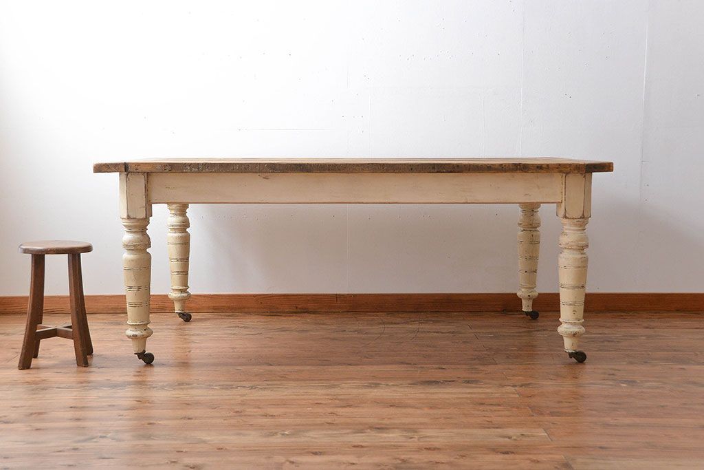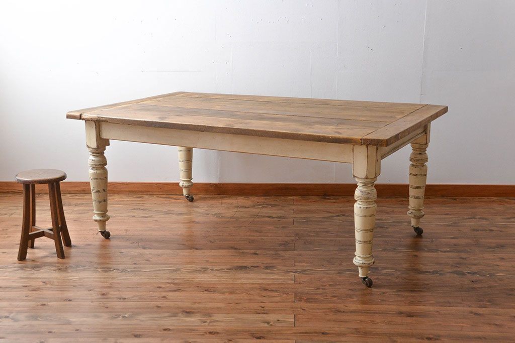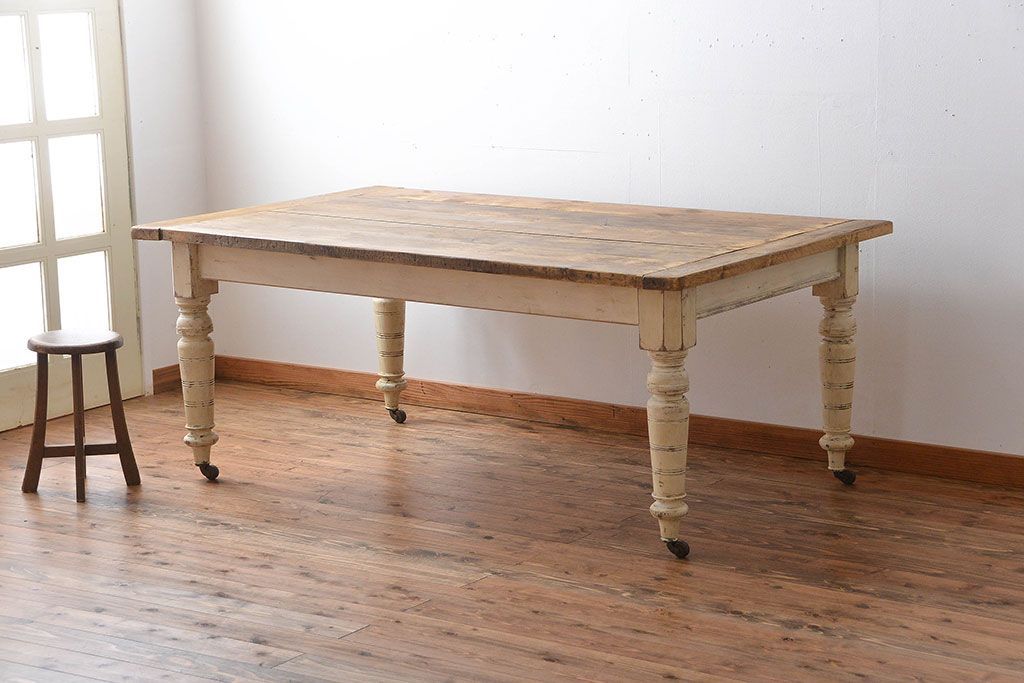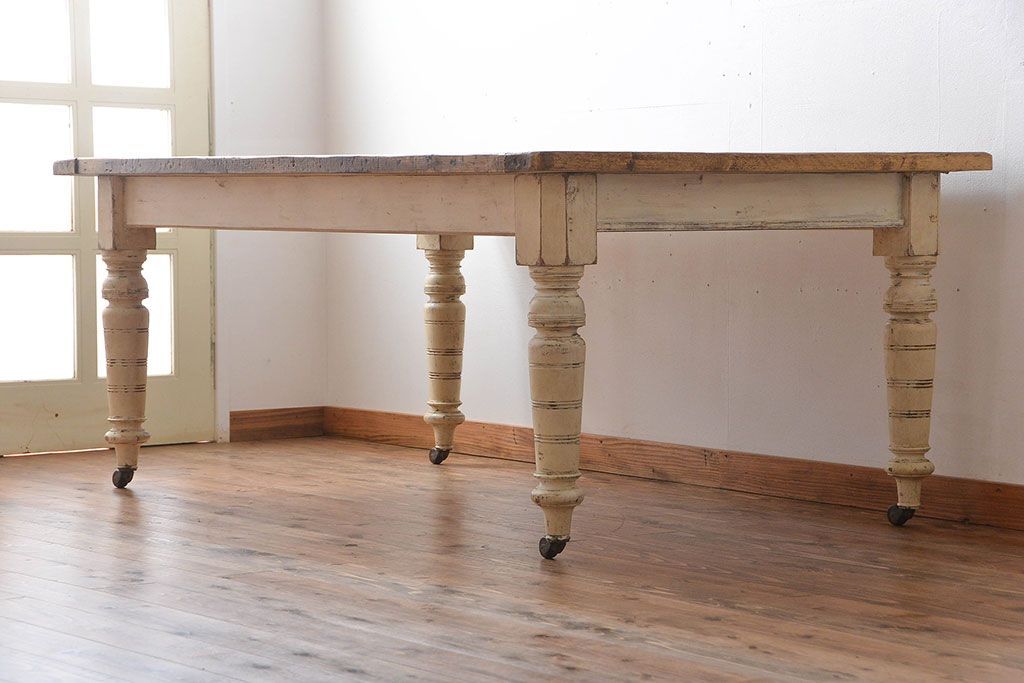 アンティーク家具 イギリスアンティーク 古材天板の大きなペイントダイニングテーブル