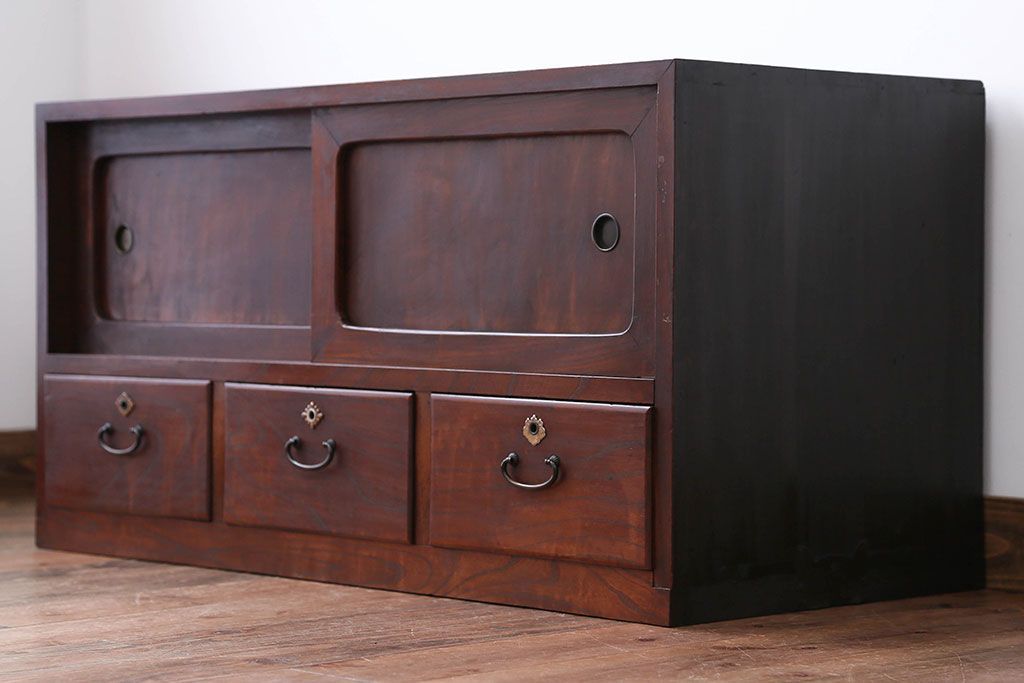 アンティーク家具 古民具・骨董 前面欅材!おしゃれな時代箪笥ローボード
