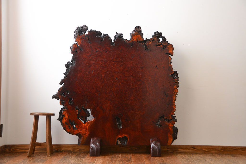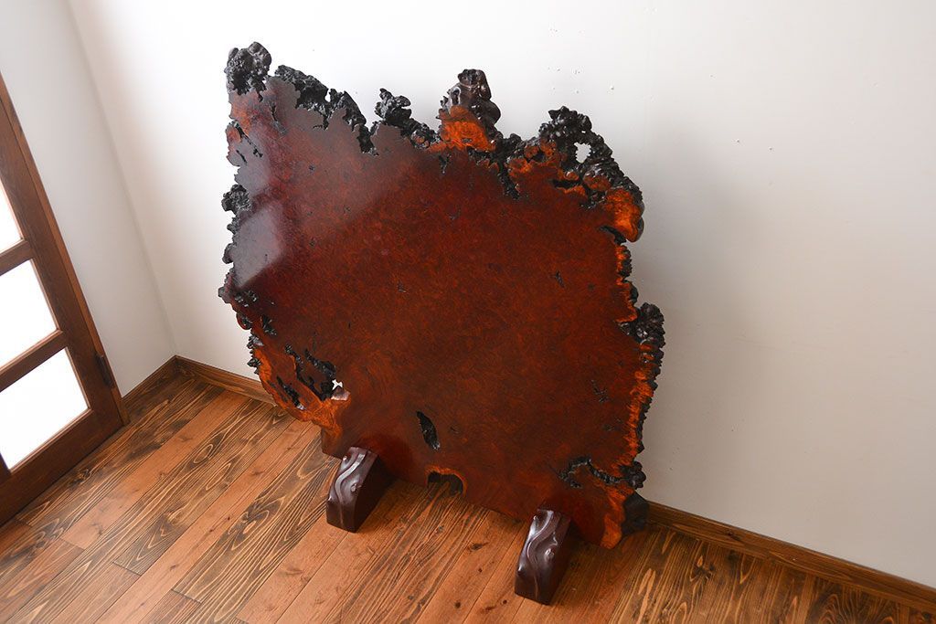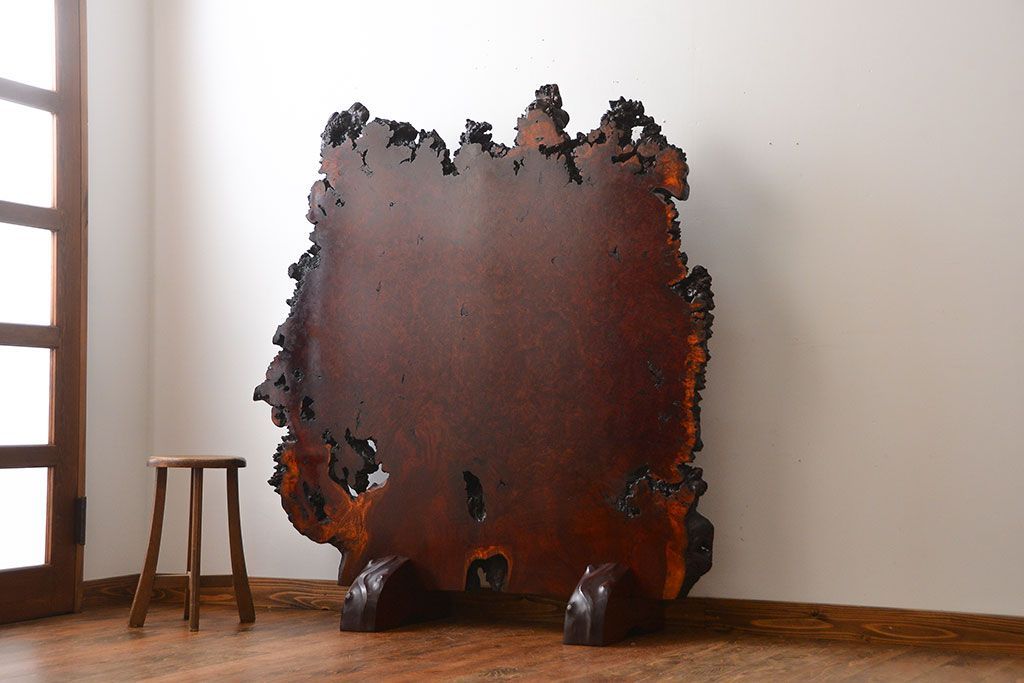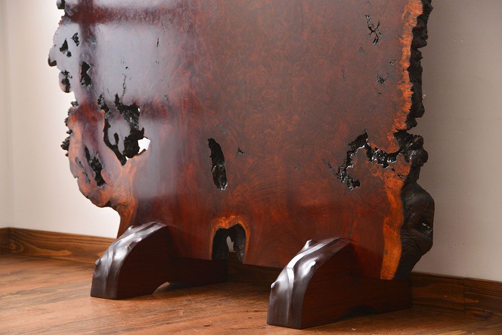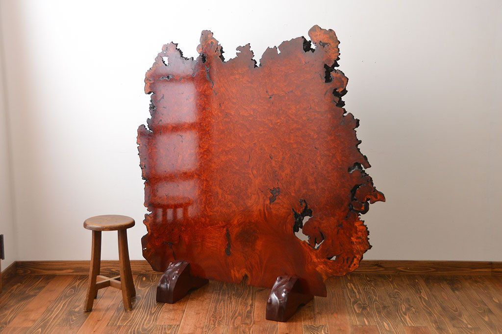 古民具・骨董 鳥眼杢・葡萄杢!高級花梨無垢材 特大唐木輪切り衝立て(定価約120万)(カリン材)