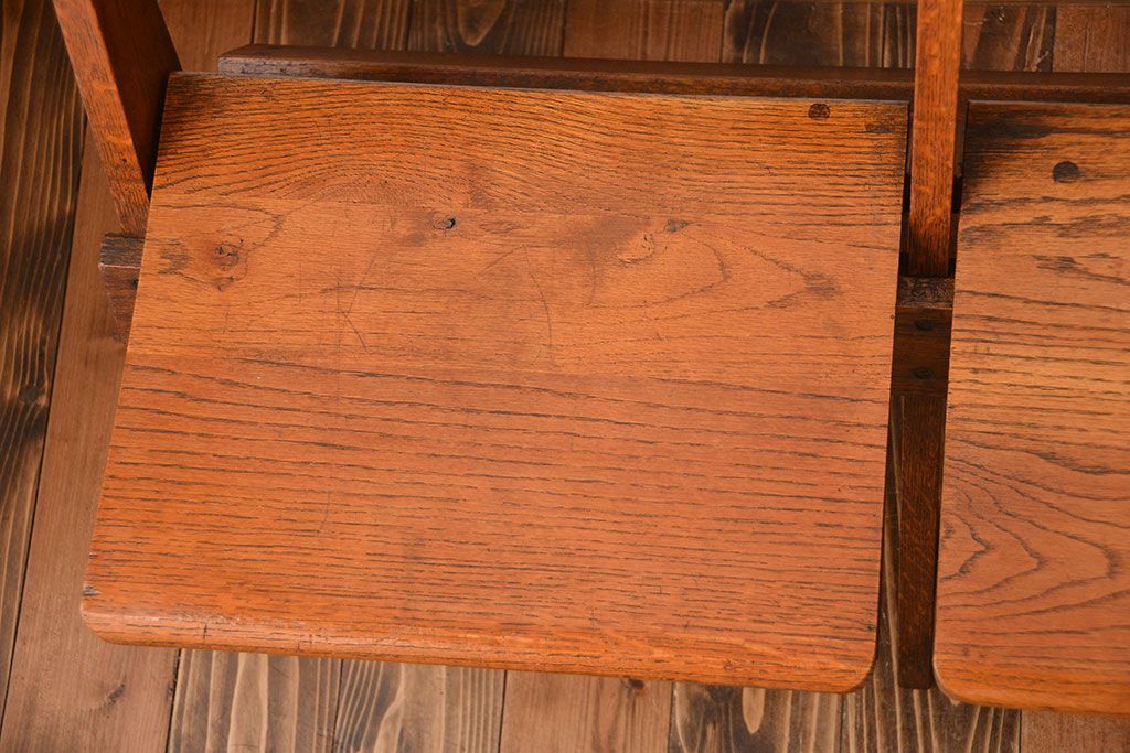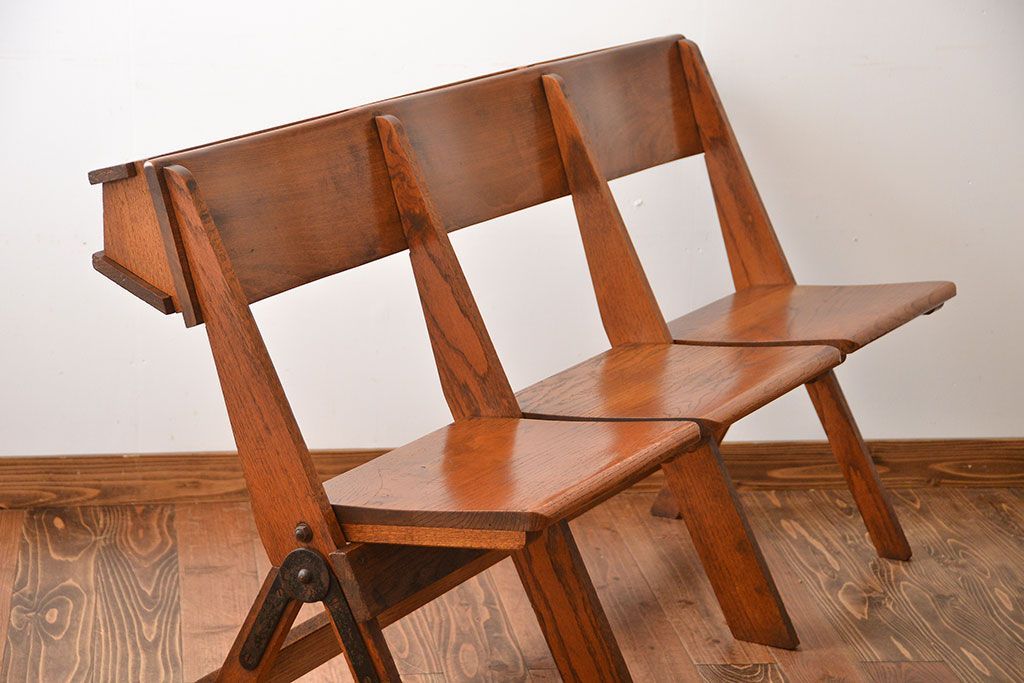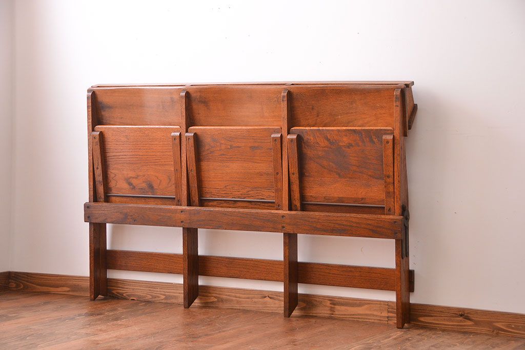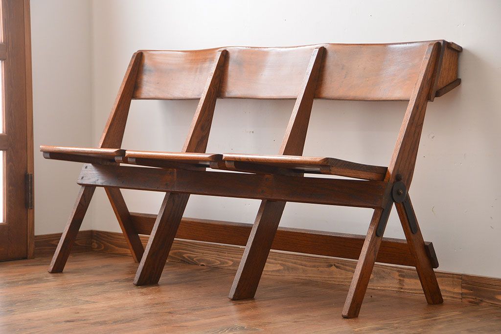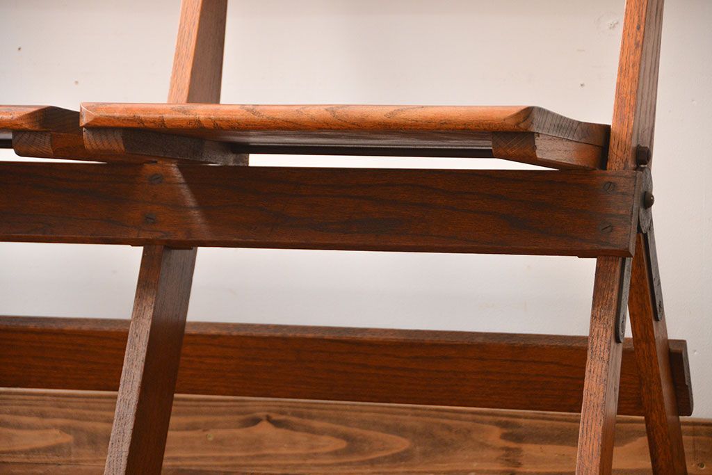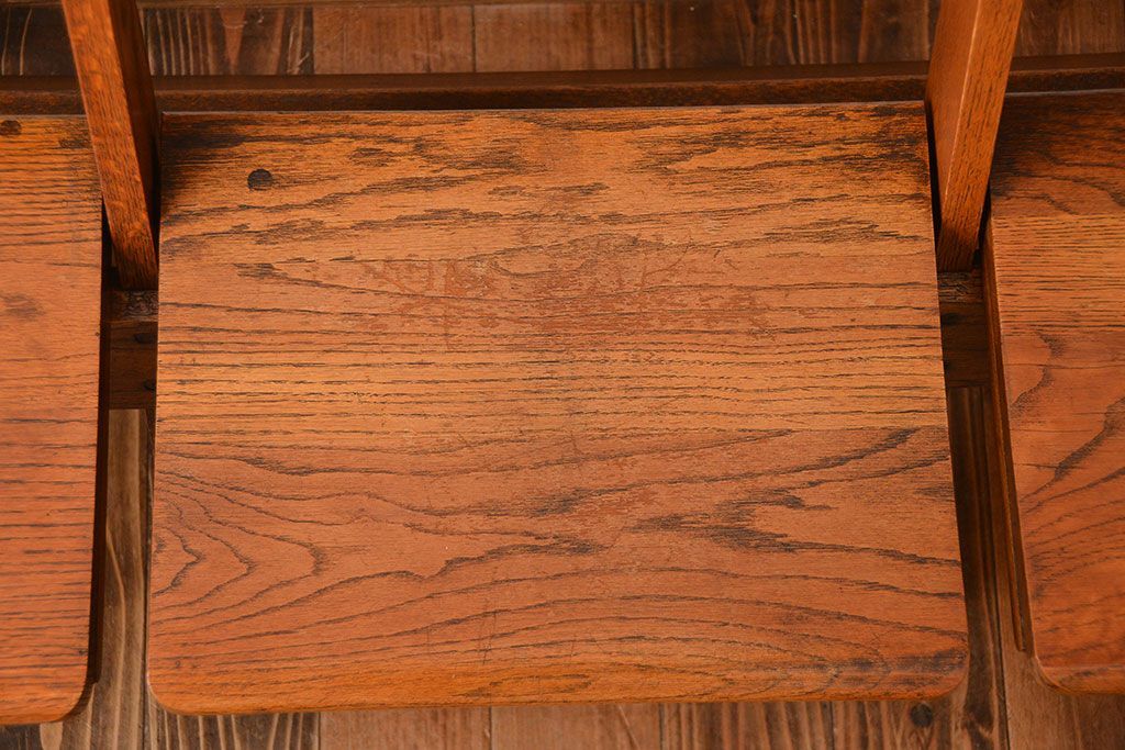 アンティーク家具 イギリスアンティーク オーク材の折り畳み式3人掛けチャーチベンチ(2)