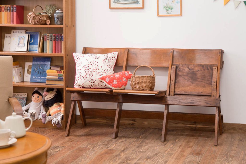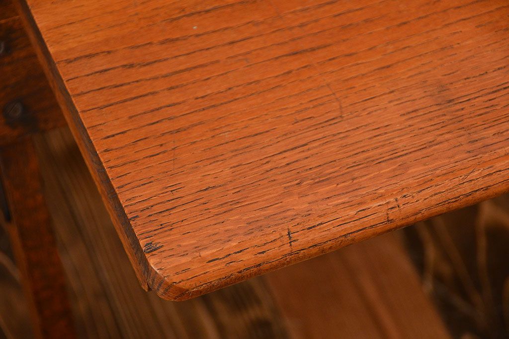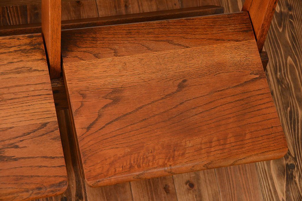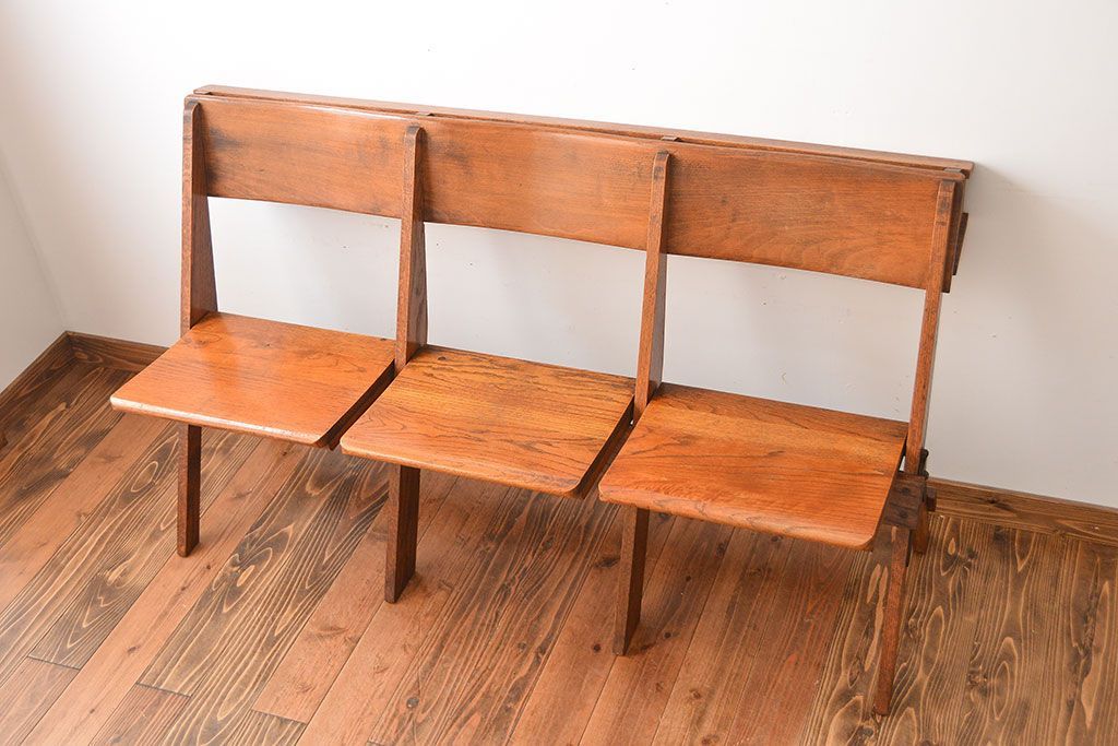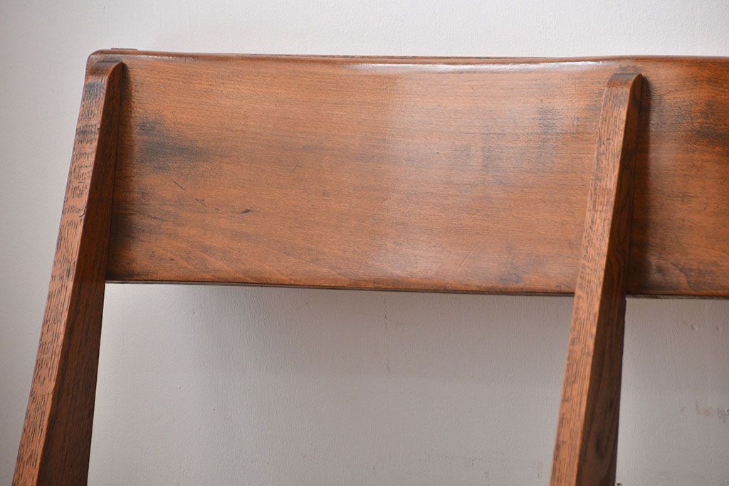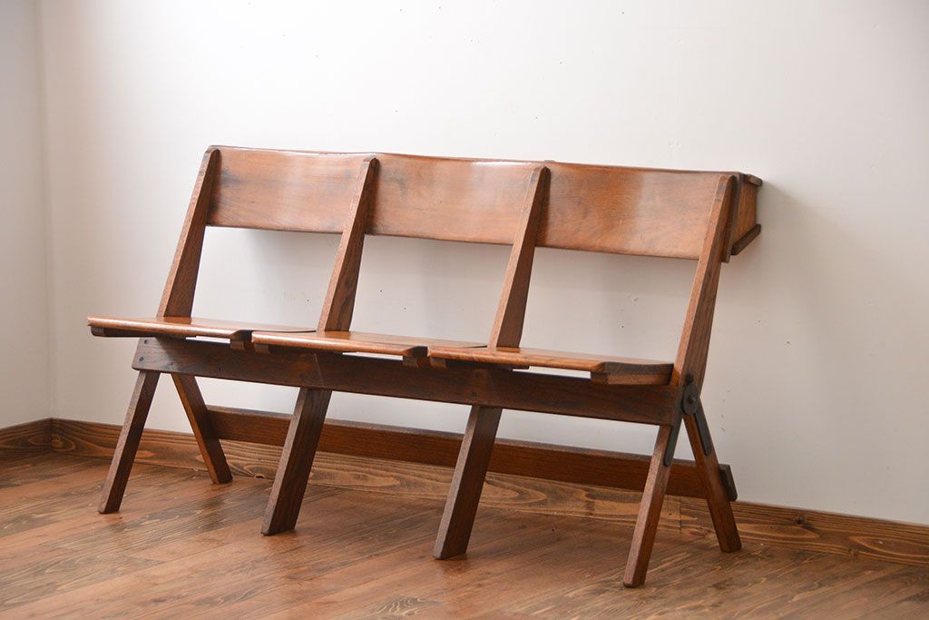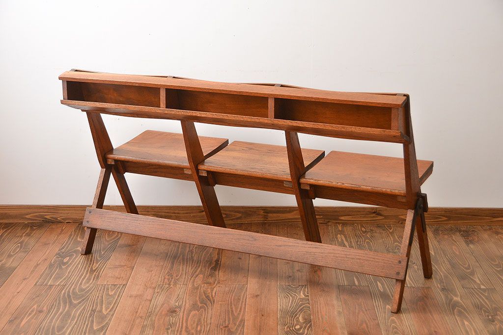 アンティーク家具 イギリスアンティーク オーク材の折り畳み式3人掛けチャーチベンチ(2)