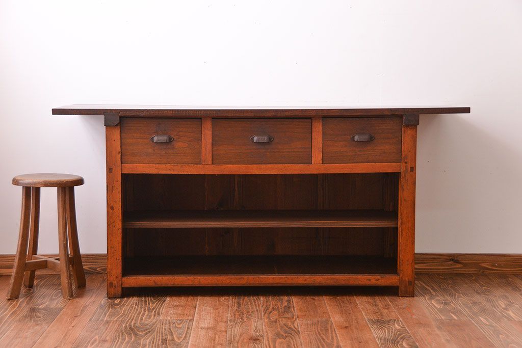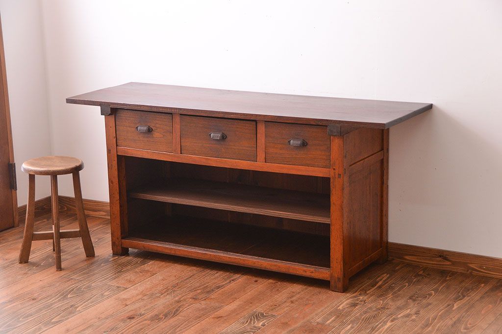 アンティーク家具 古民具・骨董 栗材天板の古い作業台(カウンター)