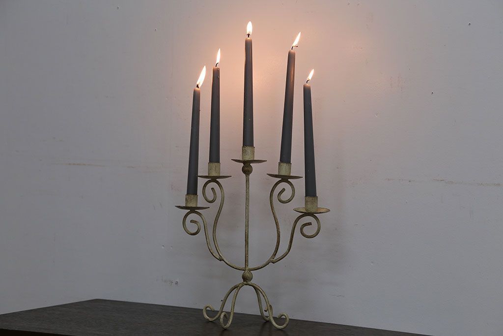 アンティーク雑貨 イギリスアンティーク シャビーでおしゃれなアイアンキャンドルスタンド