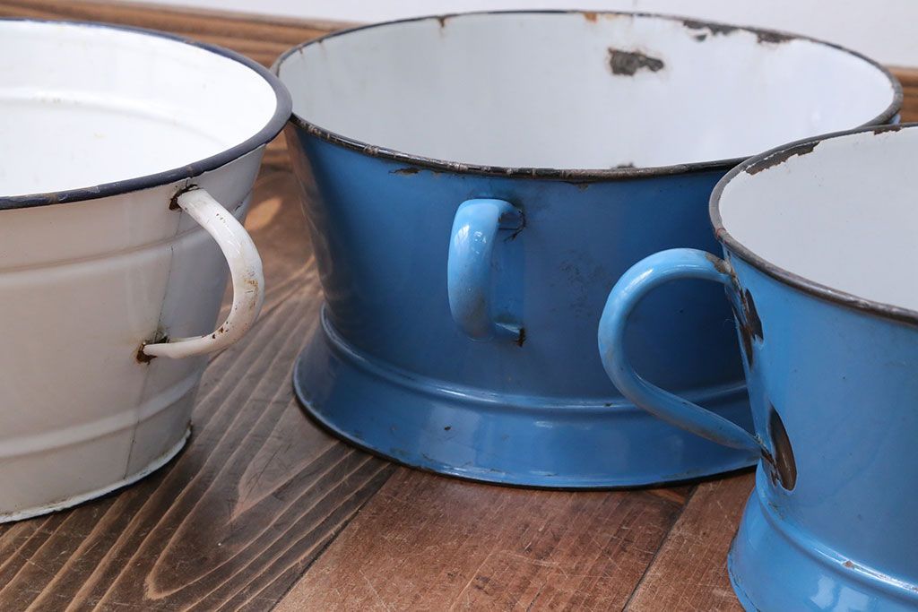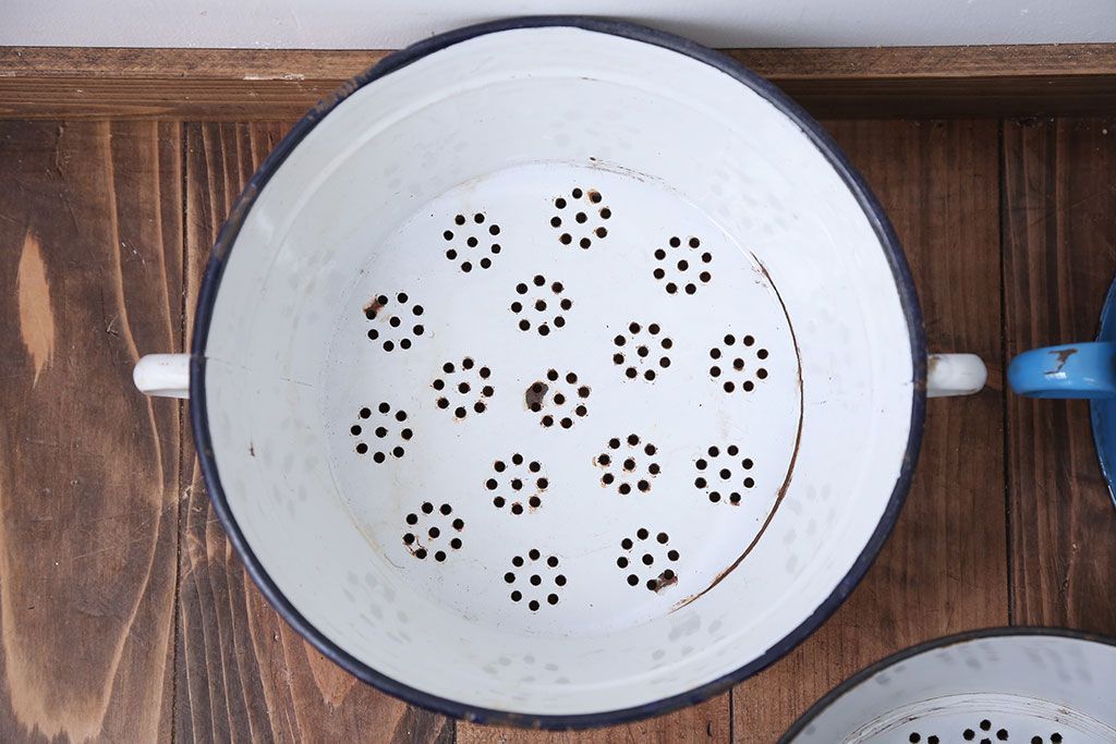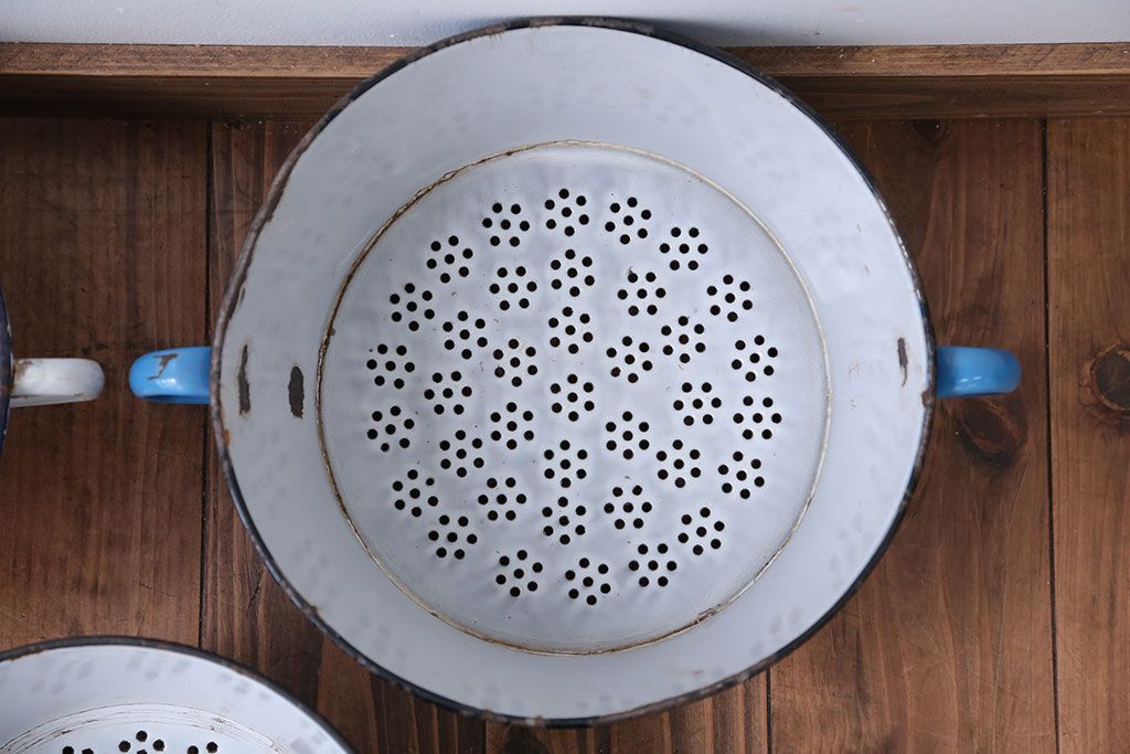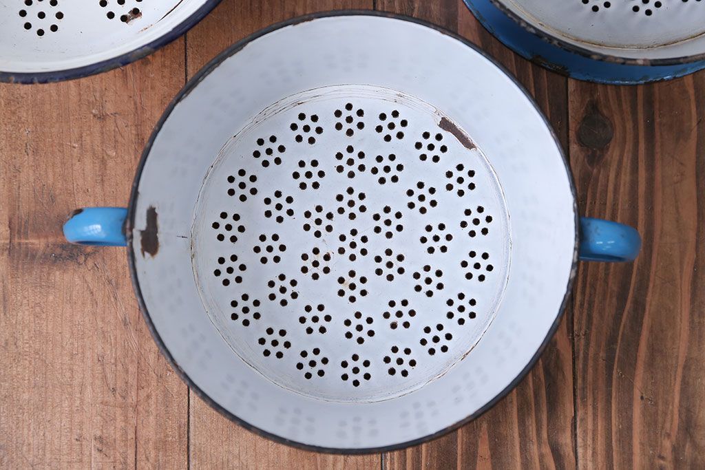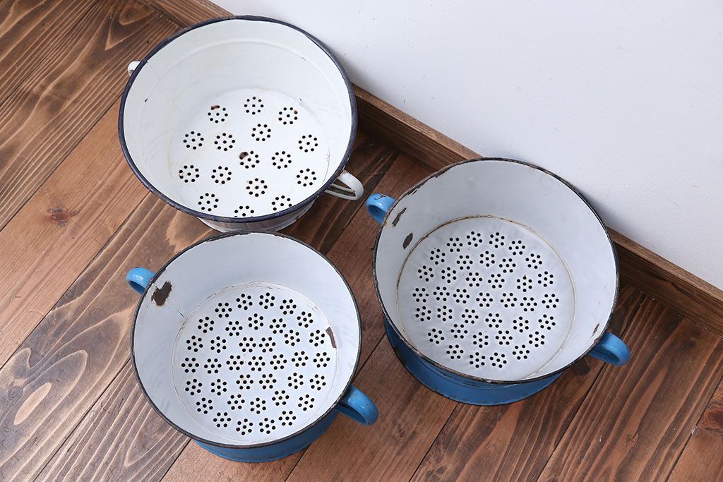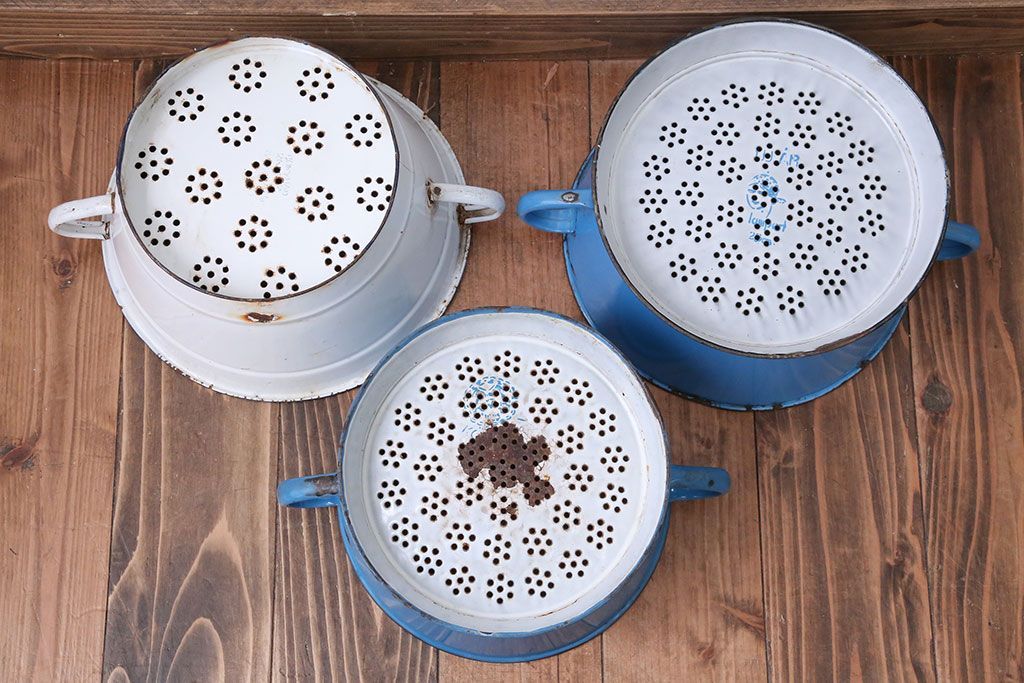 アンティーク雑貨 イギリスビンテージ ホーローのコランダー(ざる)3つセット