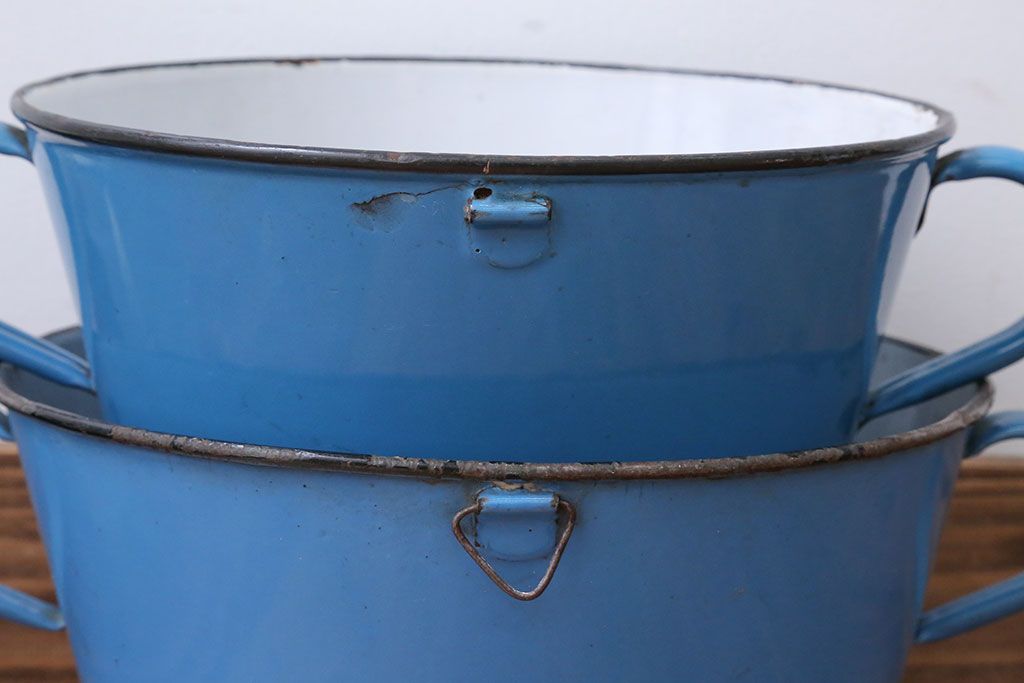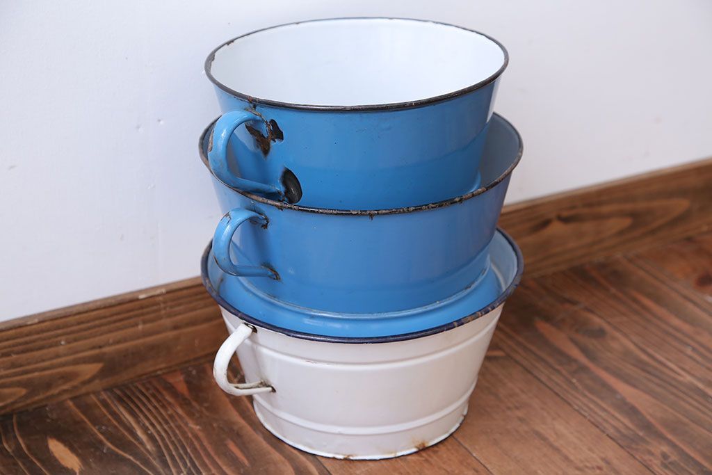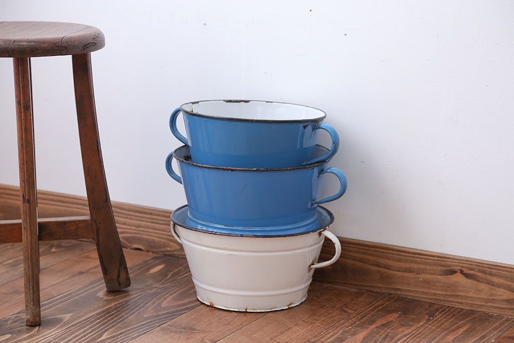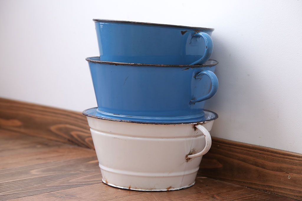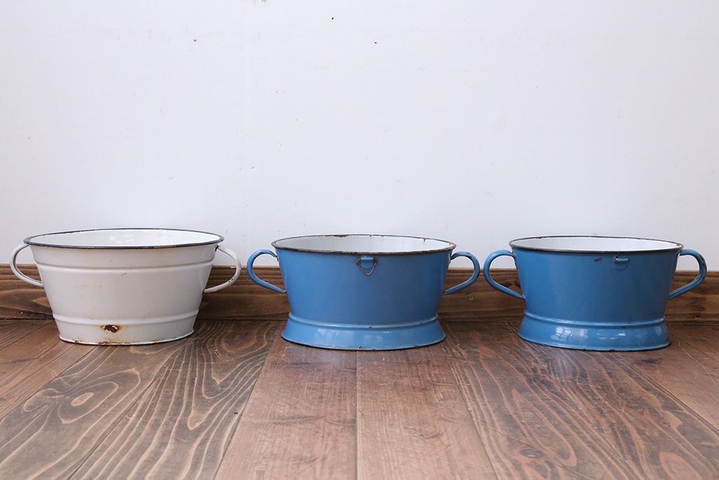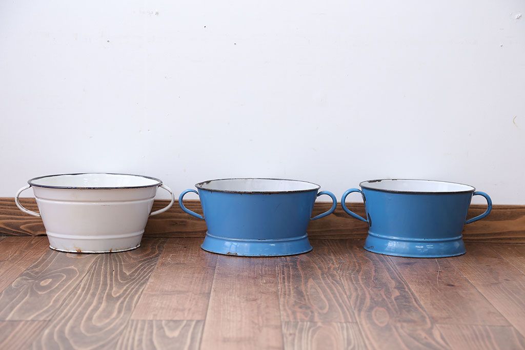 アンティーク雑貨 イギリスビンテージ ホーローのコランダー(ざる)3つセット