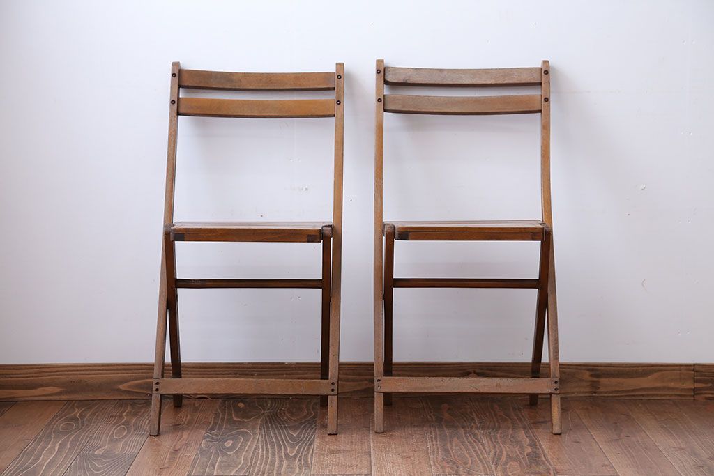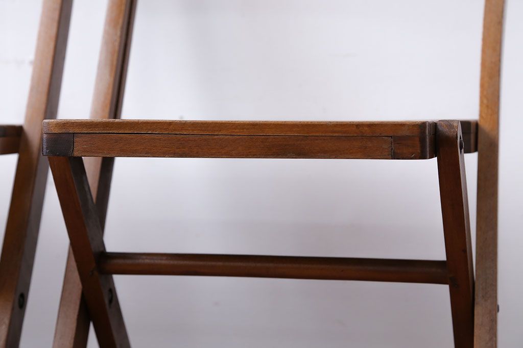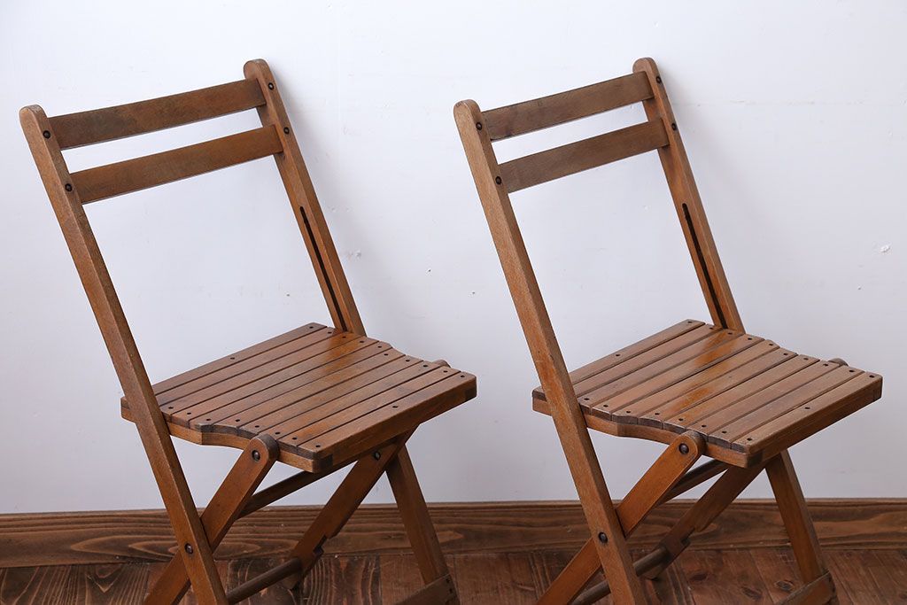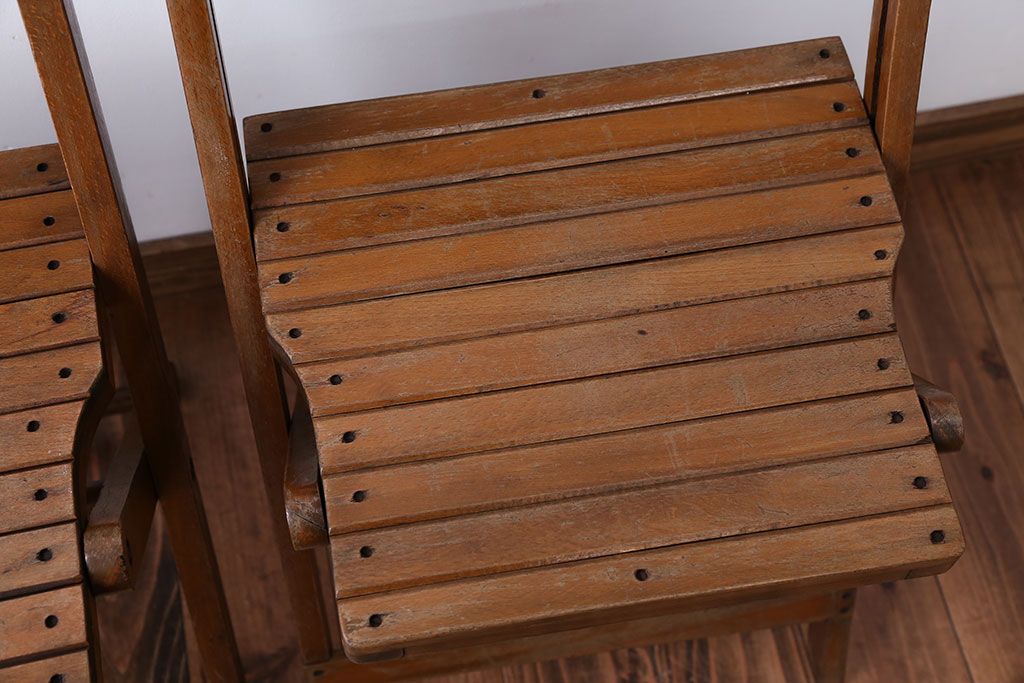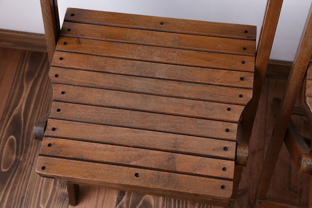 アンティーク家具 イギリスアンティーク 古い木製のフォールディングチェア2脚セット(3)