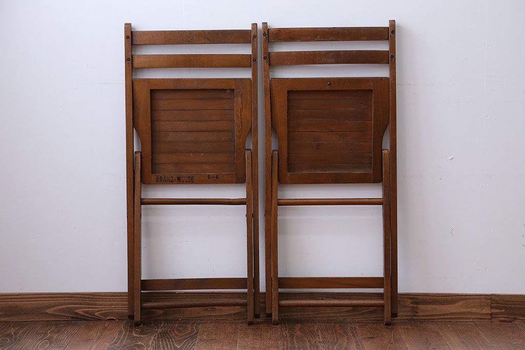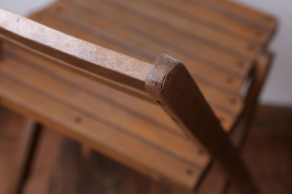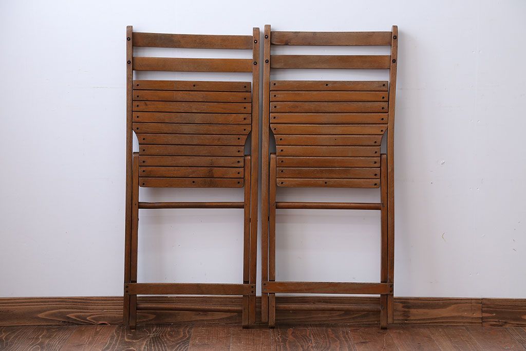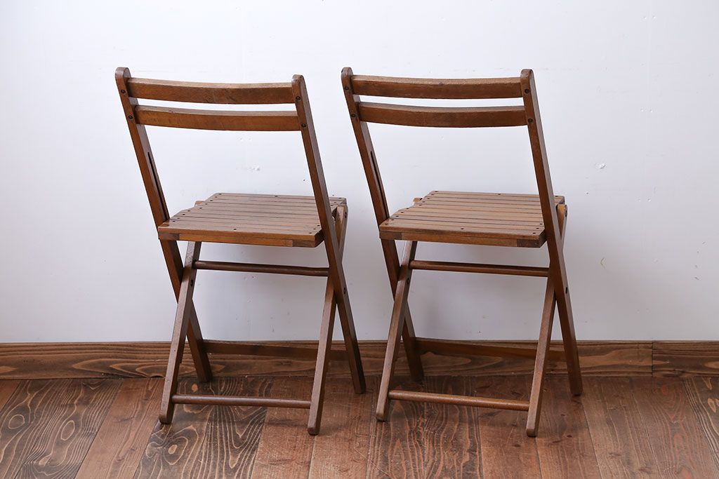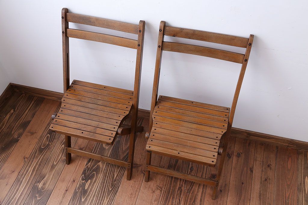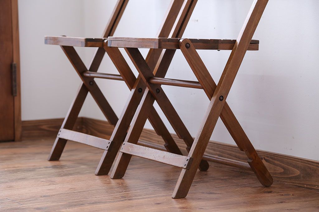 アンティーク家具 イギリスアンティーク 古い木製のフォールディングチェア2脚セット(3)