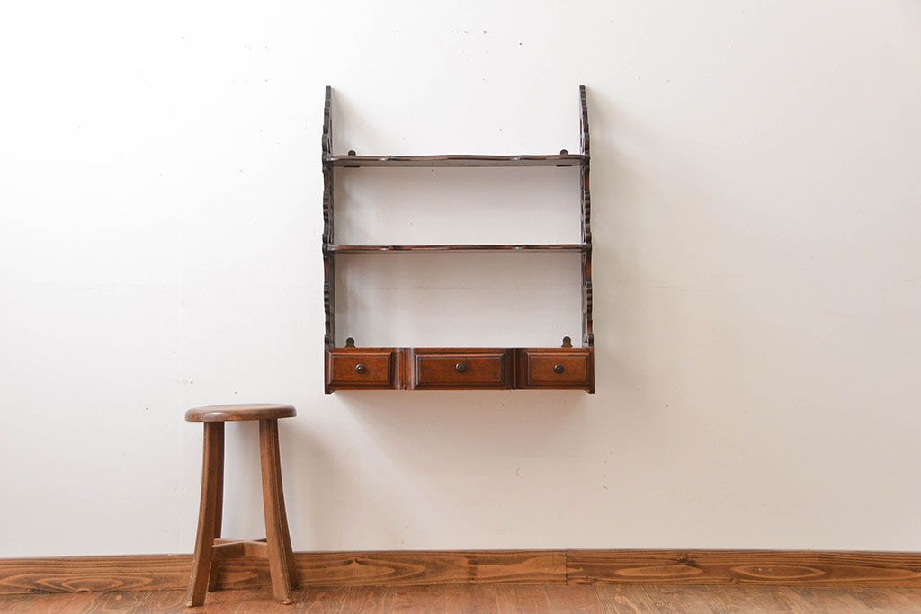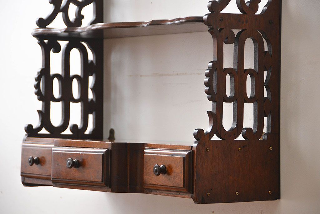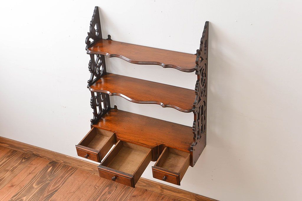 アンティーク家具 イギリスアンティーク 3杯引き出し付きウォールシェルフ