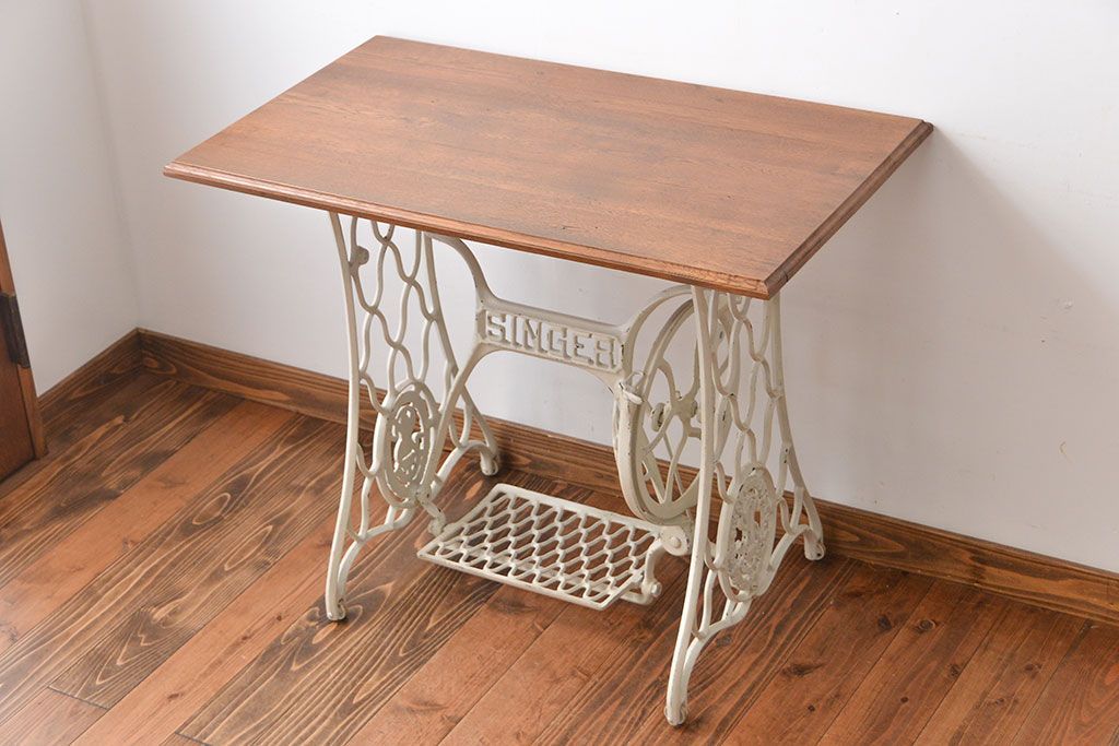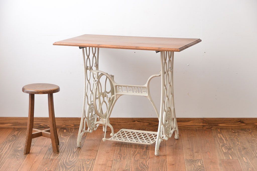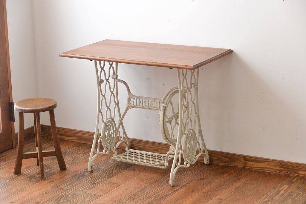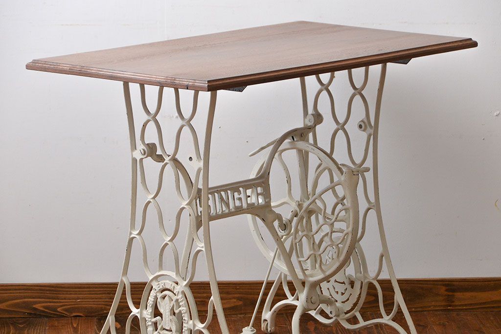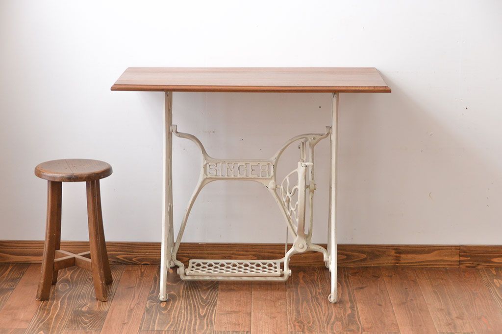 アンティーク家具 イギリスアンティーク 古材天板のシンガーミシンテーブル