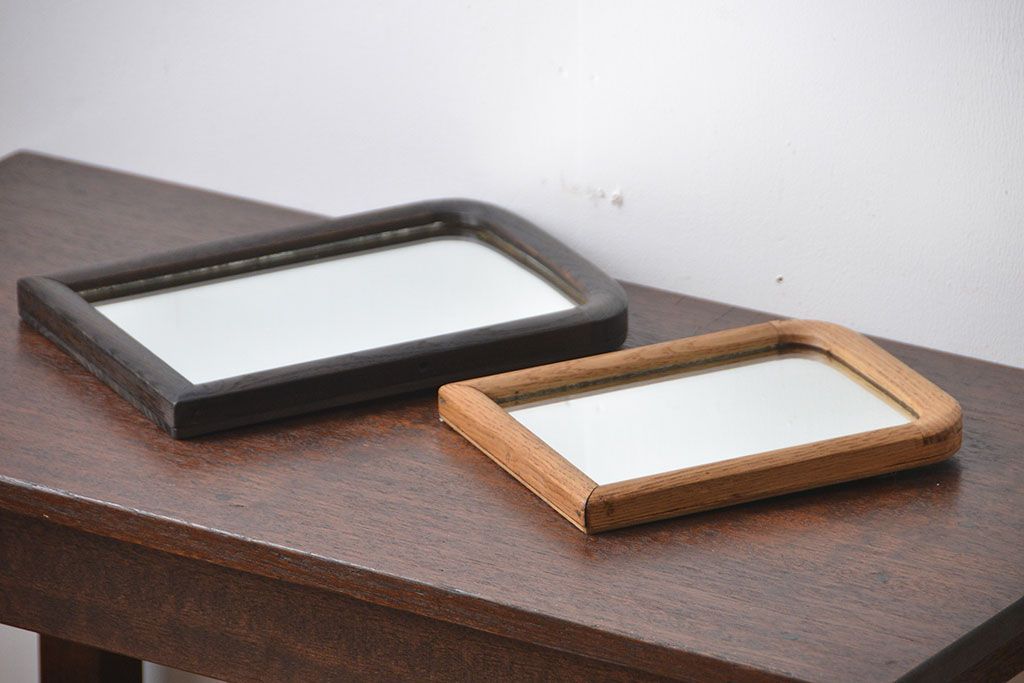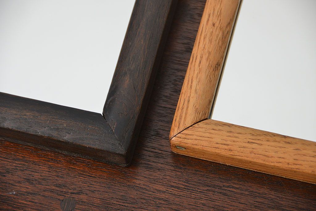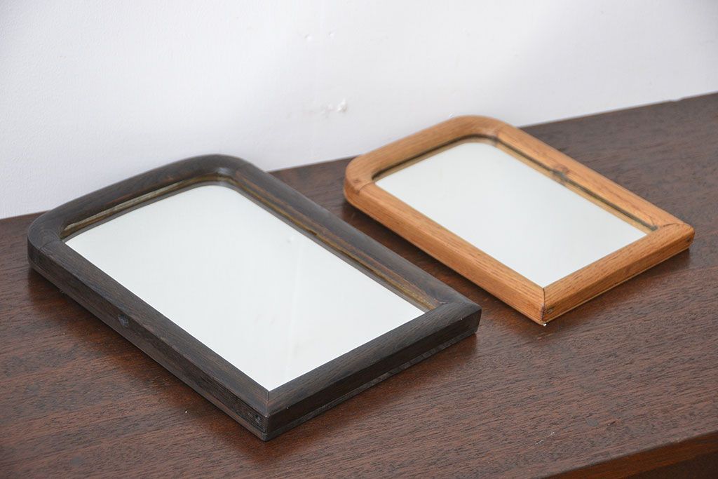 鏡> 壁掛け鏡 > アンティーク雑貨 アンティーク おしゃれな古い木製フレームの壁掛け鏡大小2個セット