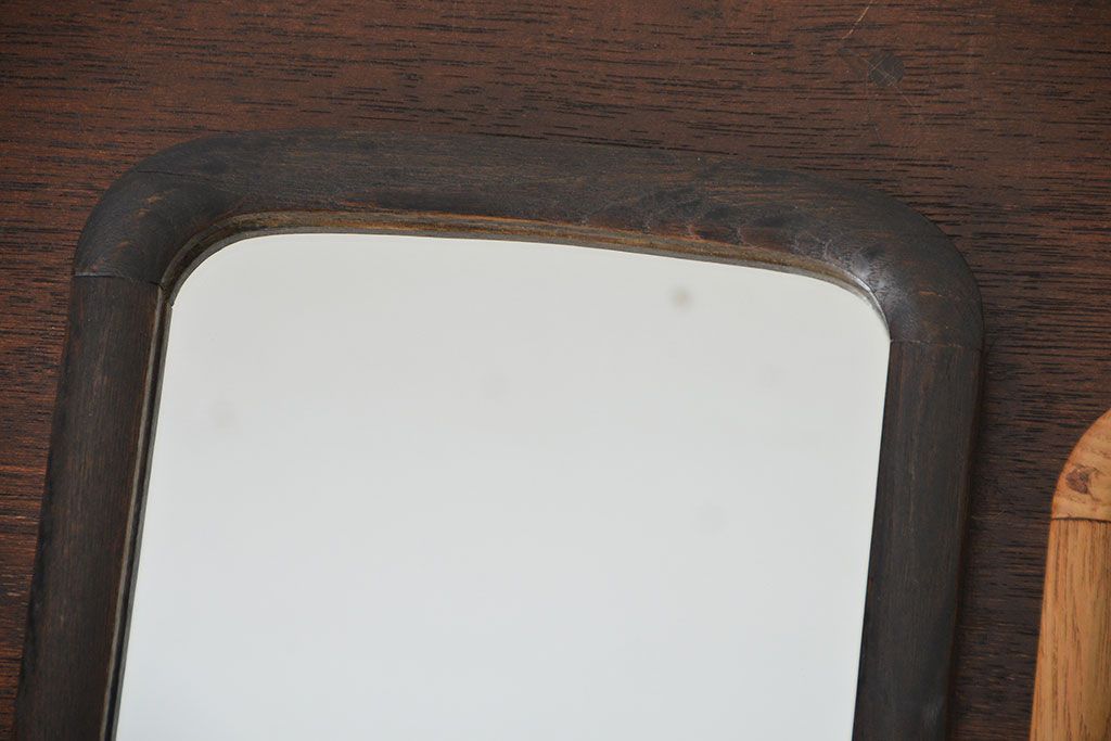 アンティーク雑貨 アンティーク おしゃれな古い木製フレームの壁掛け鏡大小2個セット