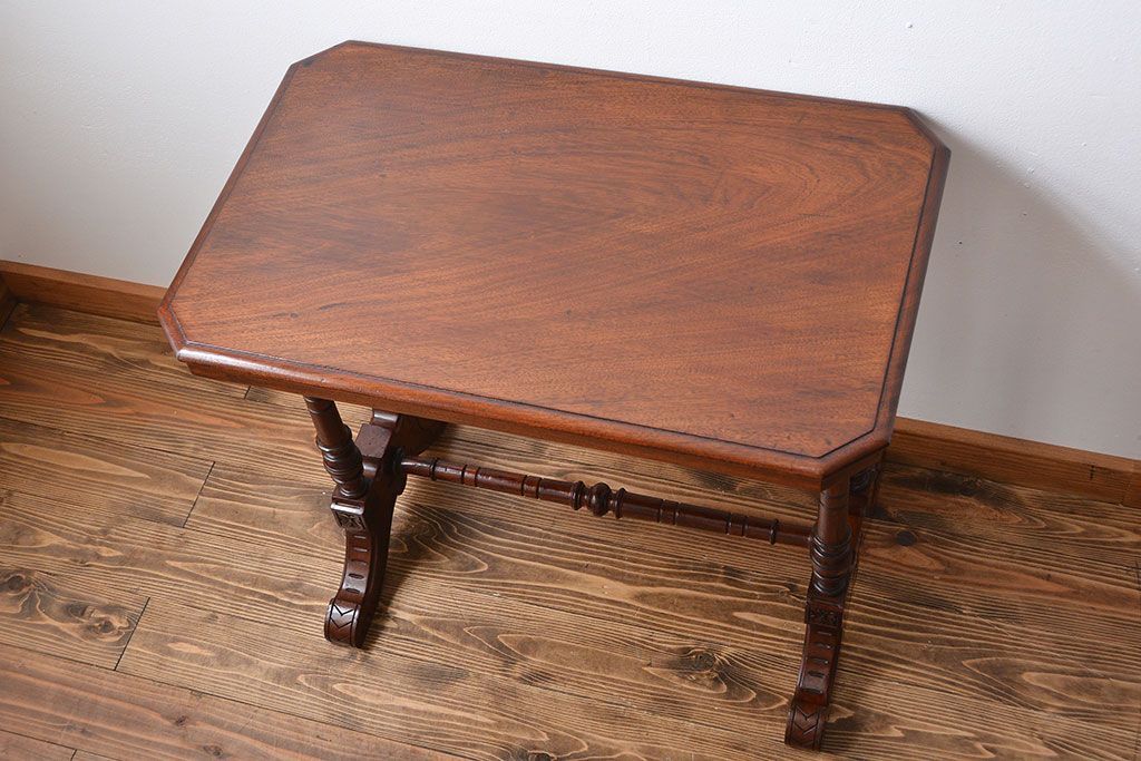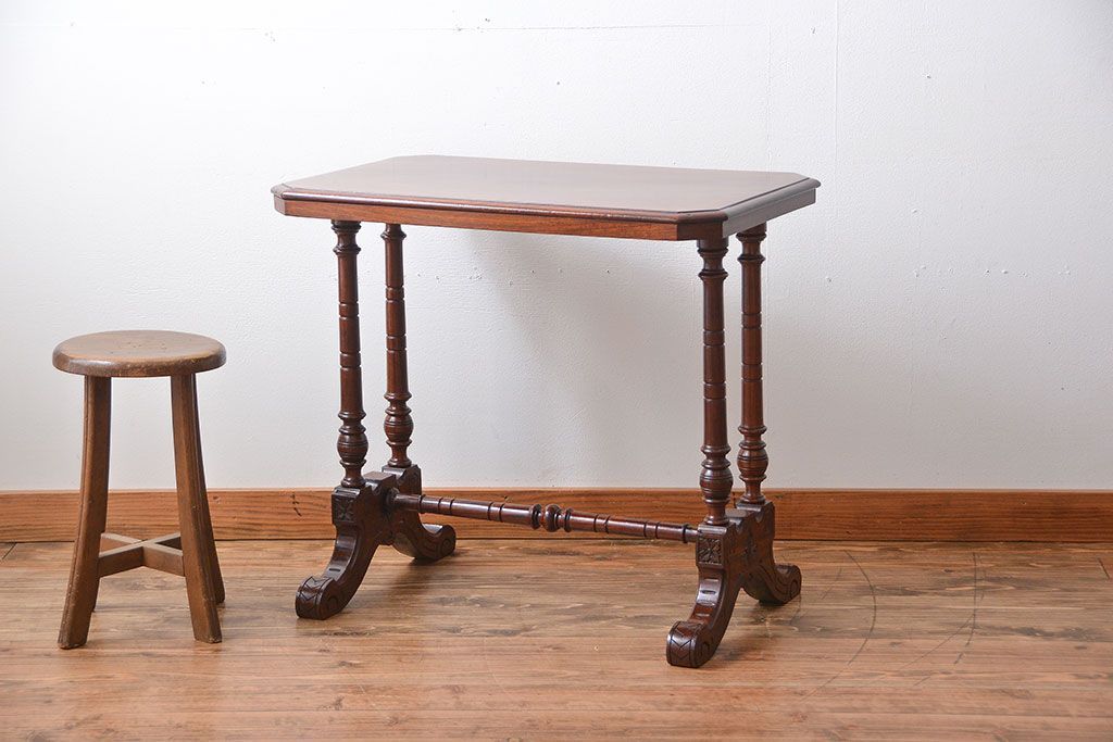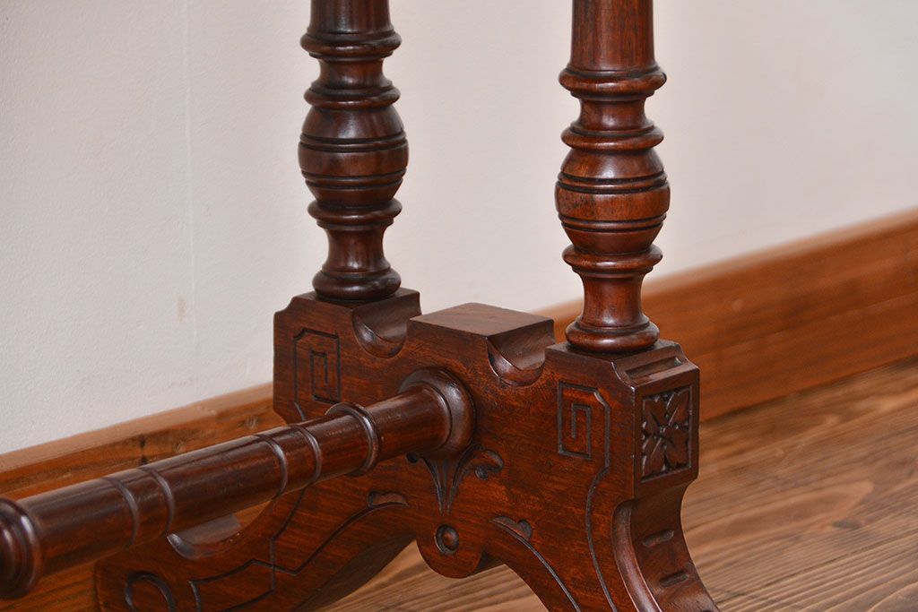アンティーク家具 イギリスアンティーク 彫刻が美しいウォールナット材のサイドテーブル