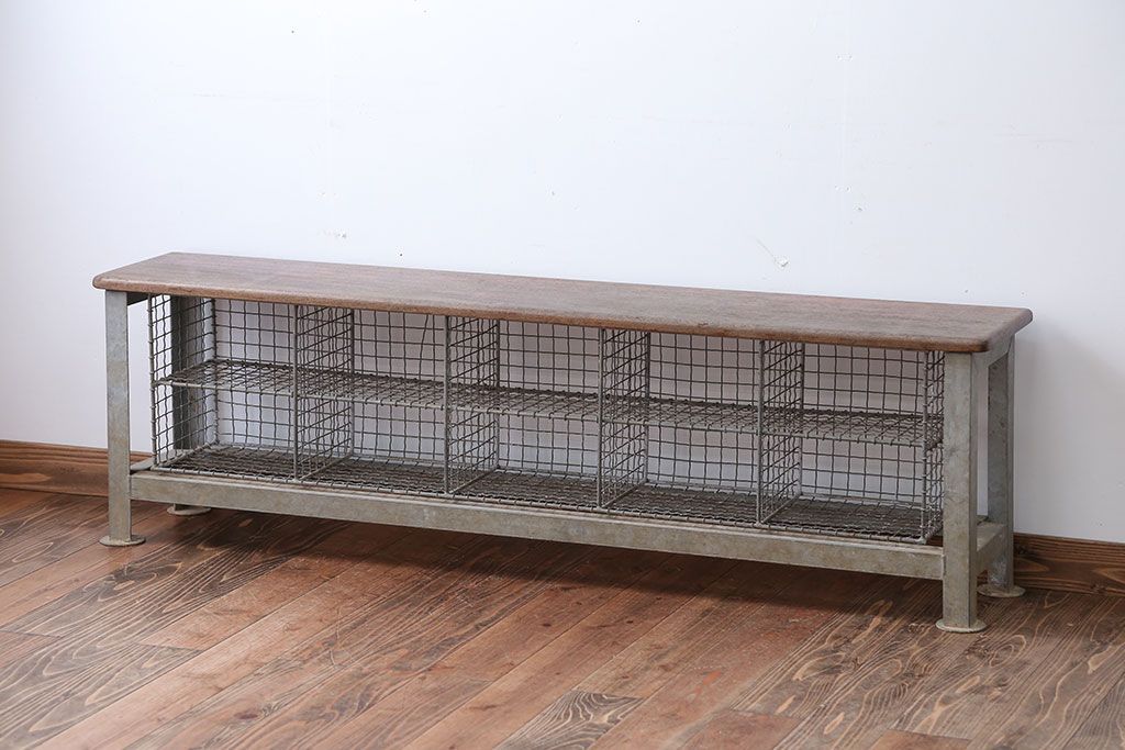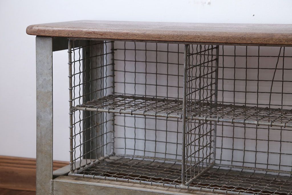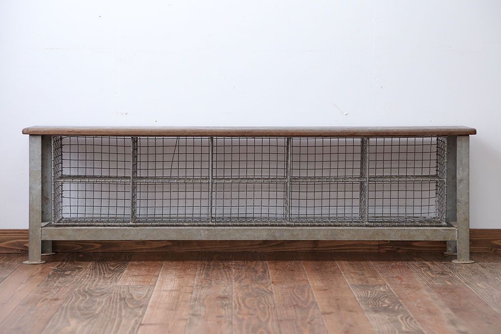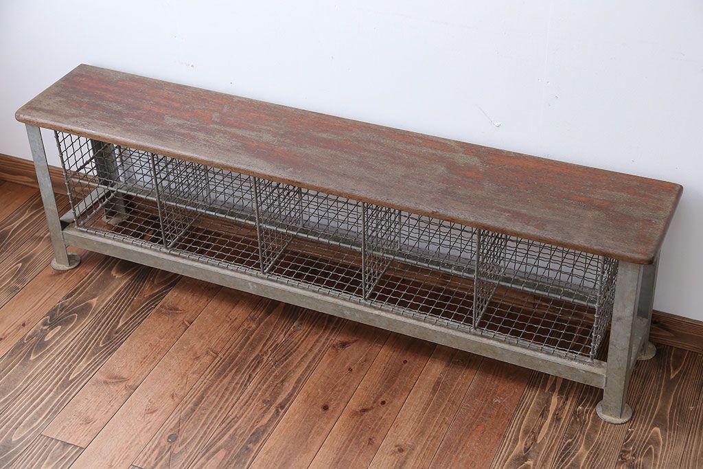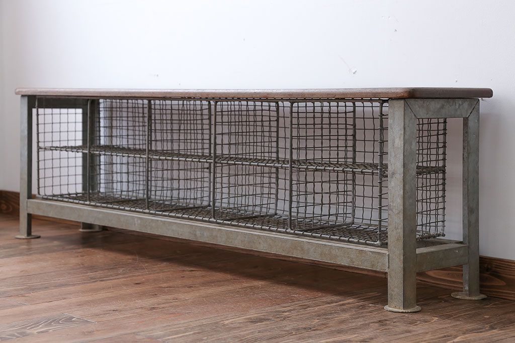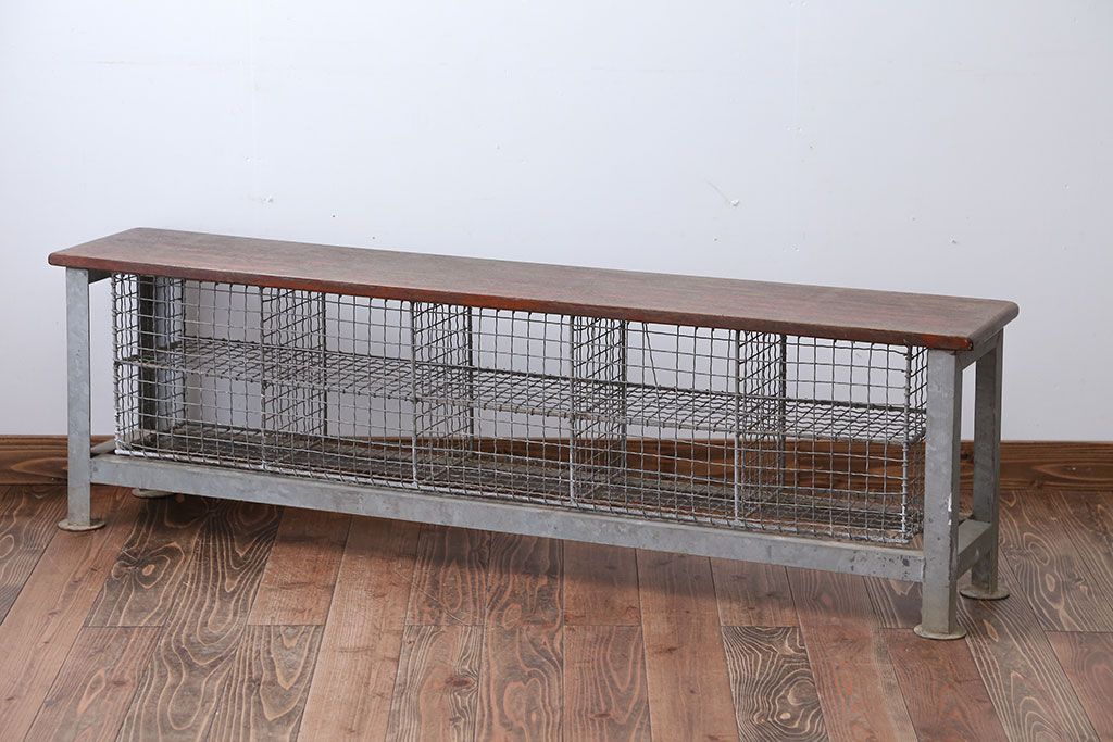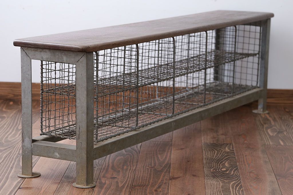ヴィンテージ家具 イギリスビンテージ 収納籠付き!おしゃれな鉄脚ベンチ(1)