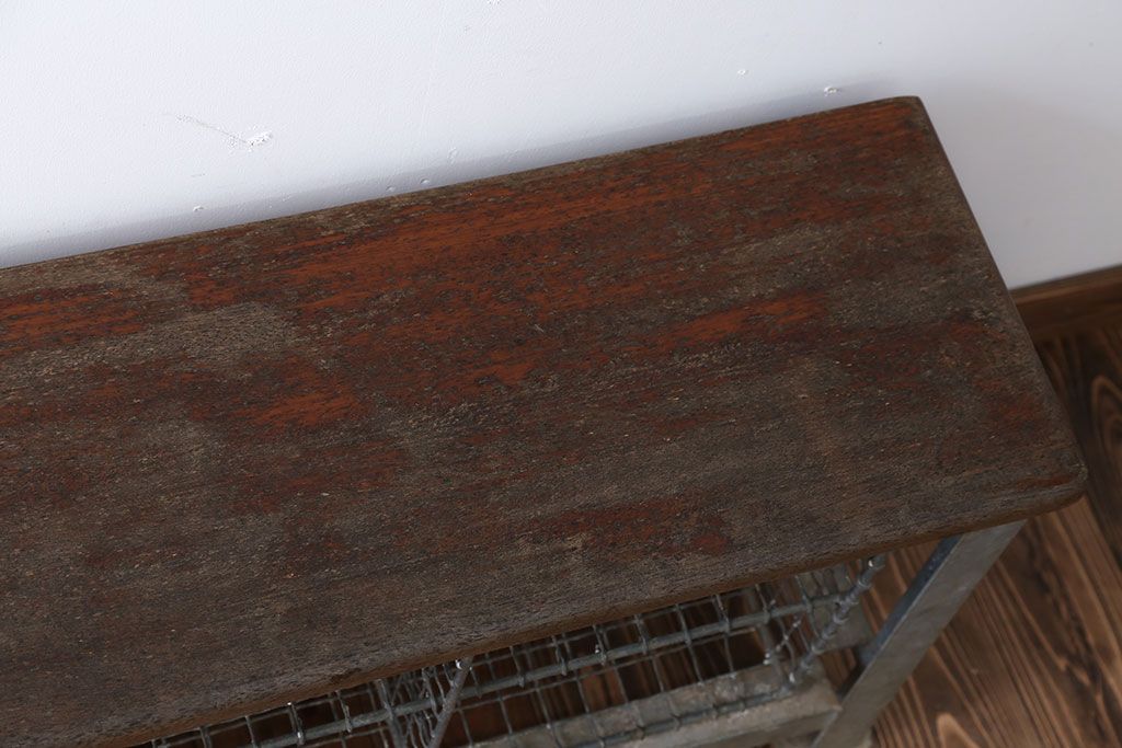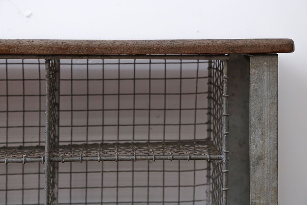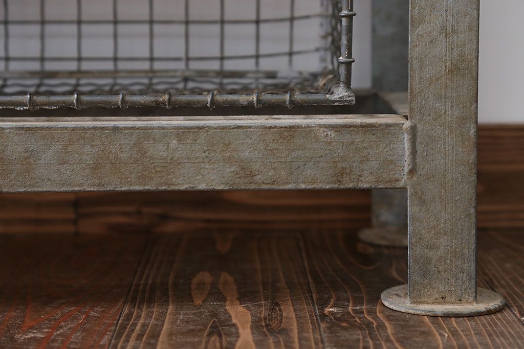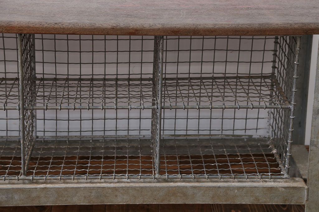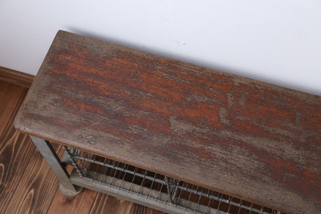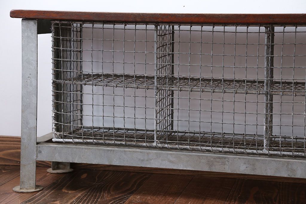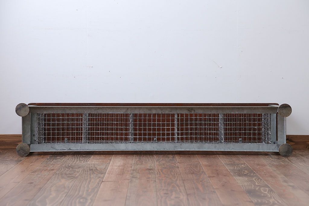 ヴィンテージ家具 イギリスビンテージ 収納籠付き!おしゃれな鉄脚ベンチ(1)