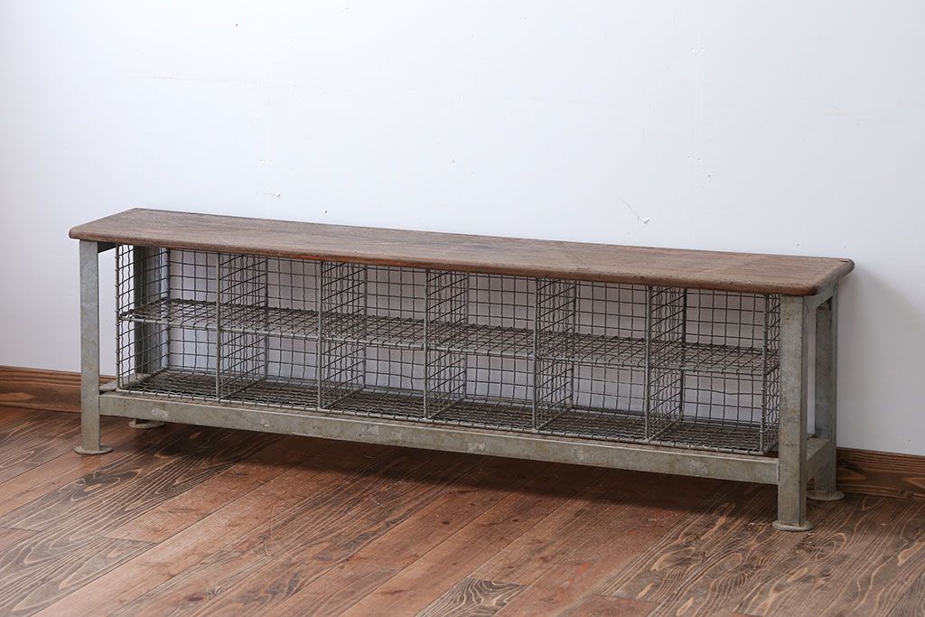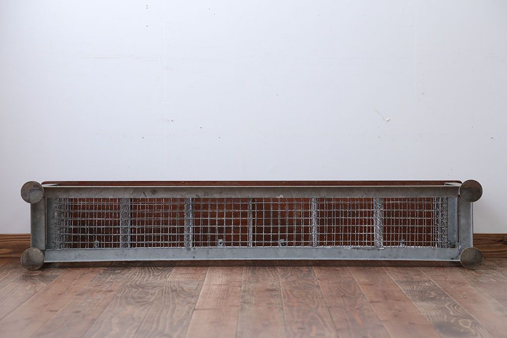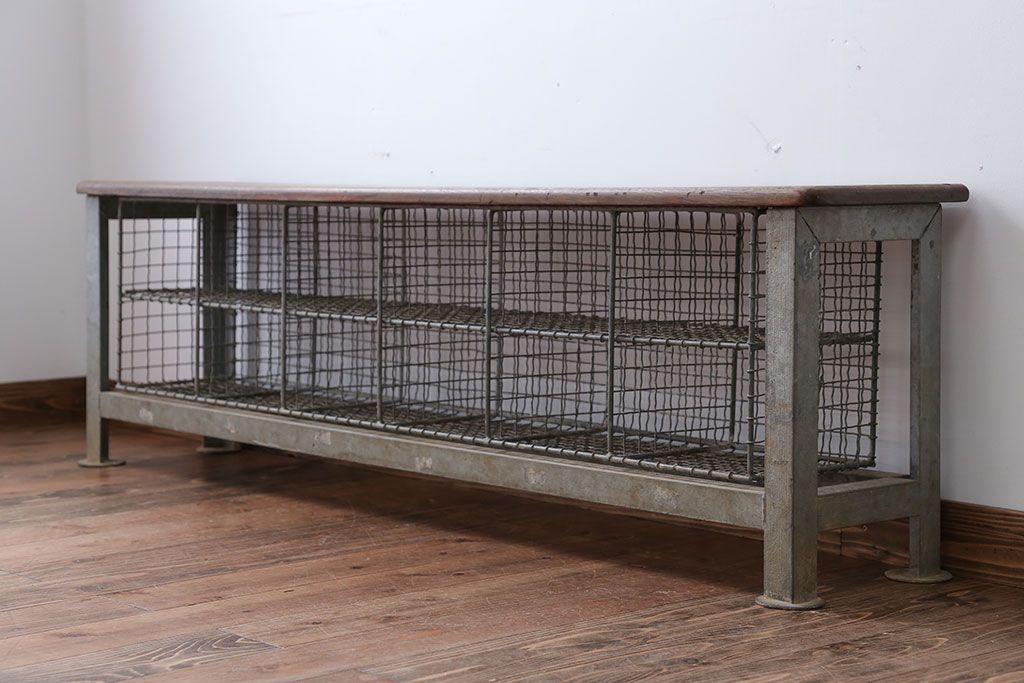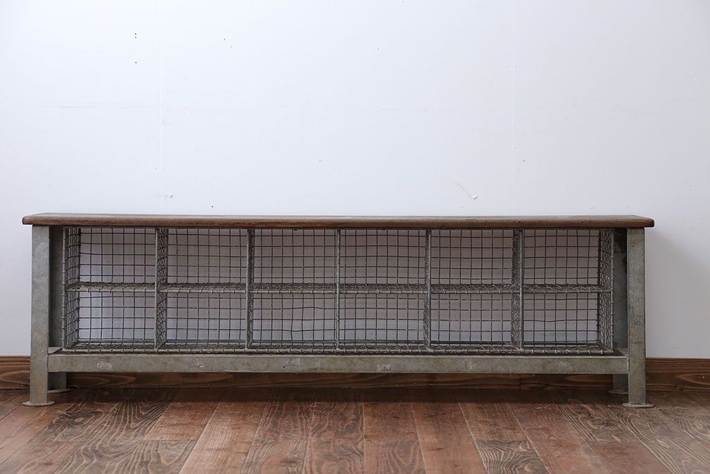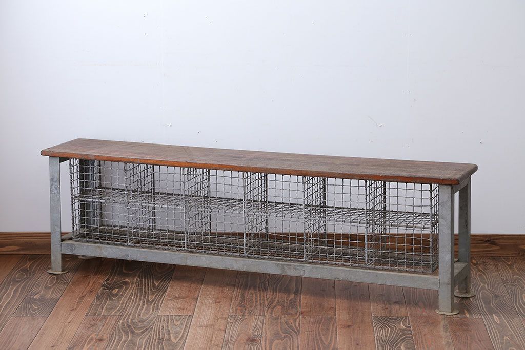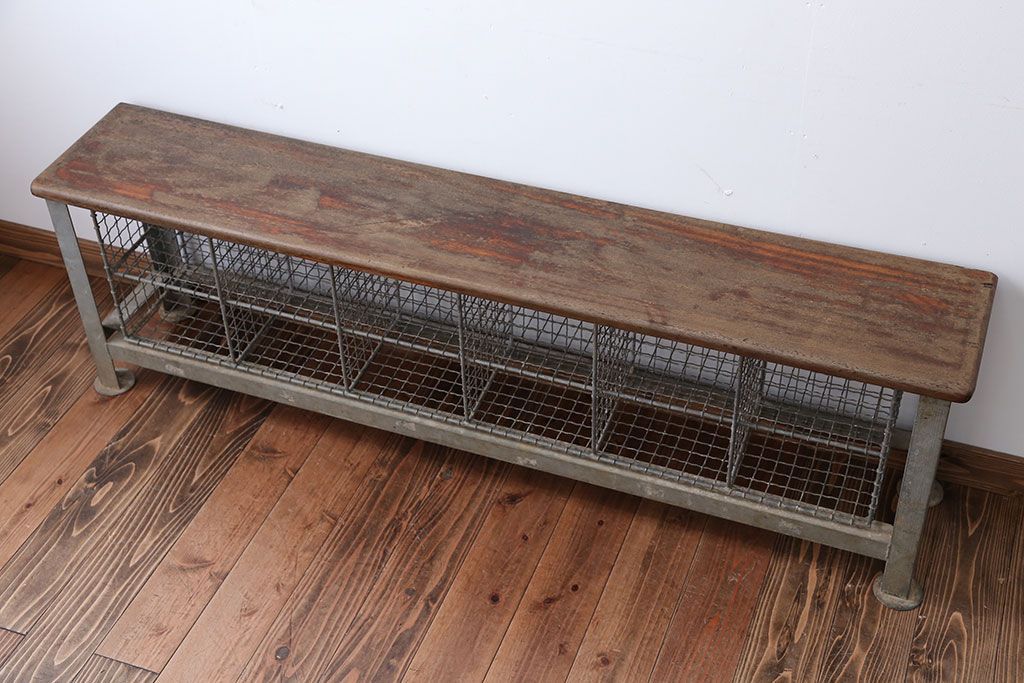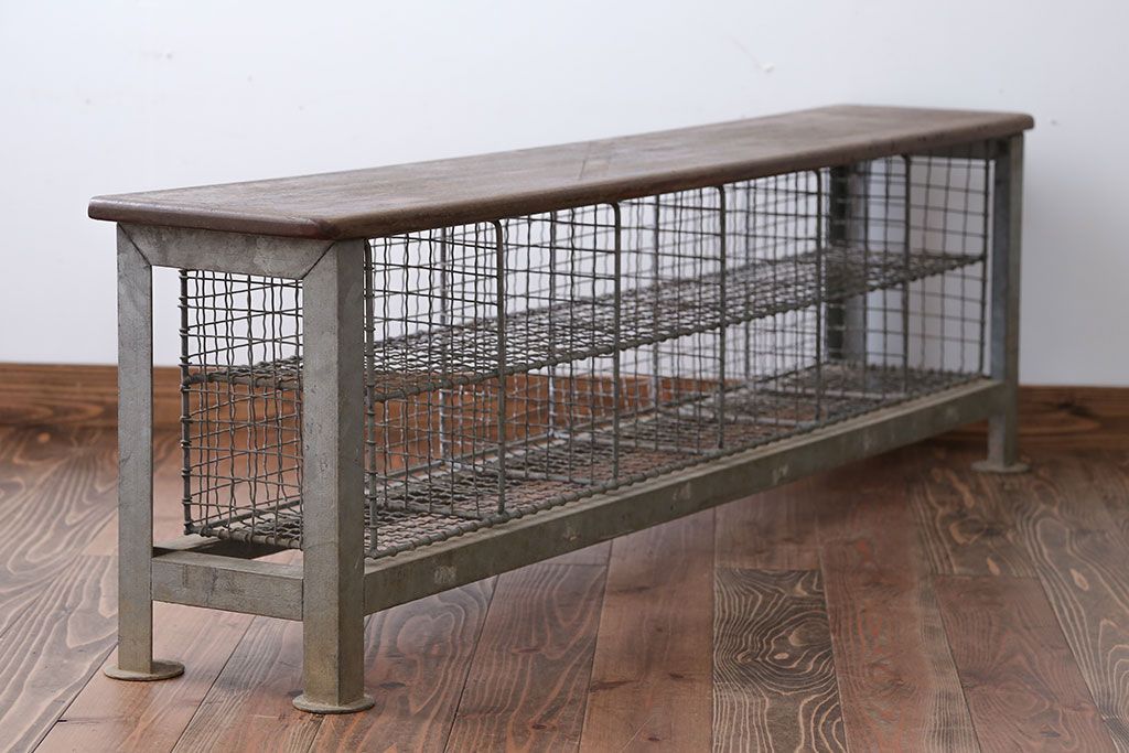 ヴィンテージ家具 イギリスビンテージ 収納籠付き!おしゃれな鉄脚ベンチ(2)