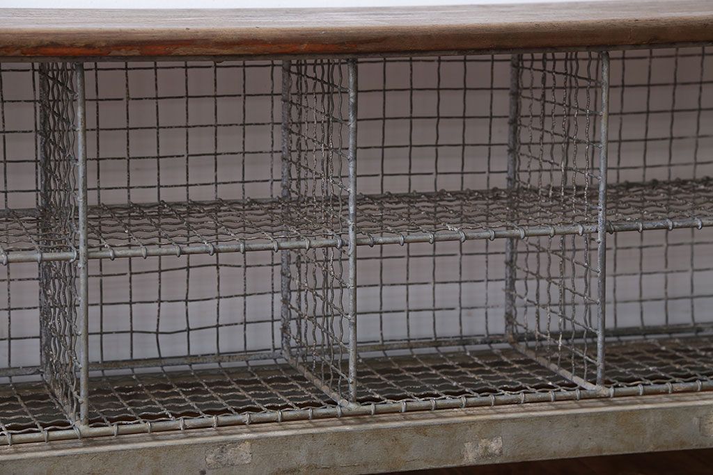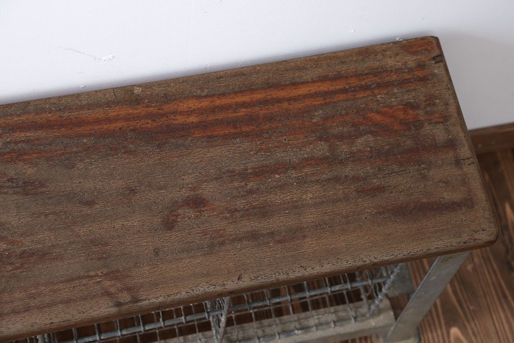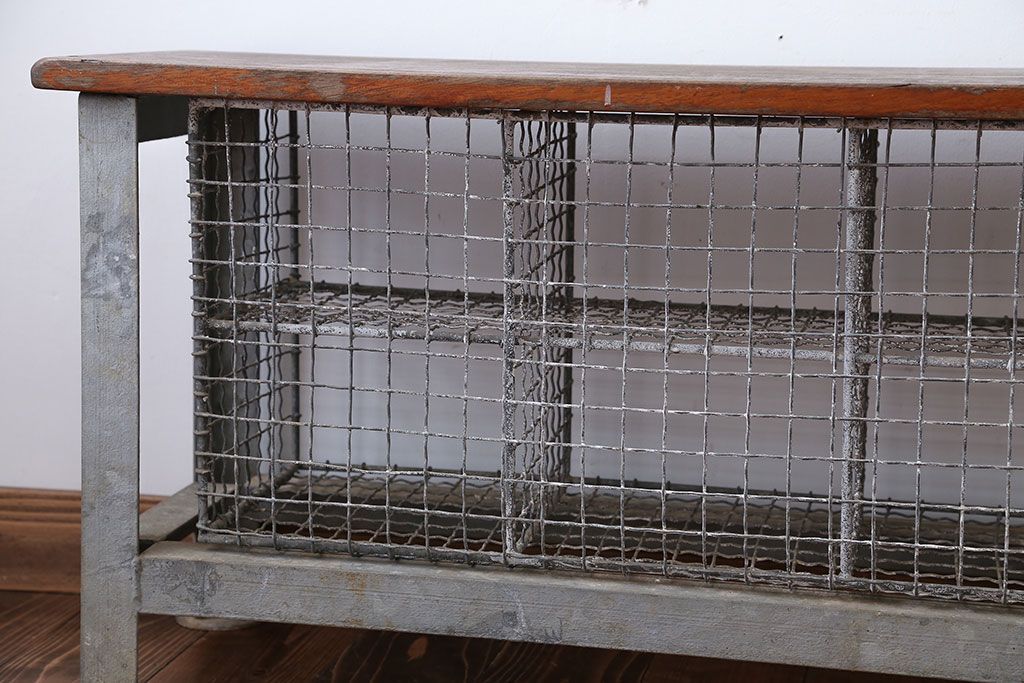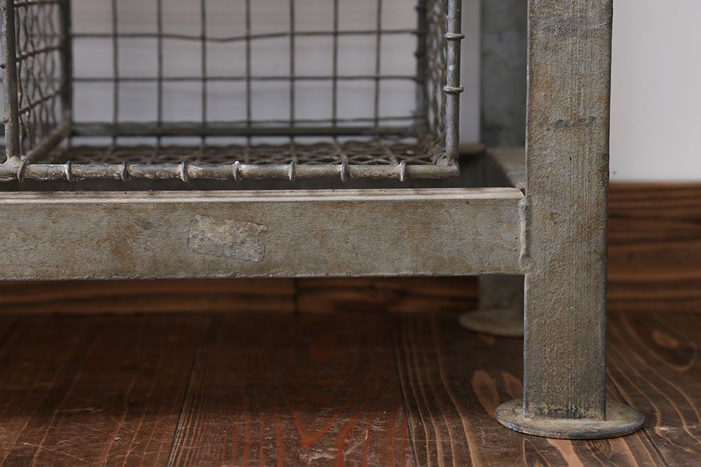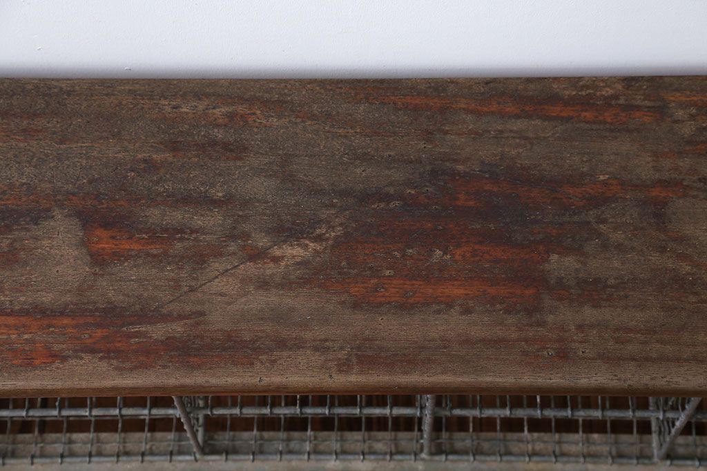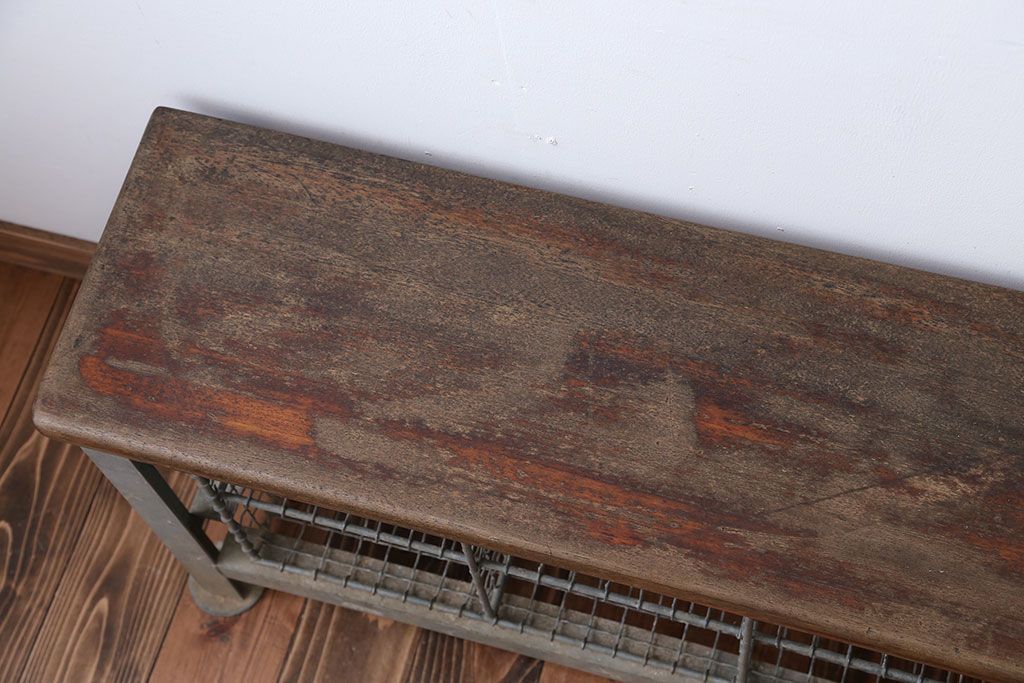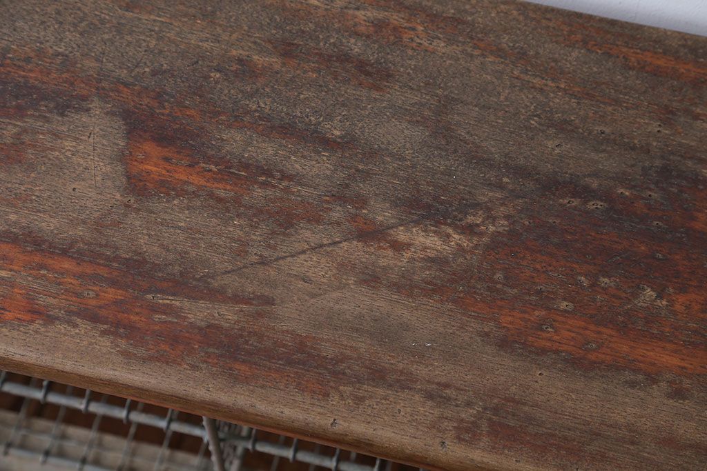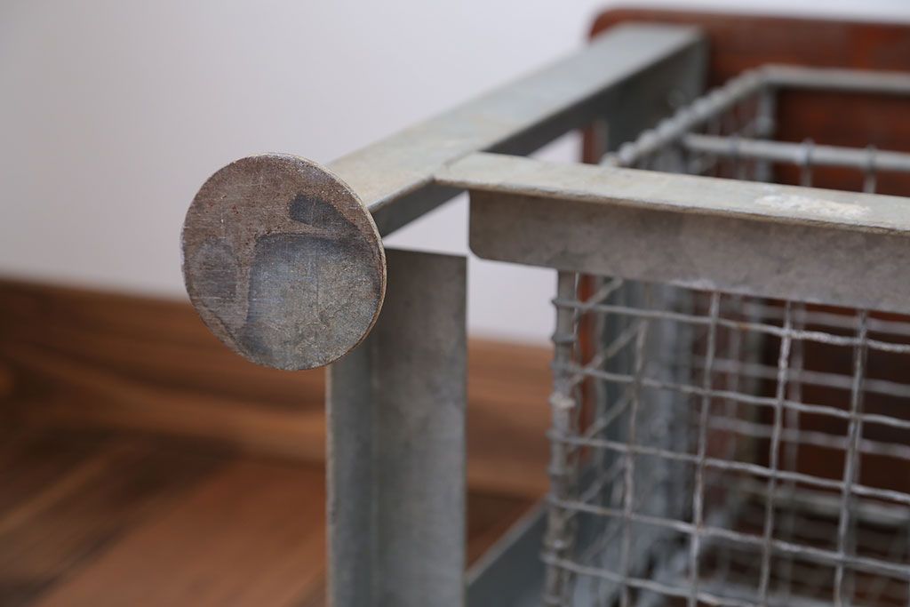 ヴィンテージ家具 イギリスビンテージ 収納籠付き!おしゃれな鉄脚ベンチ(2)