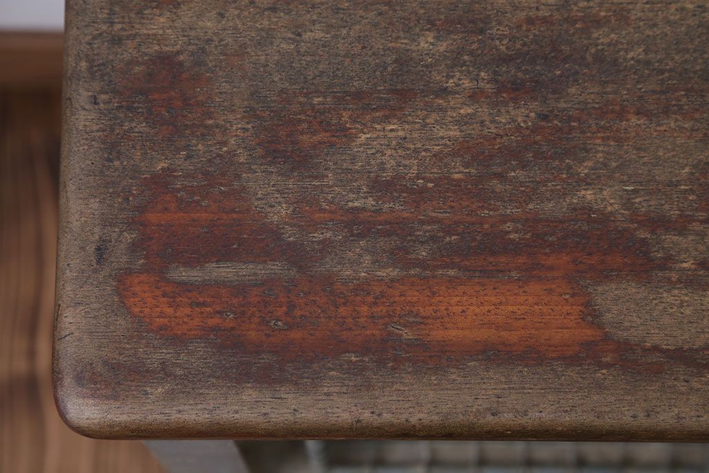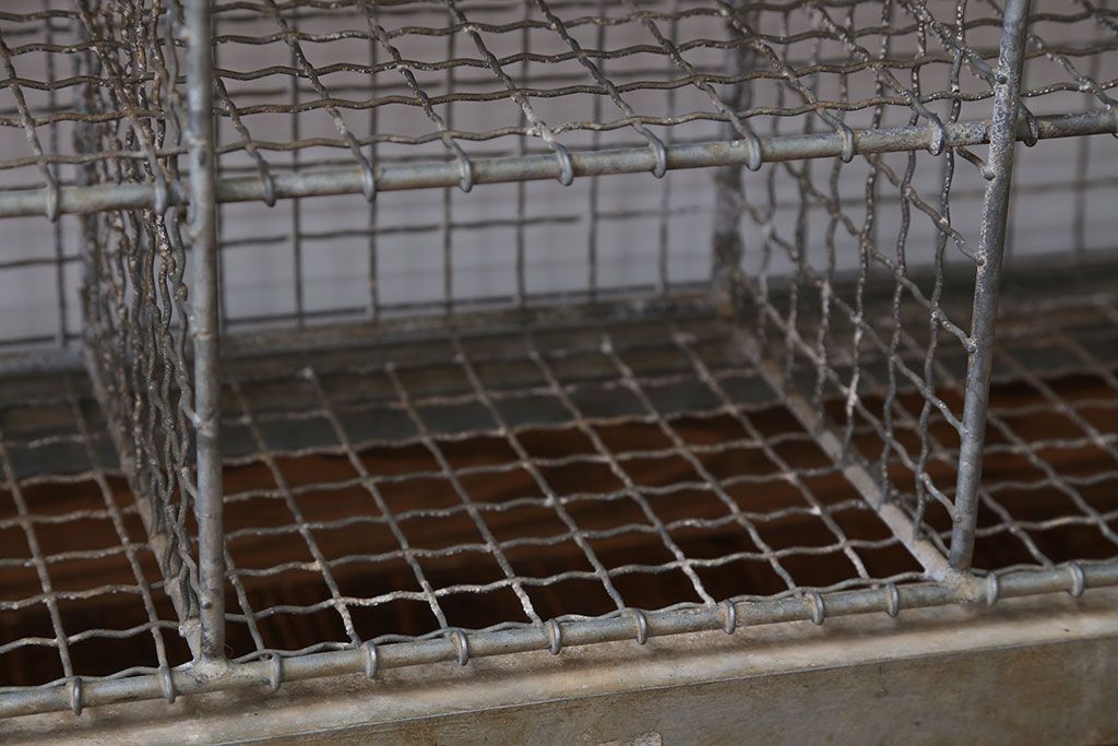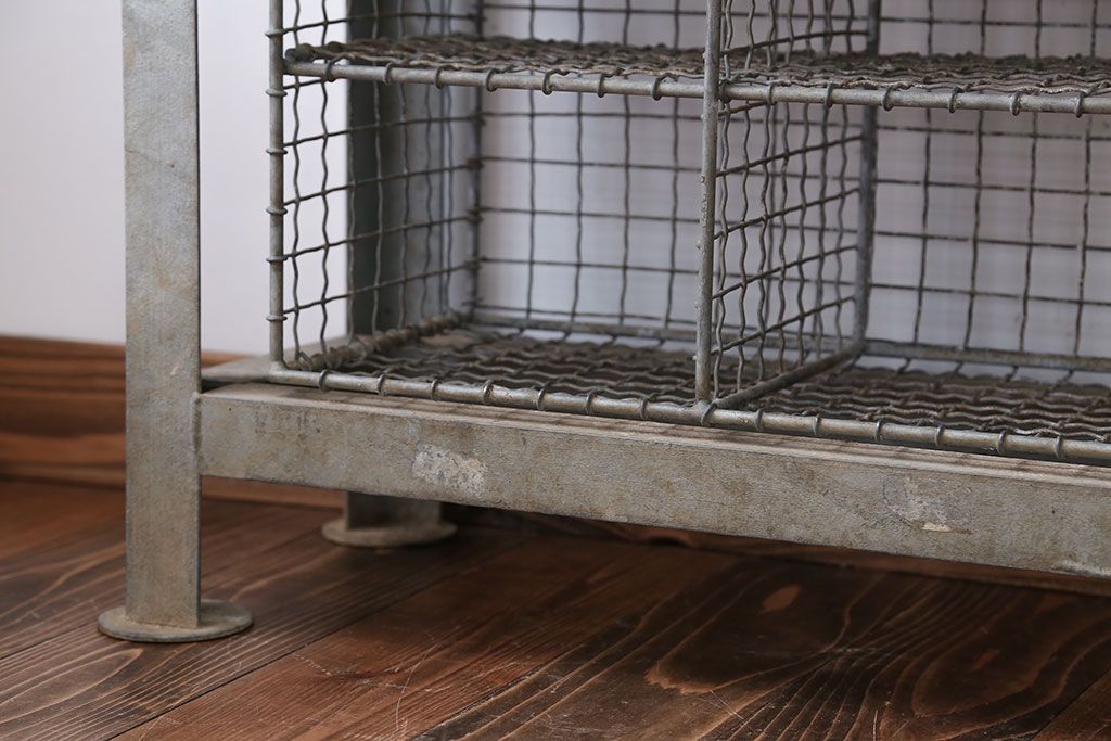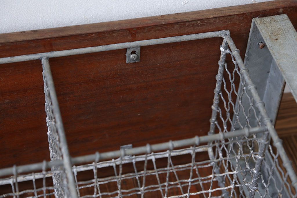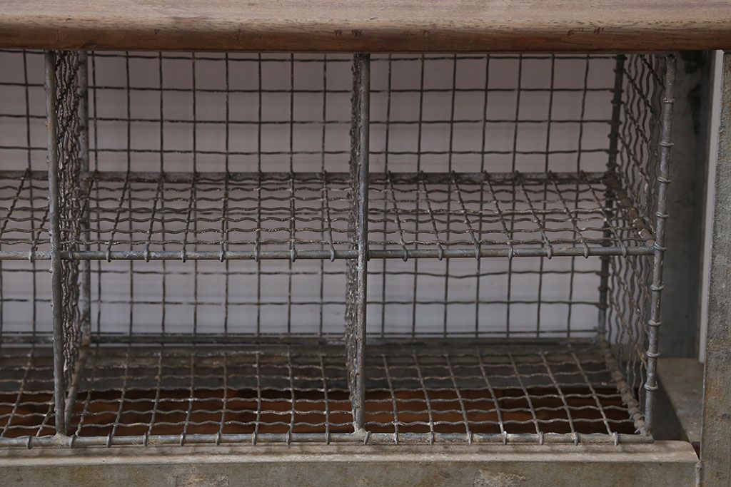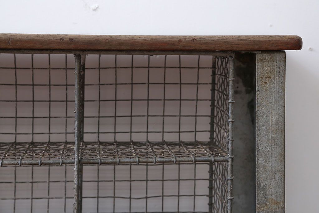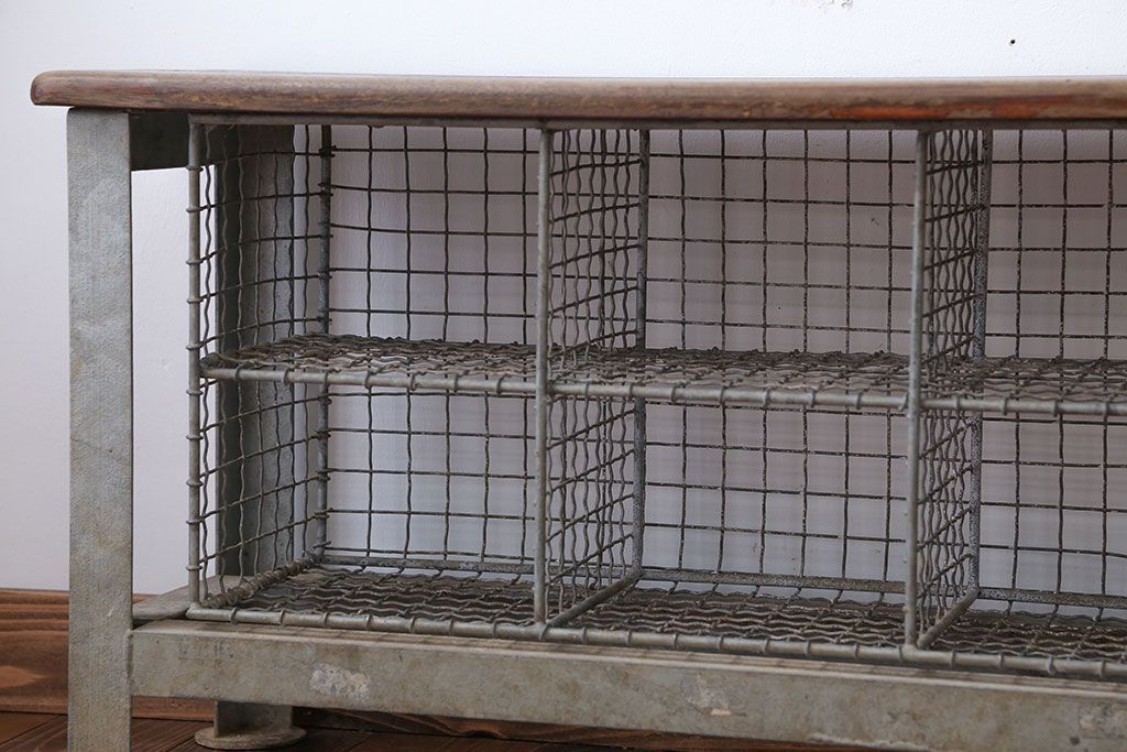 ヴィンテージ家具 イギリスビンテージ 収納籠付き!おしゃれな鉄脚ベンチ(2)