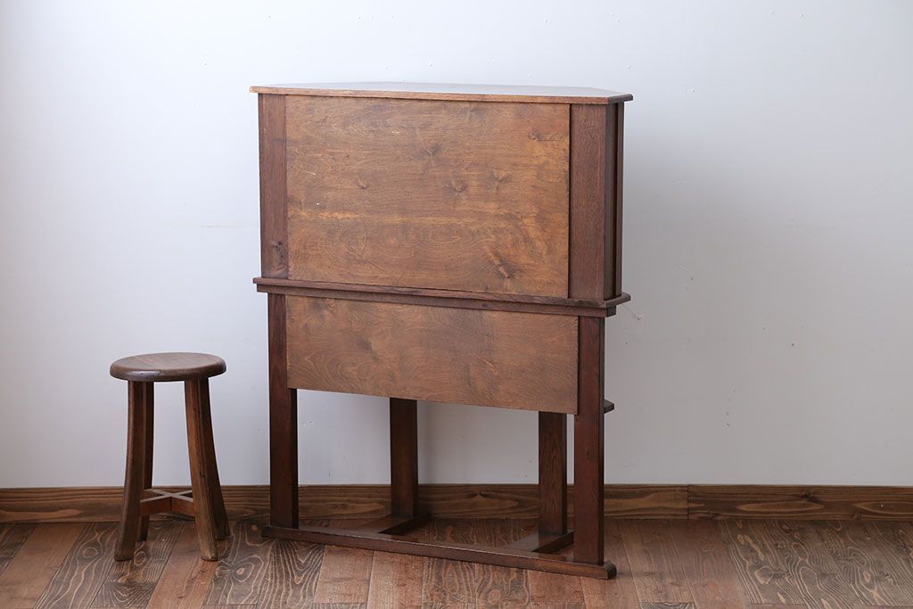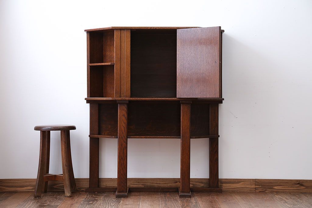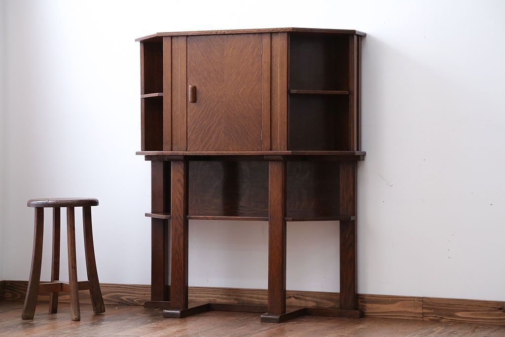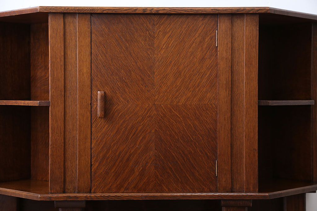 アンティーク家具 イギリスアンティーク オーク材のヘキサゴンキャビネット