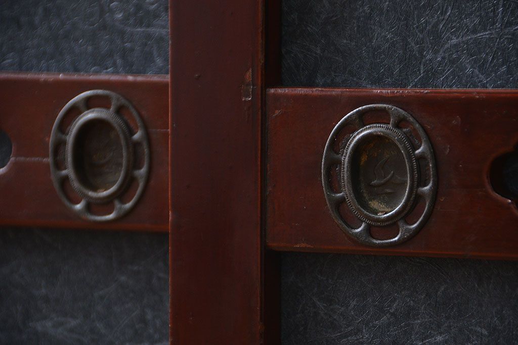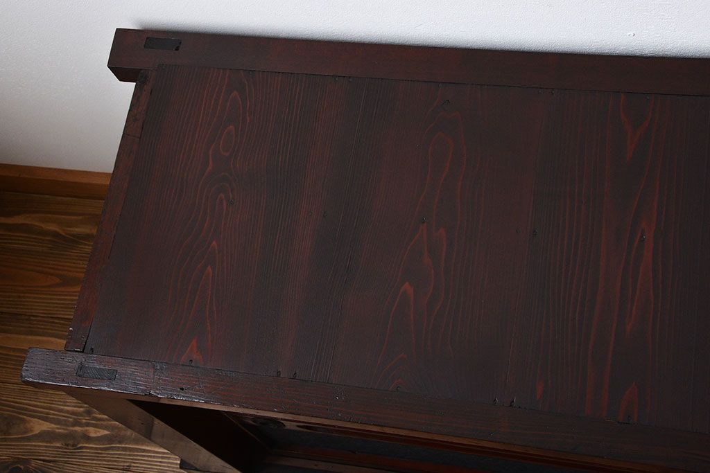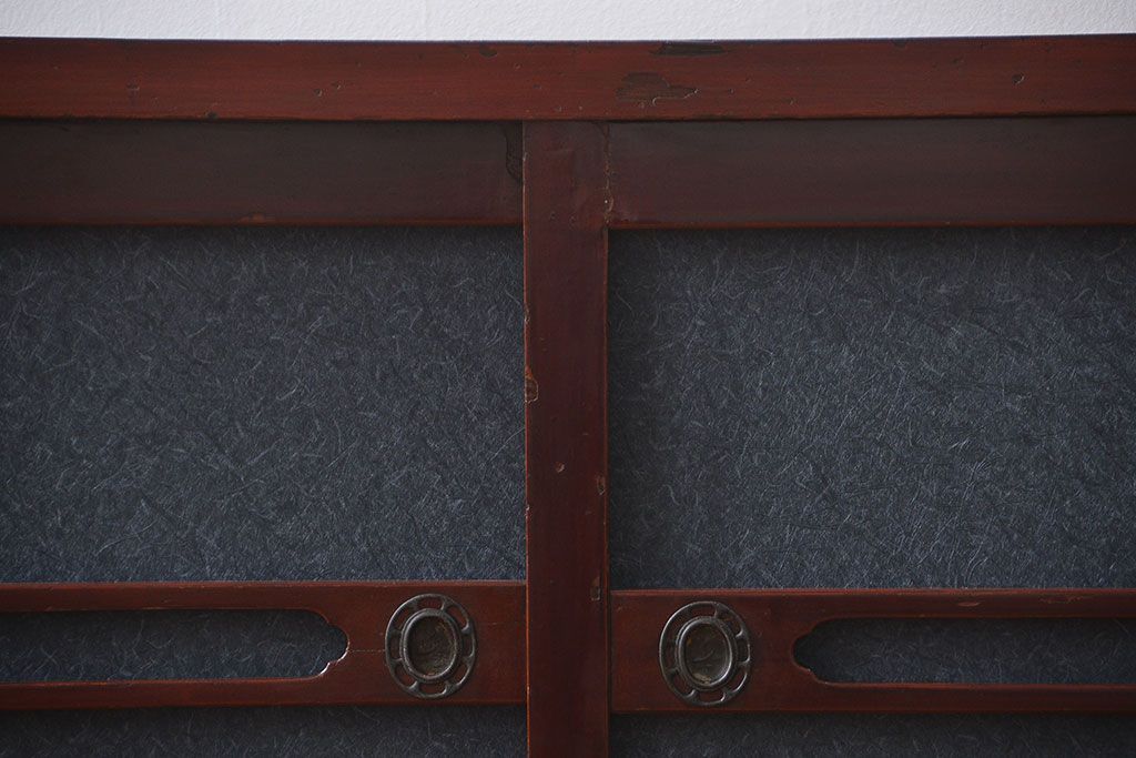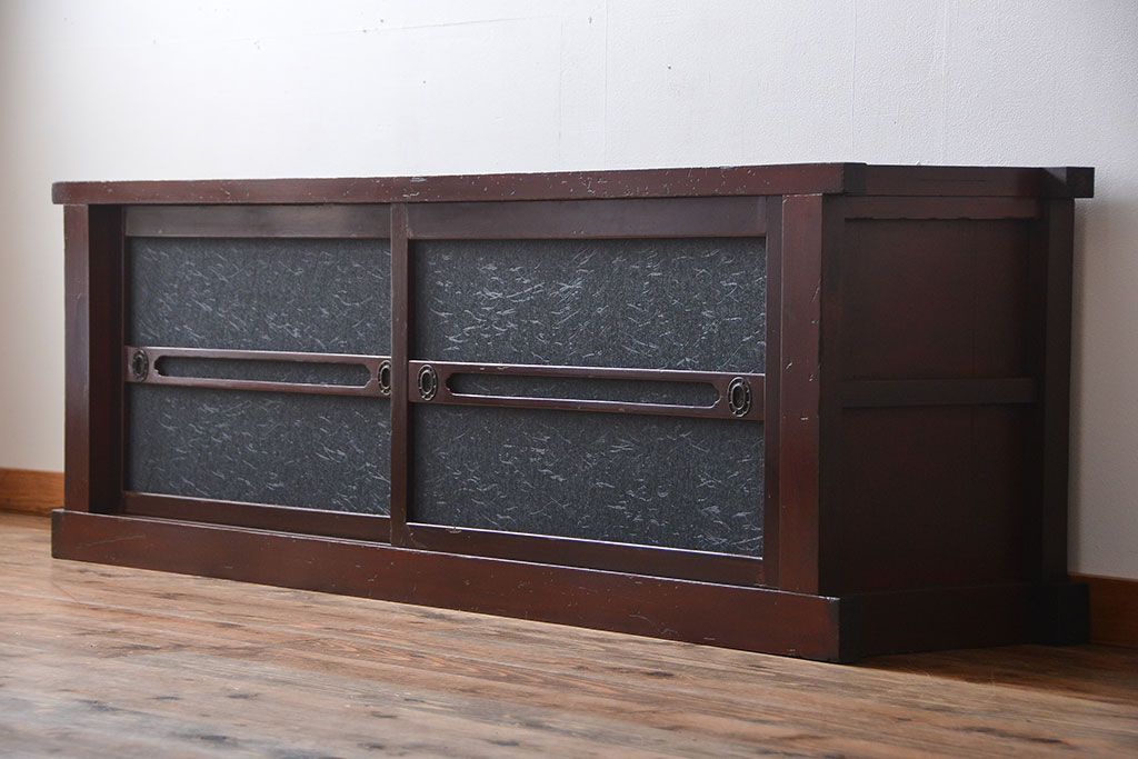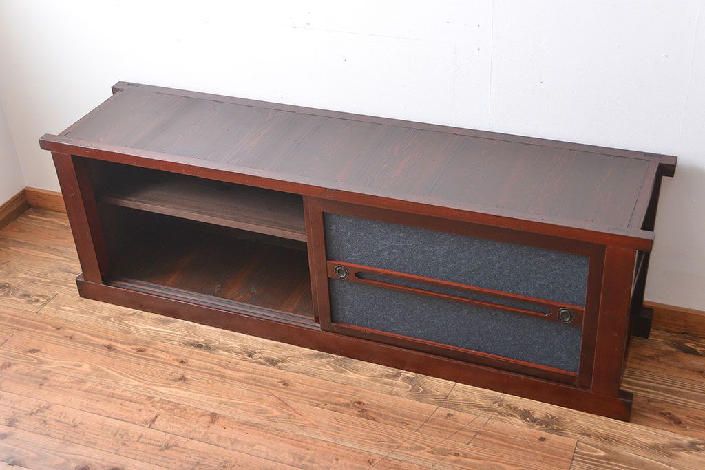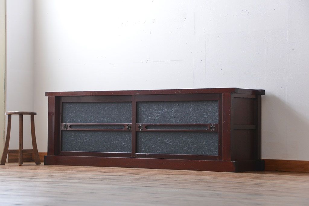 アンティーク家具 和モダンスタイル! 六尺 鏡板和紙貼りのおしゃれな水屋箪笥ローボード(テレビ台、キャビネット、収納棚)