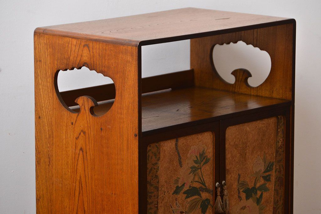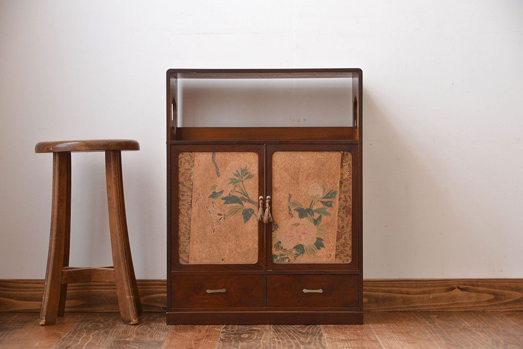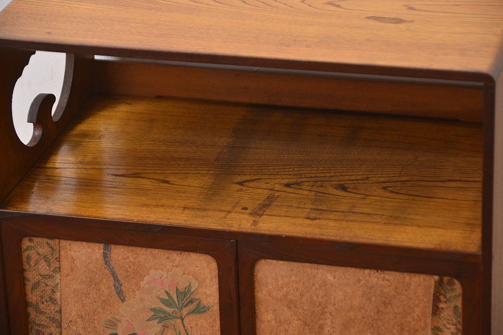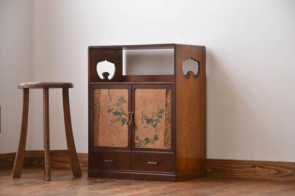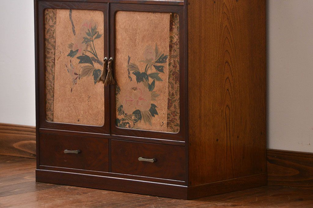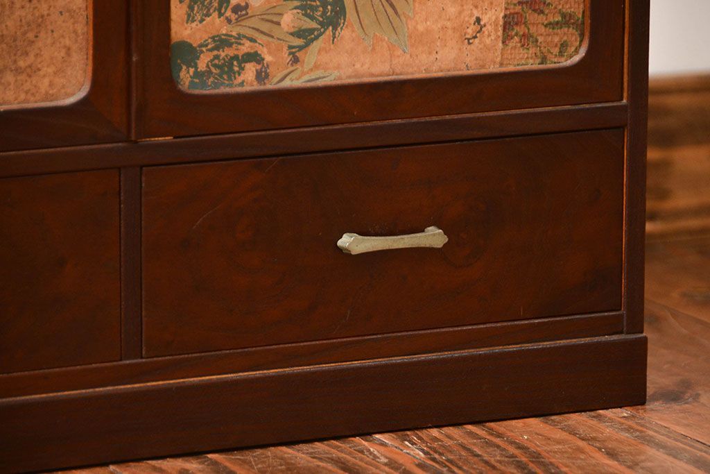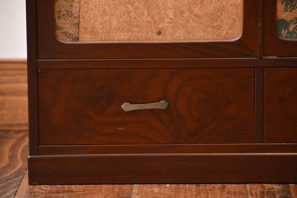 アンティーク家具 アンティーク 引き出し・飾り棚付きの和風な前面桑材の収納棚