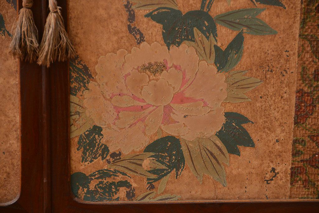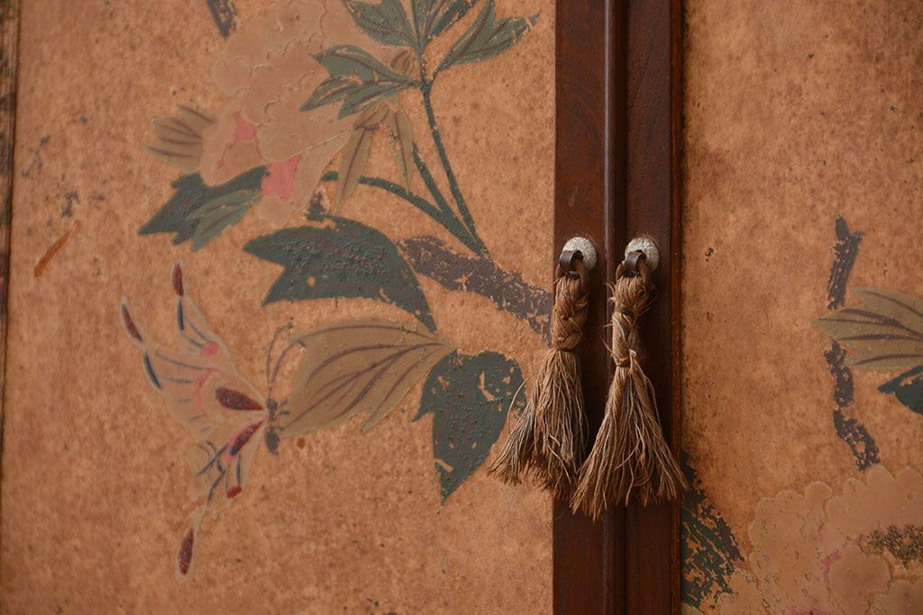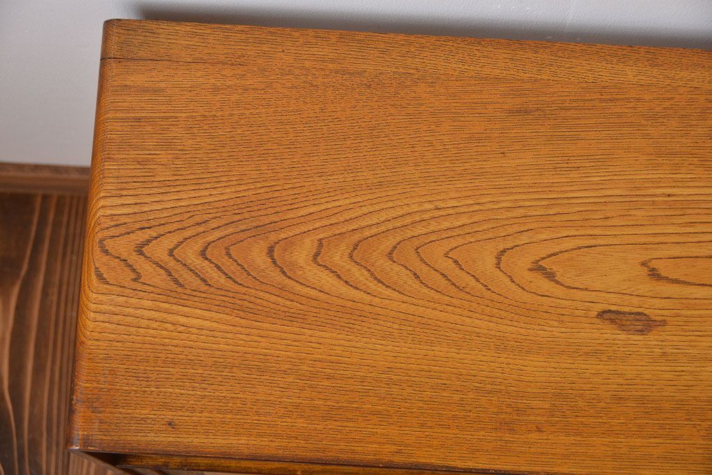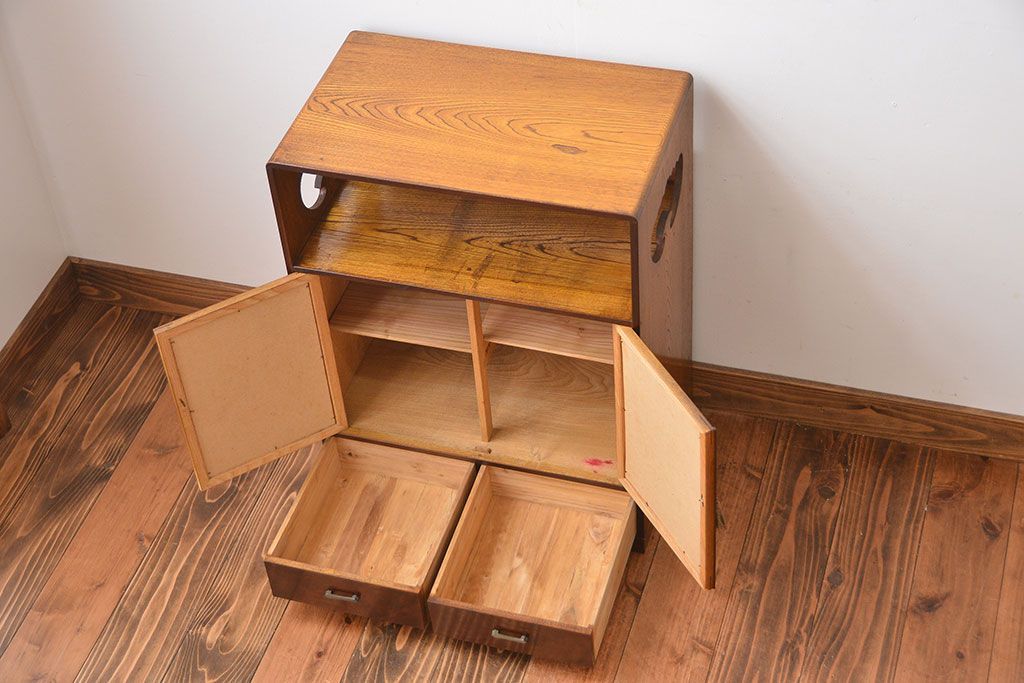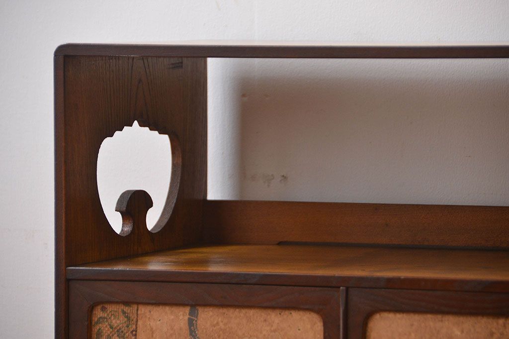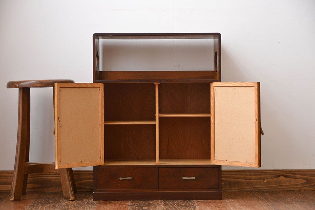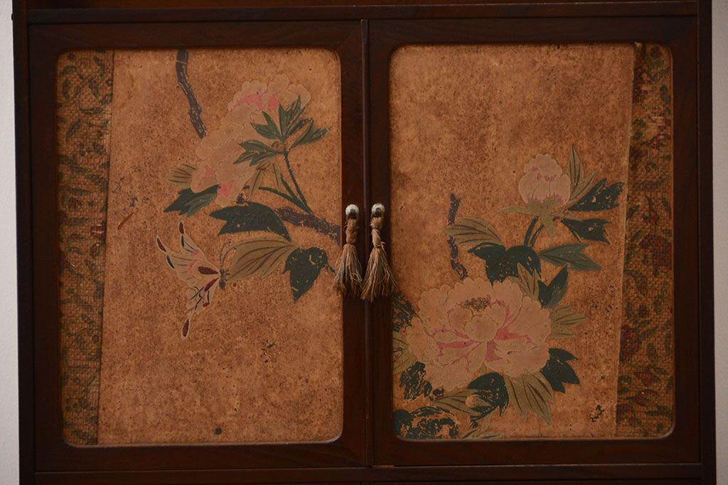 アンティーク家具 アンティーク 引き出し・飾り棚付きの和風な前面桑材の収納棚