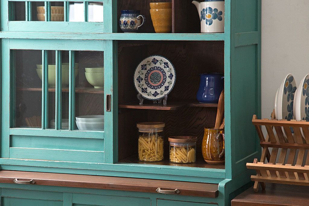 人気のアンティークペイントを施した食器棚です。