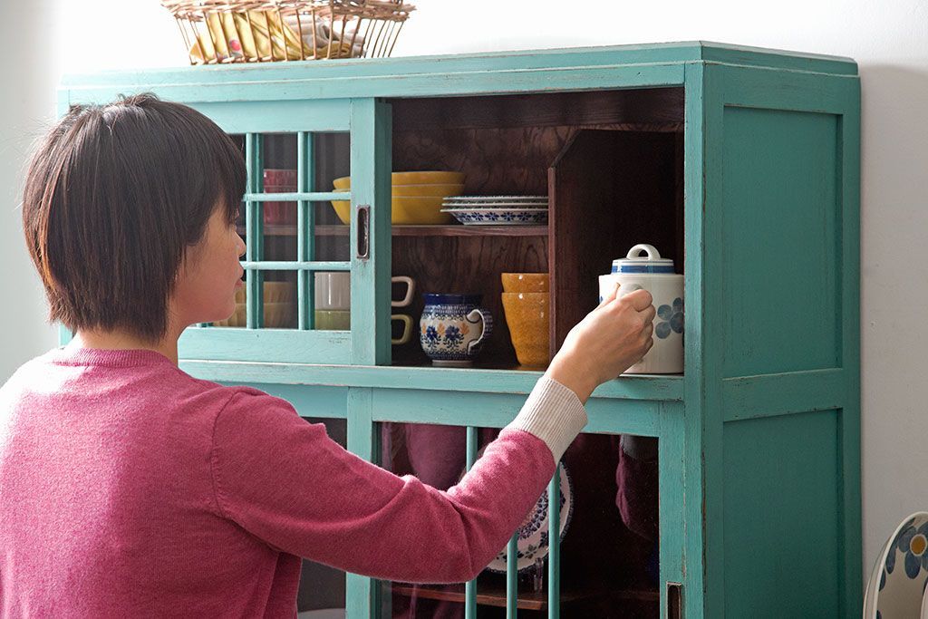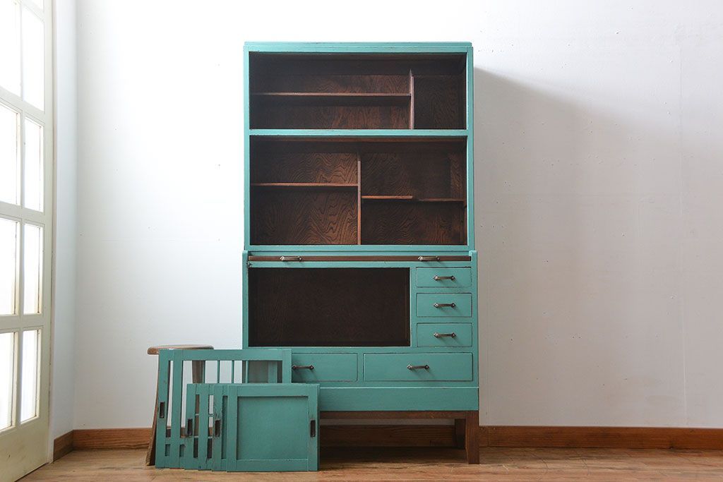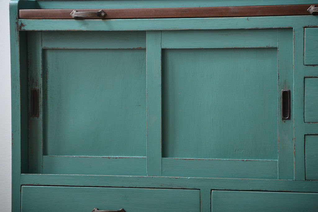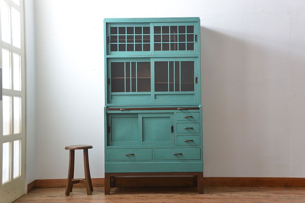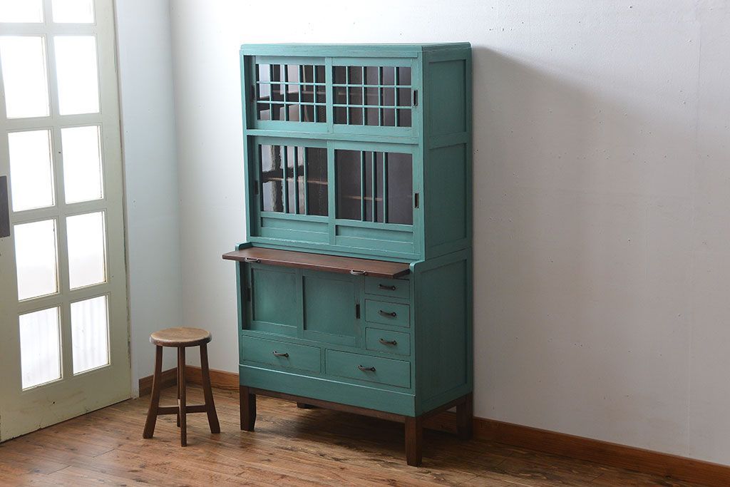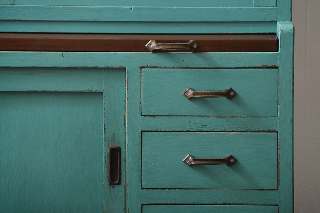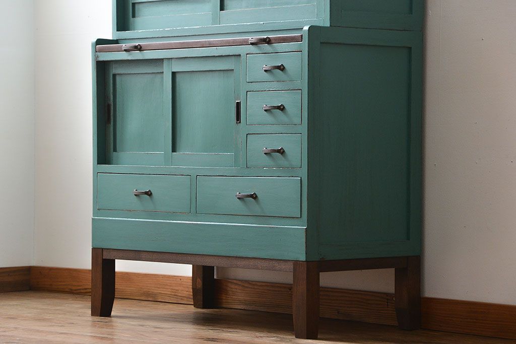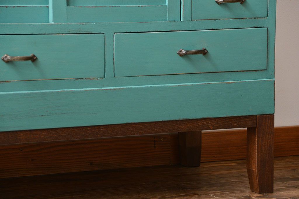 アンティーク家具 アンティークペイント 脚付きのおしゃれなキッチンキャビネット