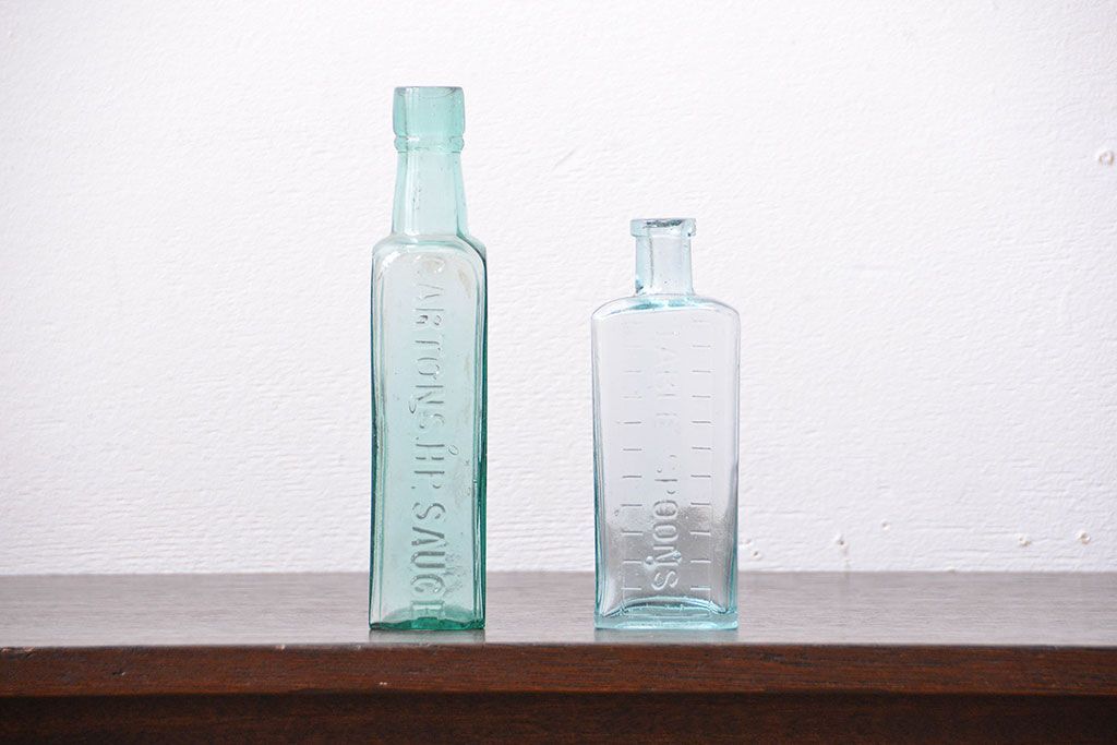 大さじ1杯ごとのメモリが付いたアンティークボトルのセットです。