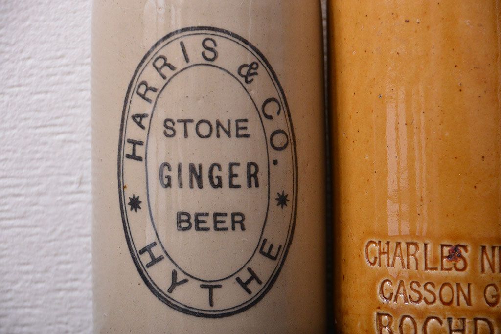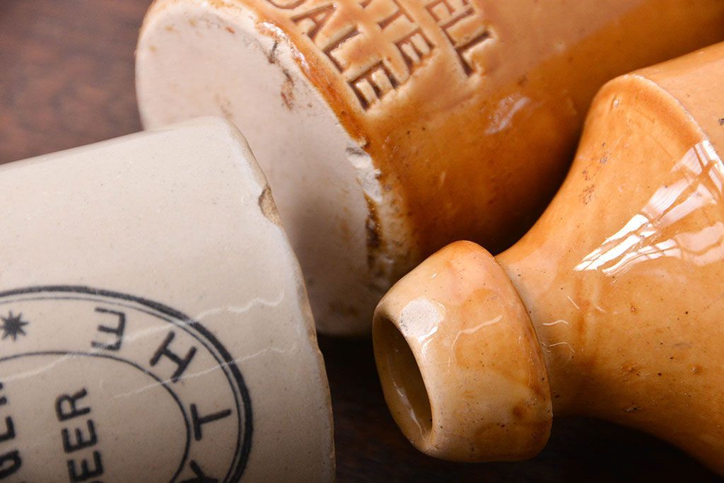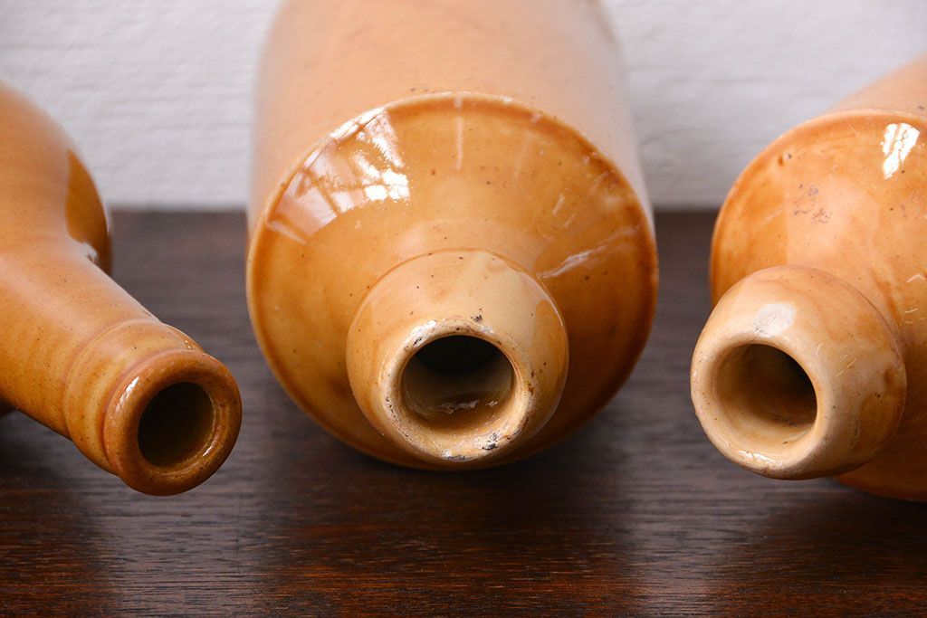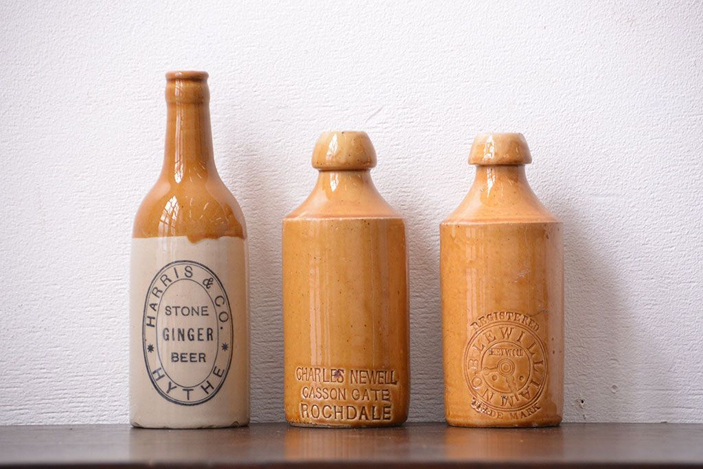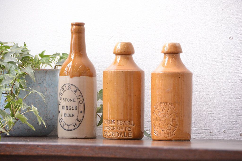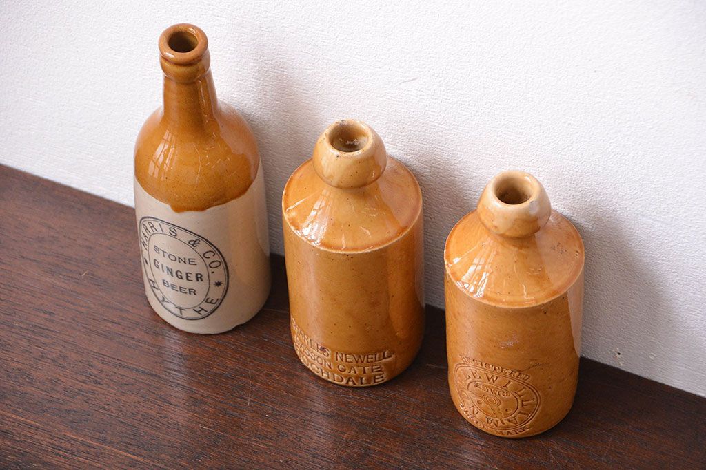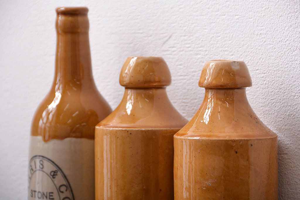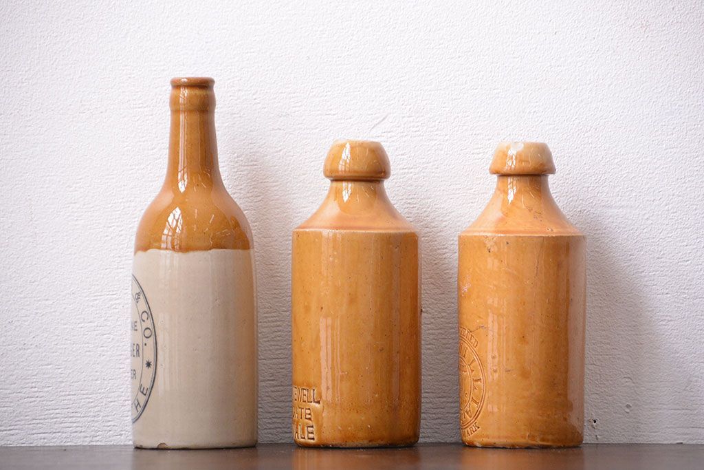 アンティーク雑貨 イギリスアンティーク オシャレな陶器ビールボトル3つセット