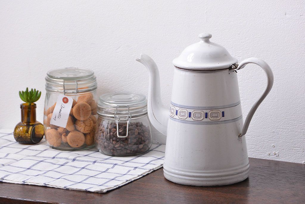アンティーク雑貨 イギリスアンティーク おしゃれでかわいいホーローのポット