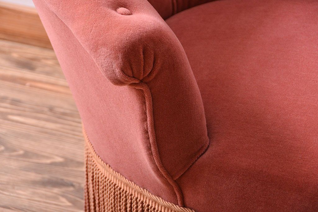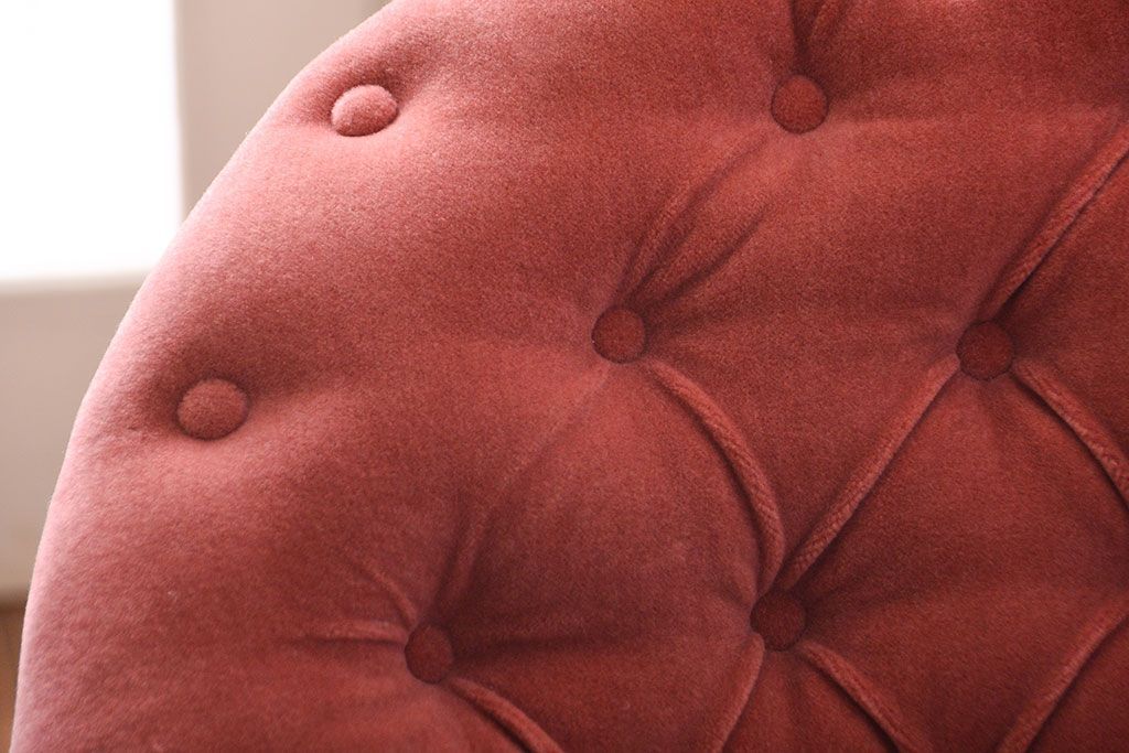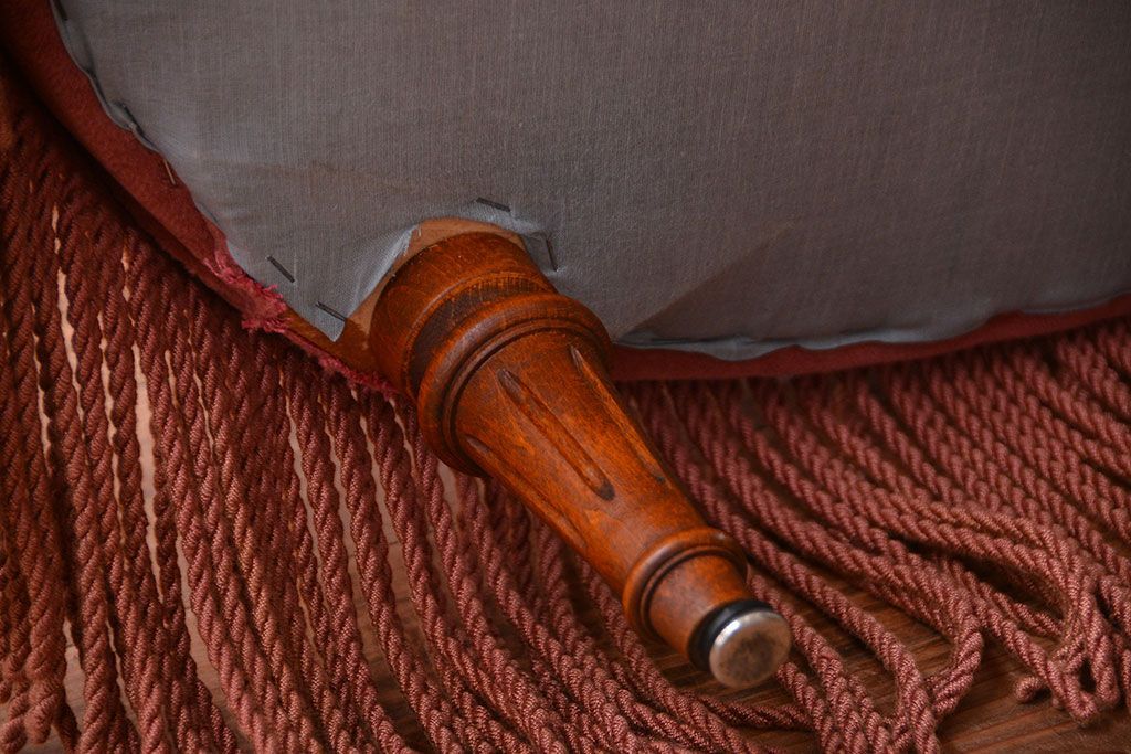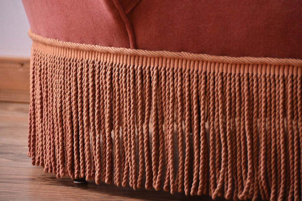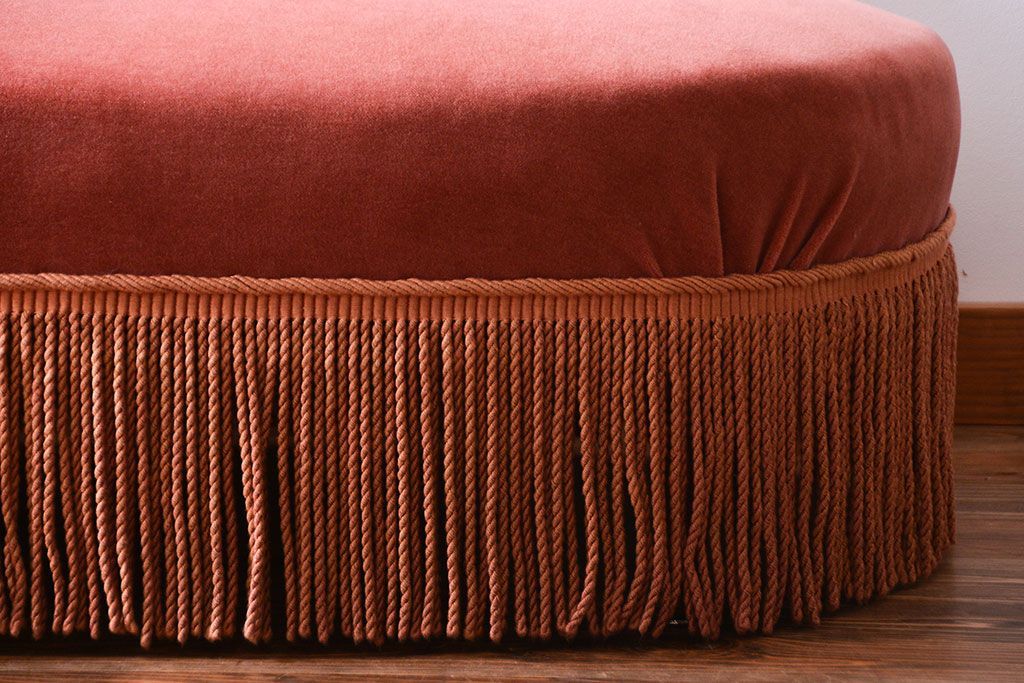 背もたれにはボタン留め、足元にはフリンジが施された、