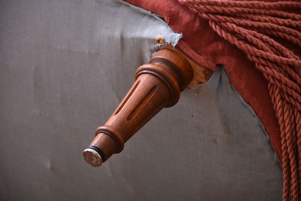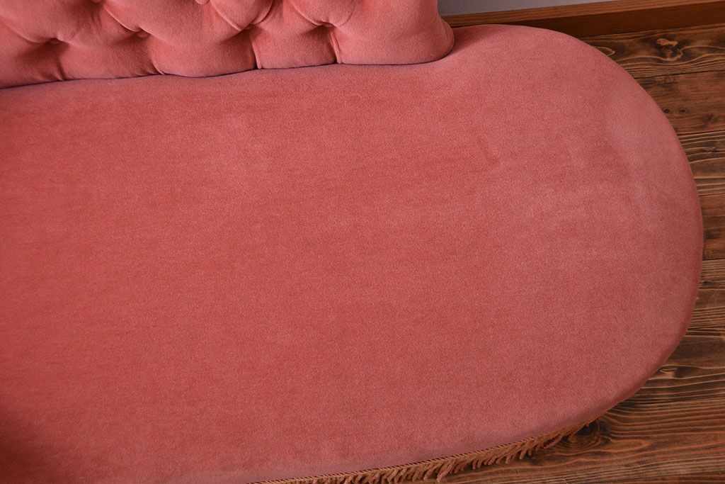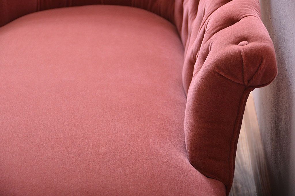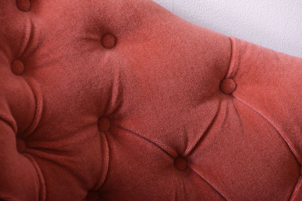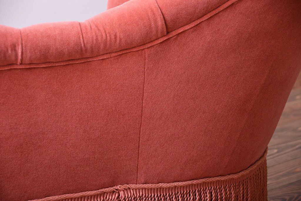 背もたれにはボタン留め、足元にはフリンジが施された、