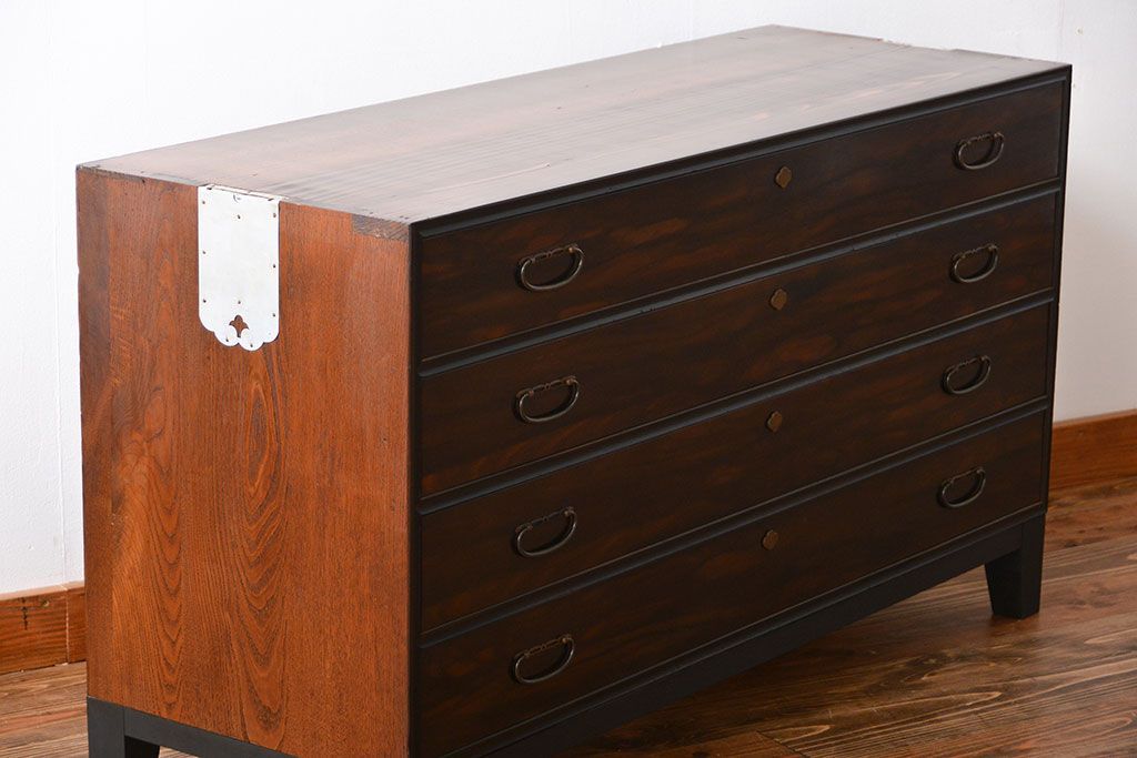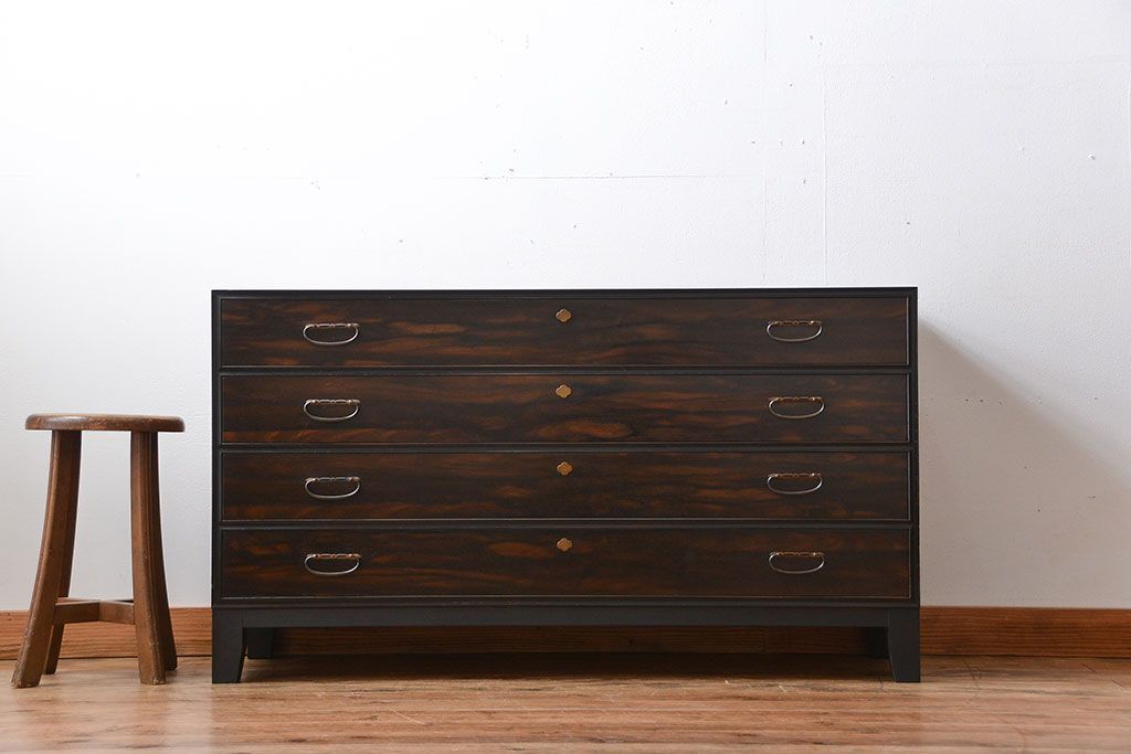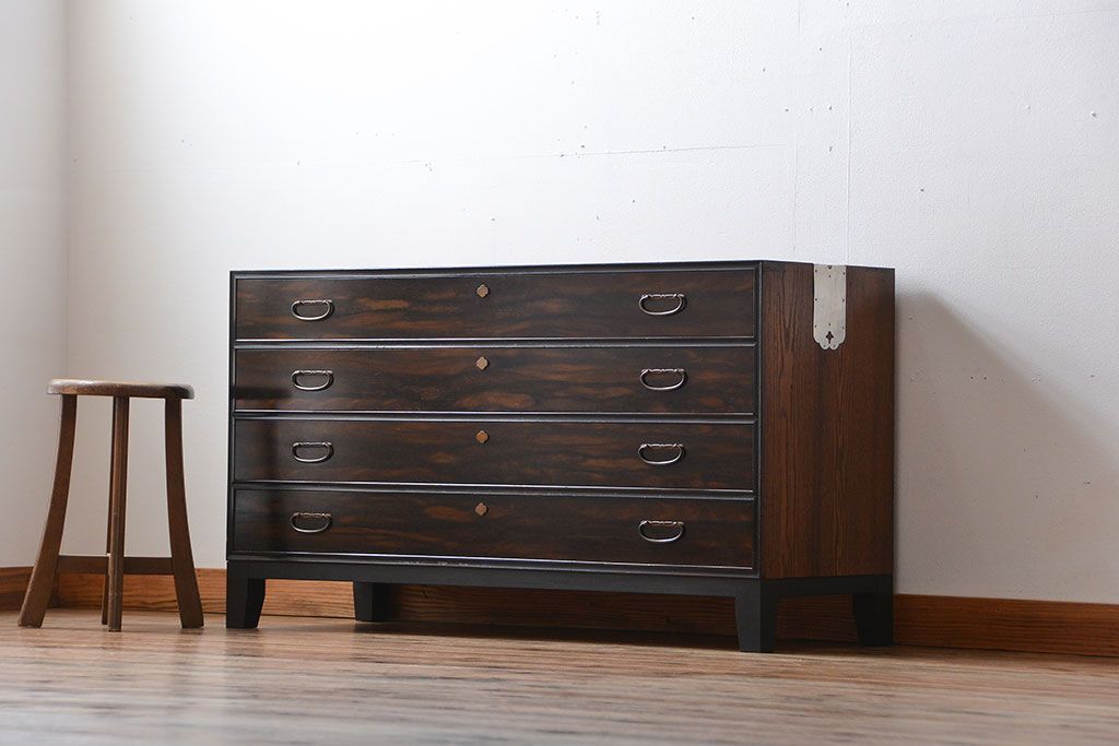 アンティーク 前面黒檀材!脚付きローチェストです。
