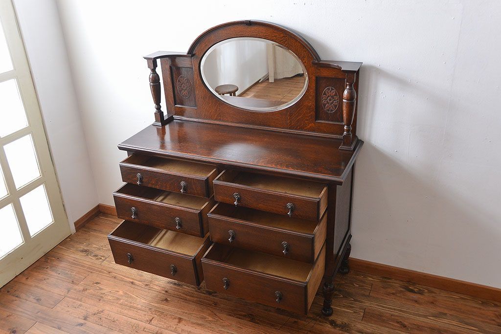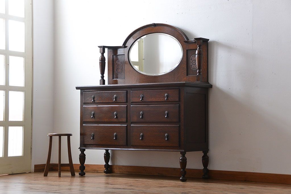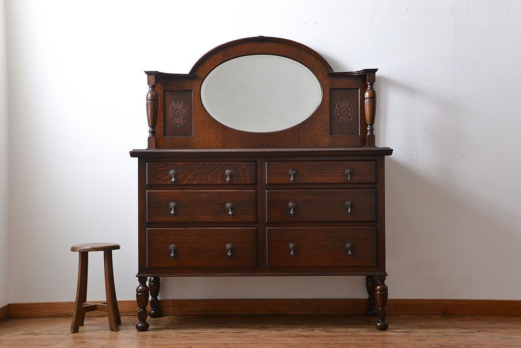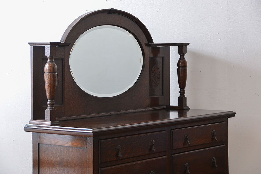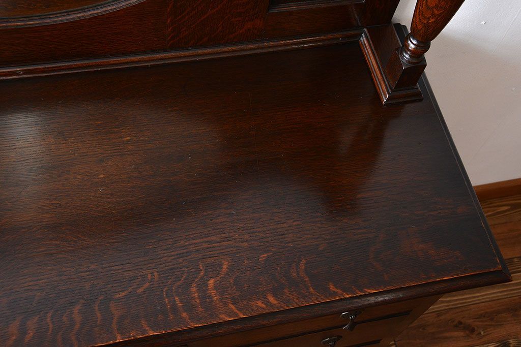 アンティーク家具 イギリスアンティーク 高級感あふれるオーク材のミラー付きサイドボード