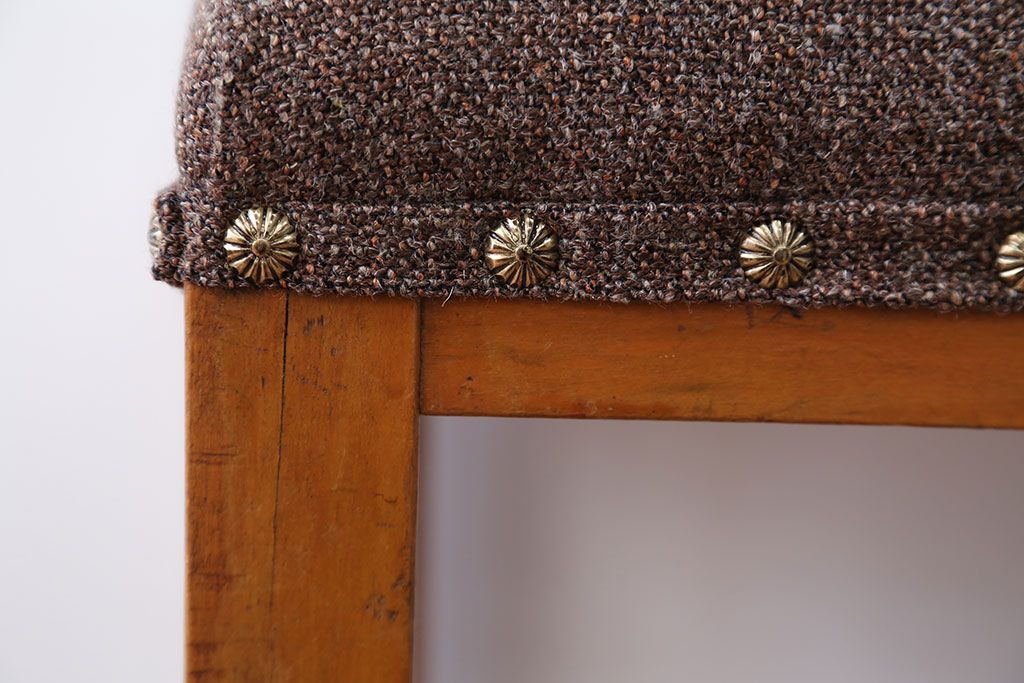 座面生地とクッション(座面内スポンジ)は当店にて張り替えておりますので、しっかりとしております。
