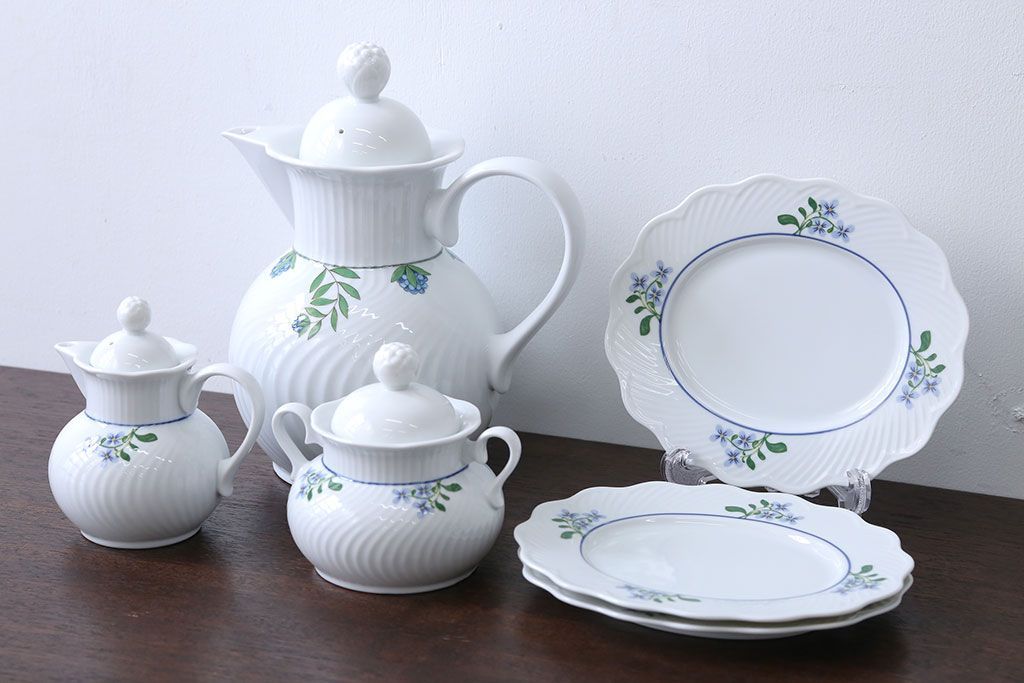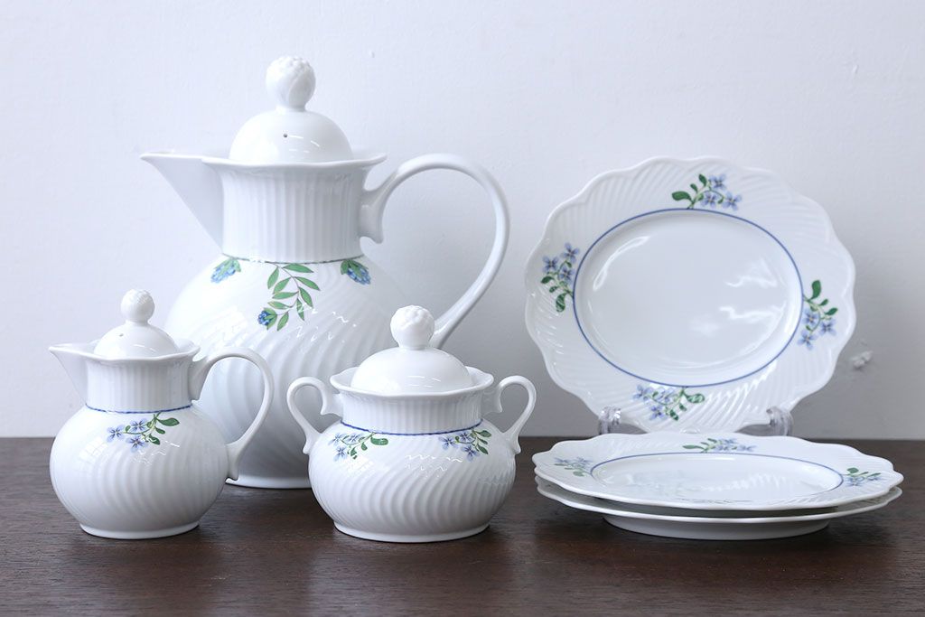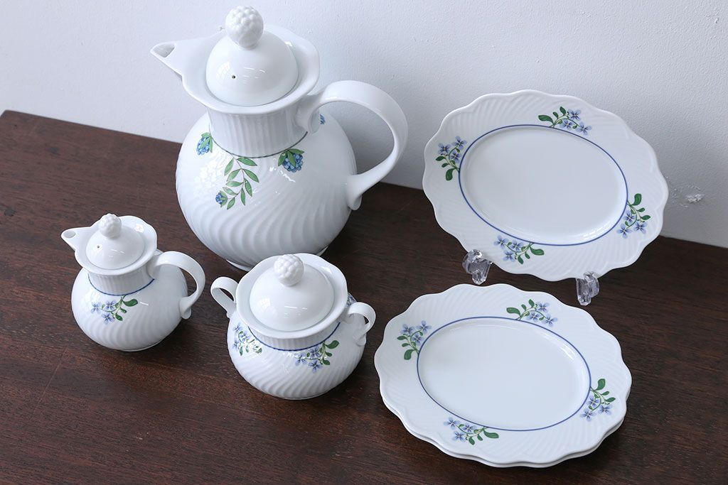 アンティーク雑貨 北欧 DANSK(ダンスク)ティーポット・シュガー・クリーマー・プレートセット